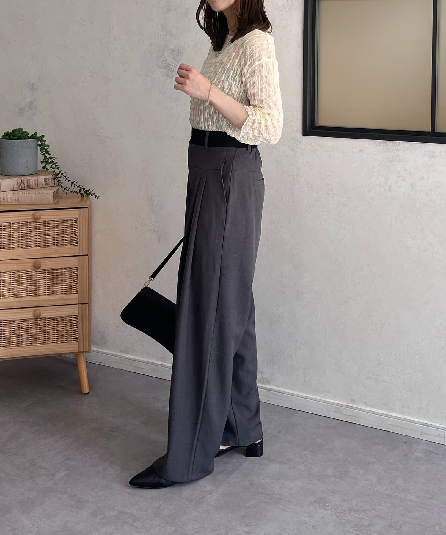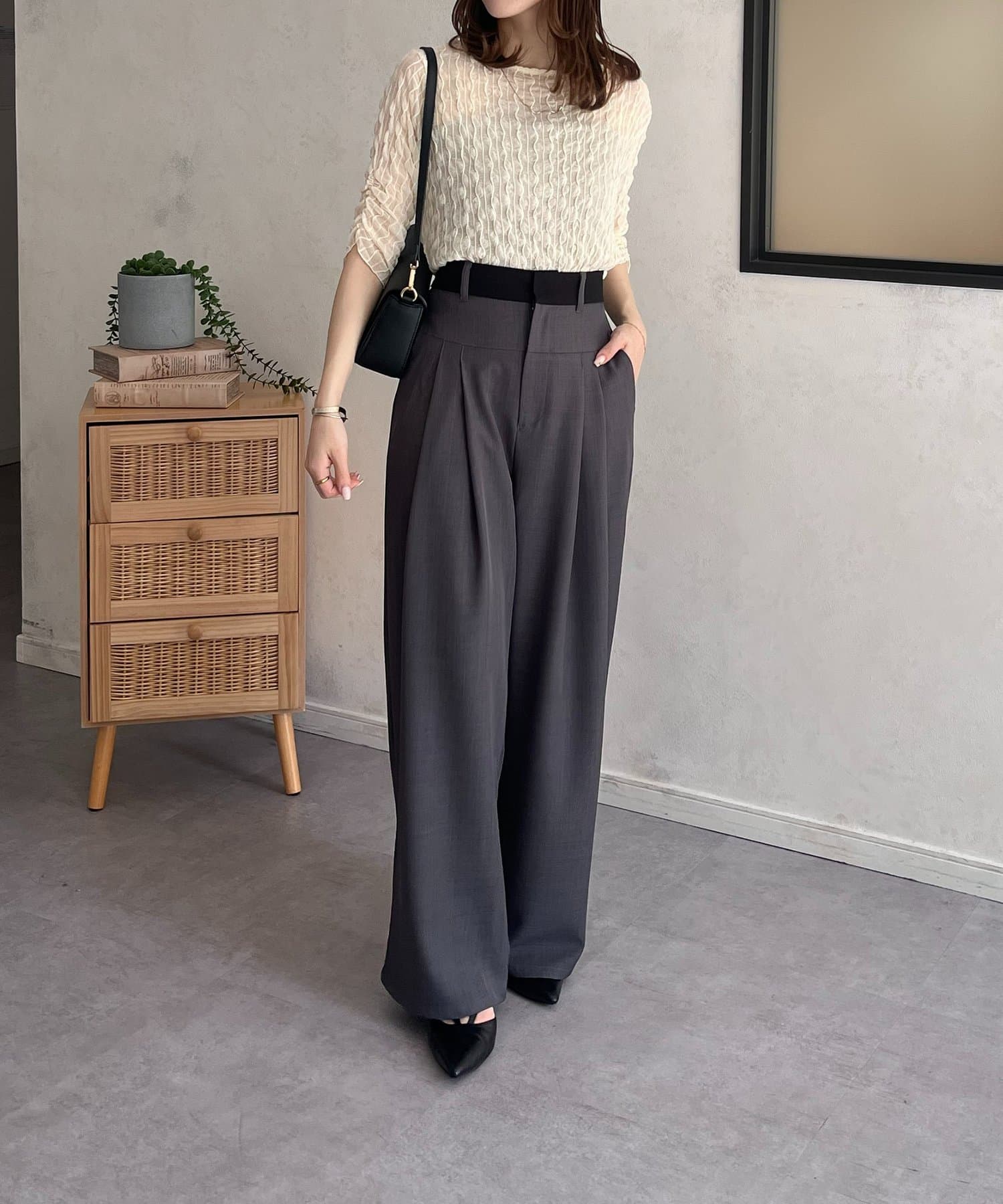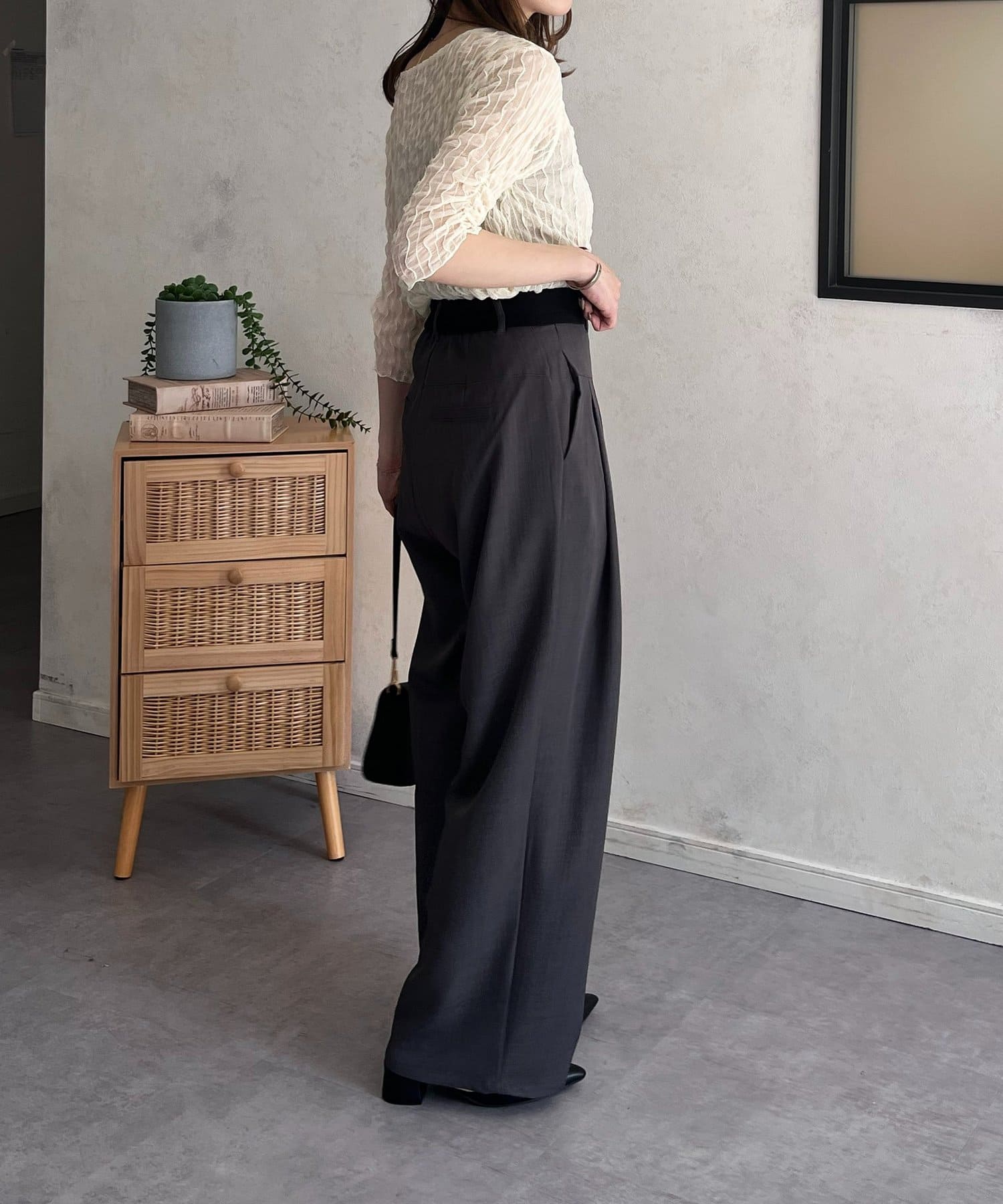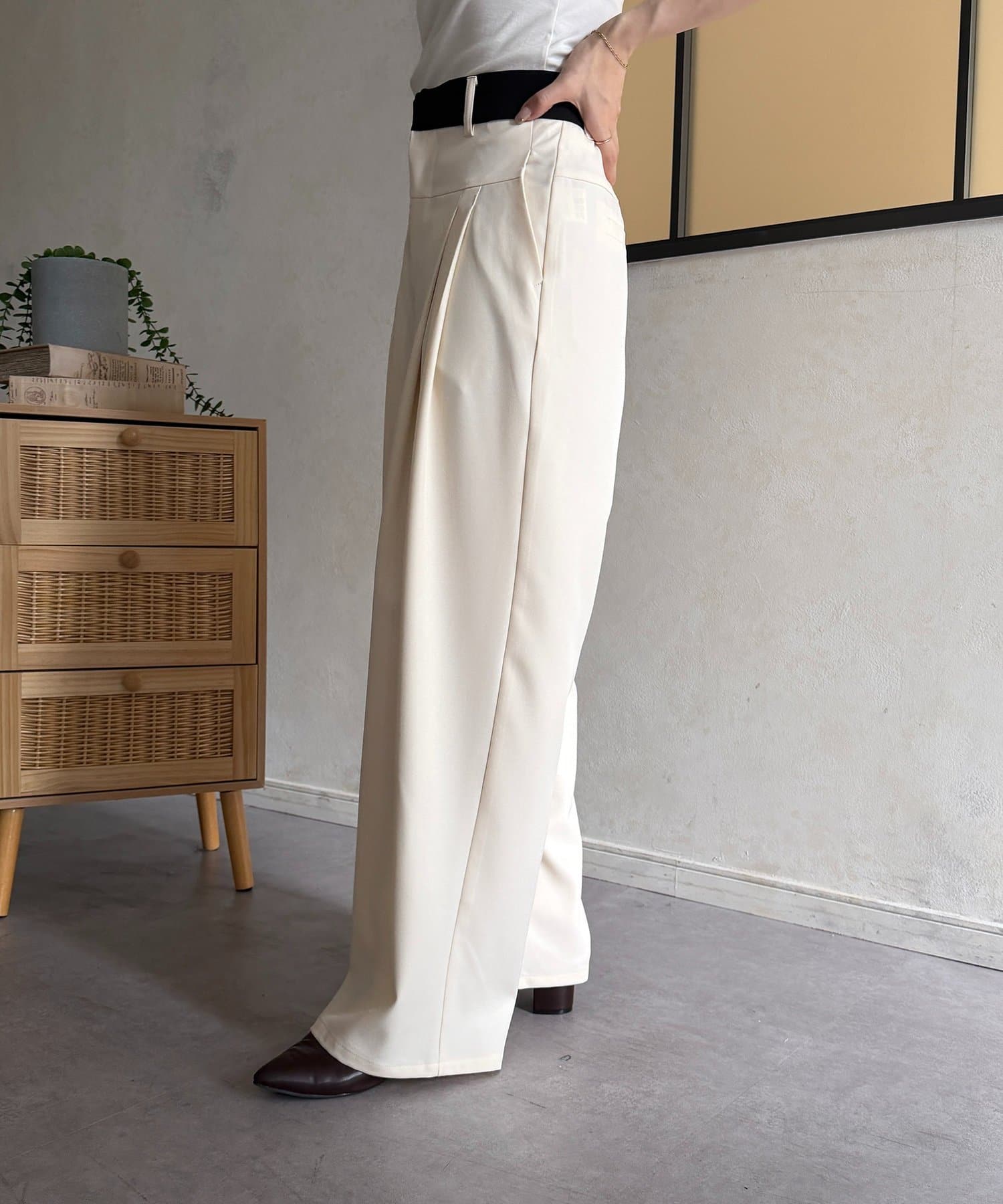 ・高めのウエスト位置とタックでスタイルアップが叶う