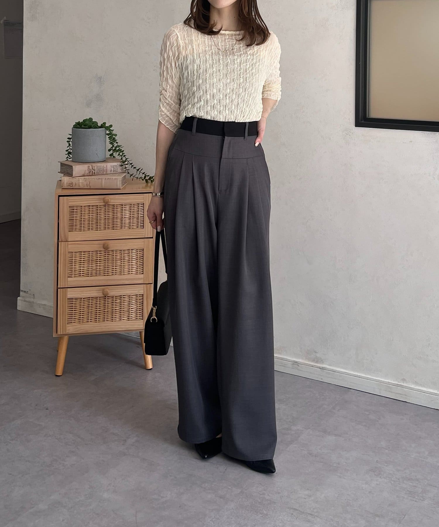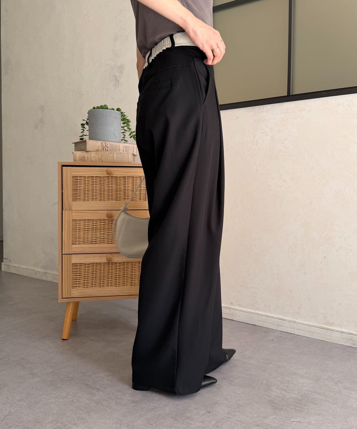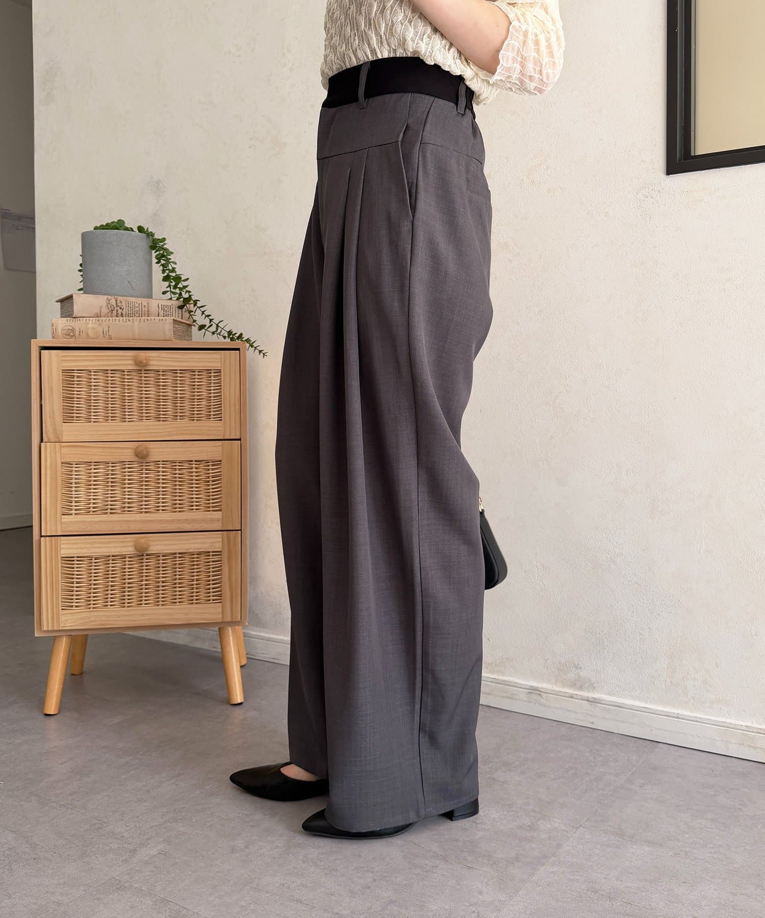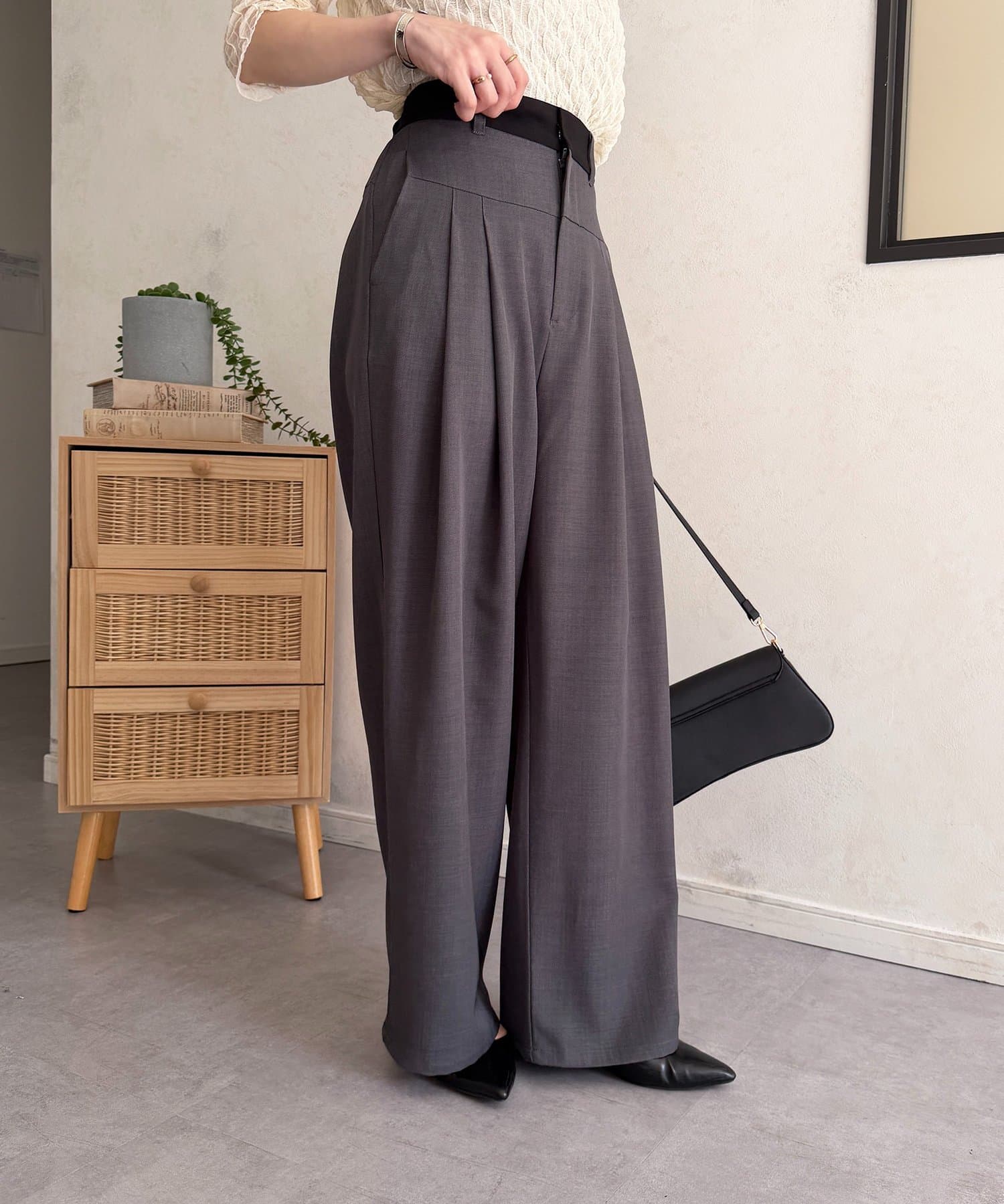 ・高めのウエスト位置とタックでスタイルアップが叶う