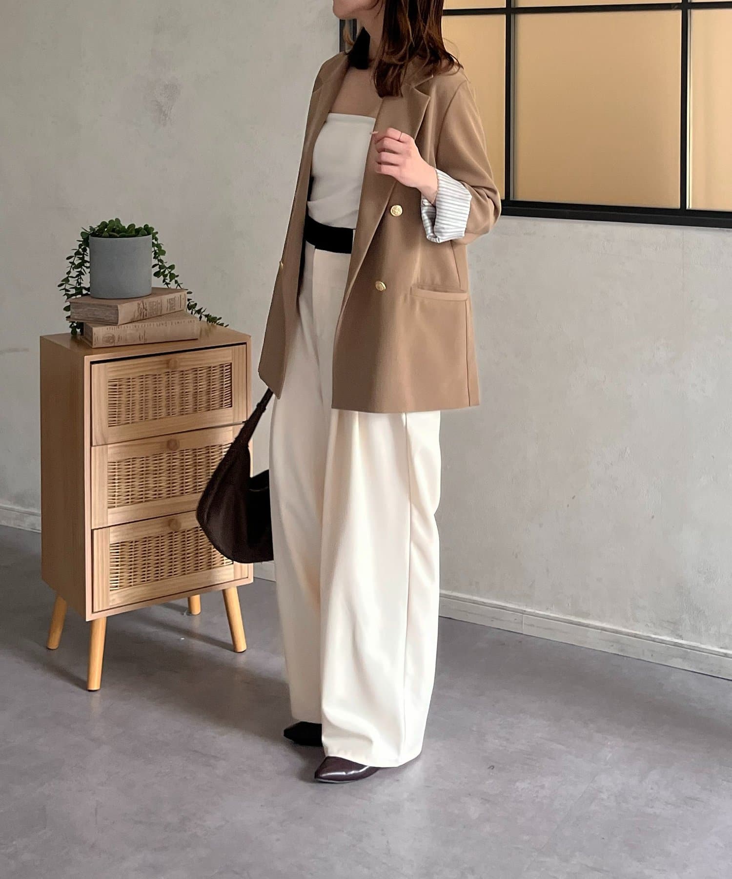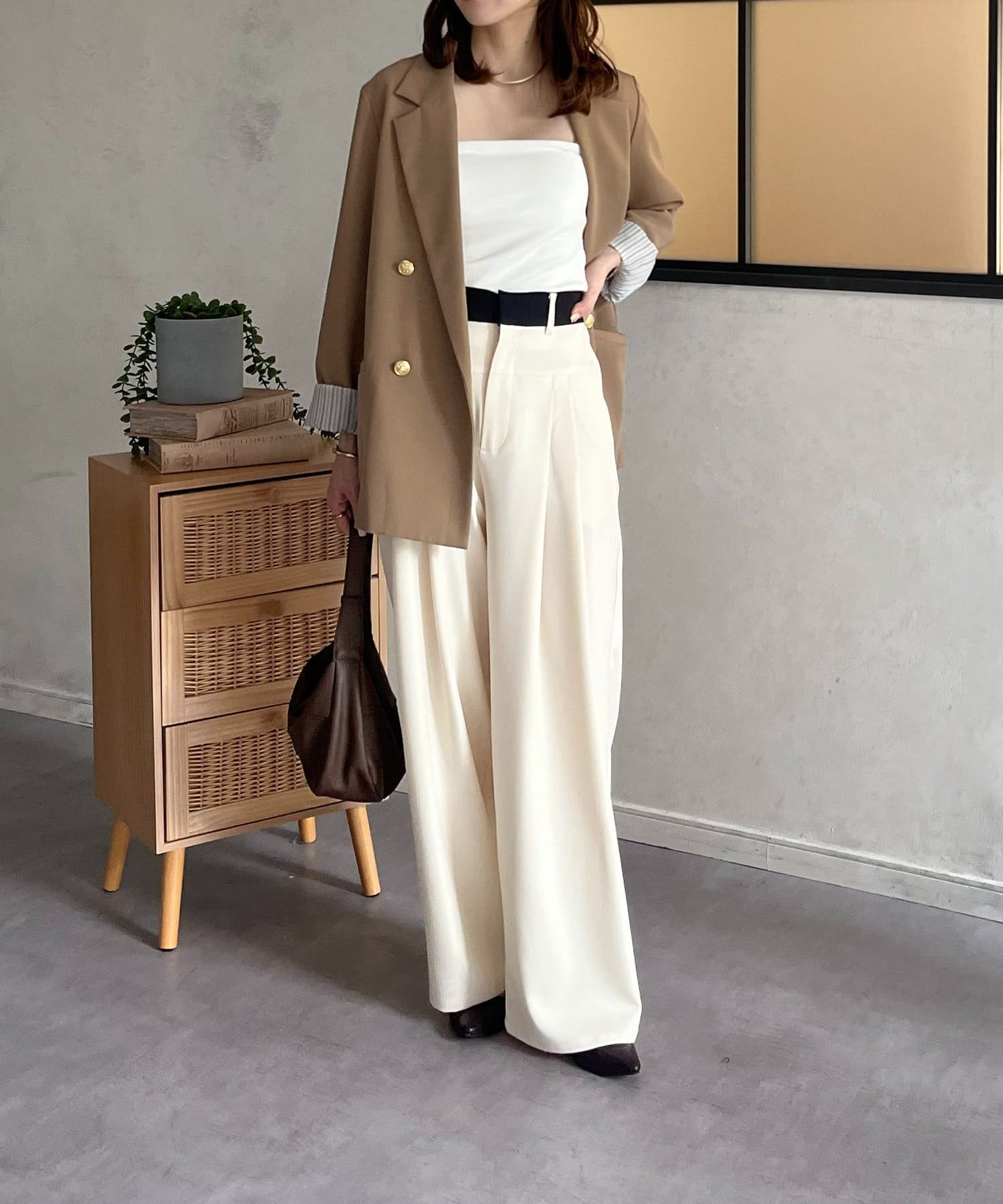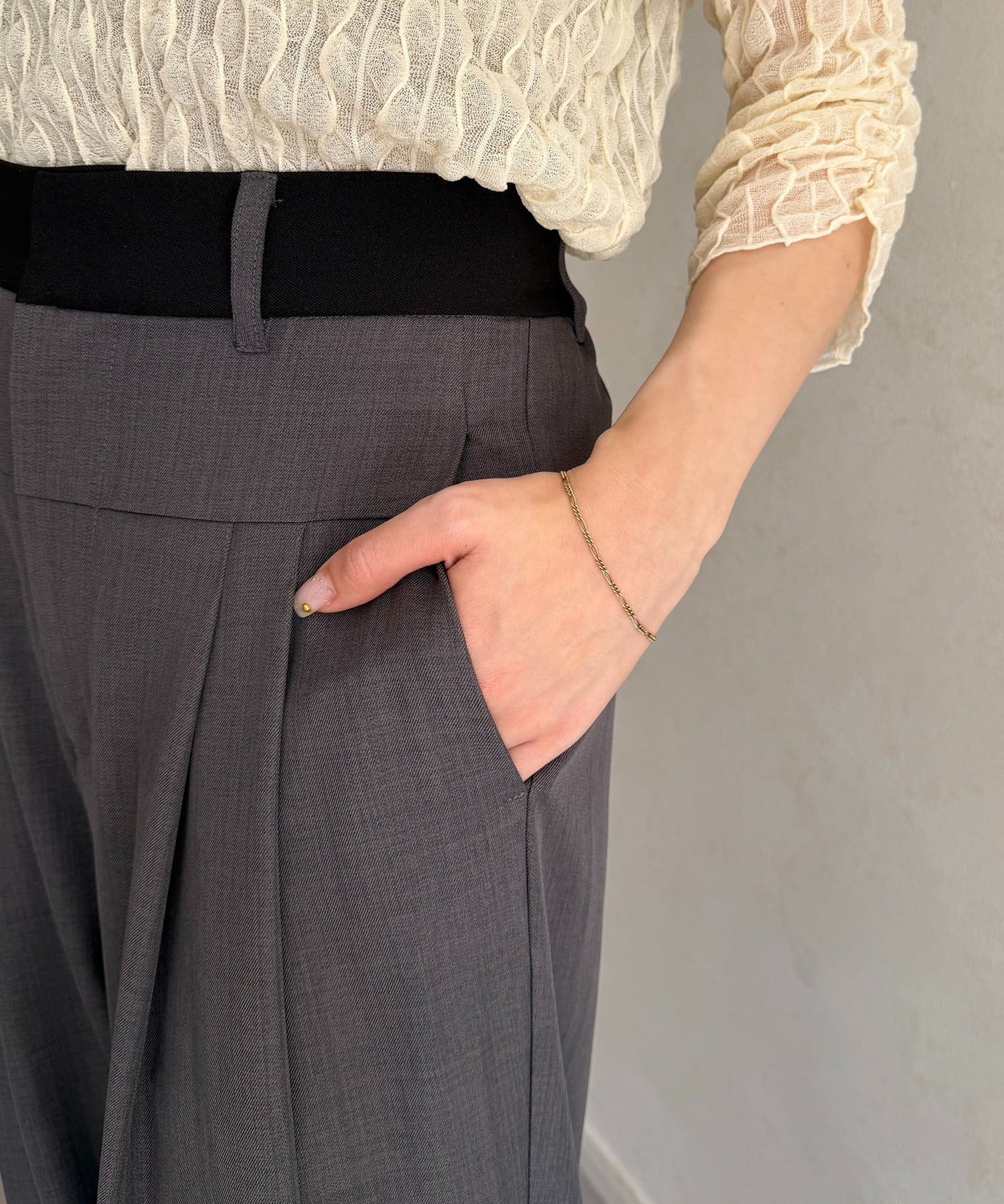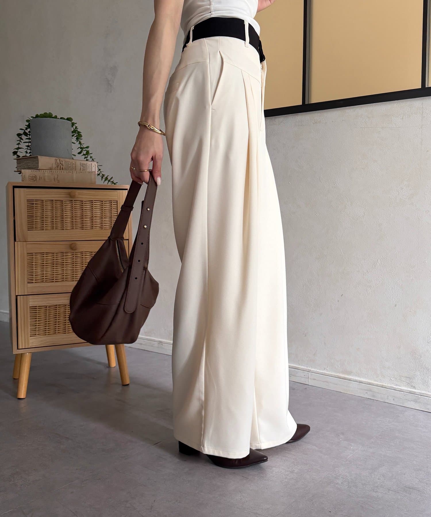 ・高めのウエスト位置とタックでスタイルアップが叶う