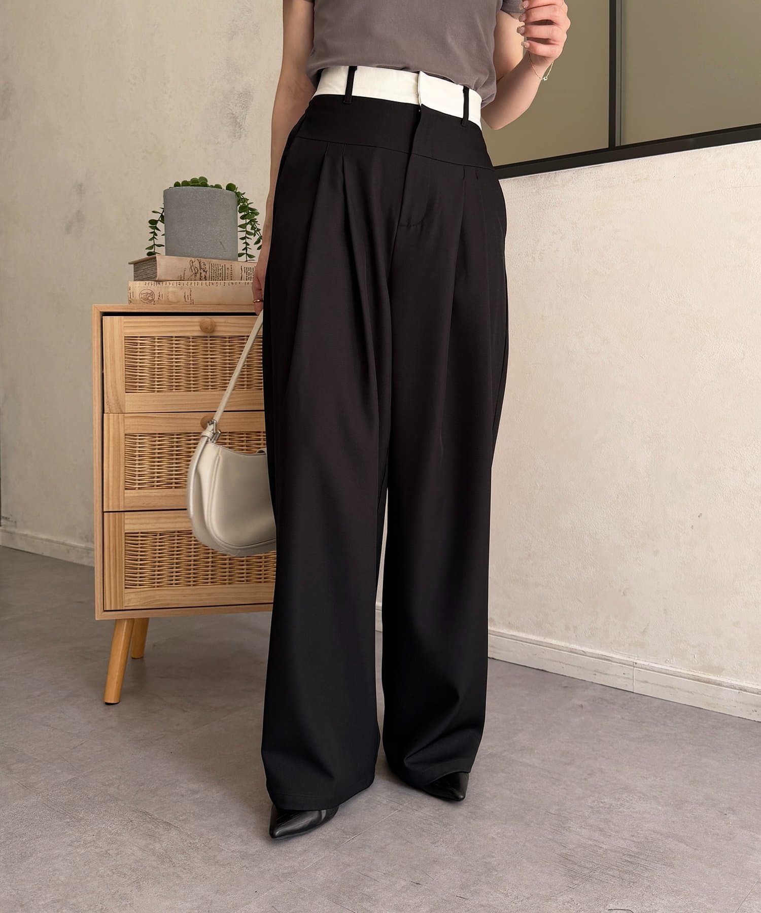#タックパンツ#配色#ウエストベルト#着回し#きれいめ#おでかけ
