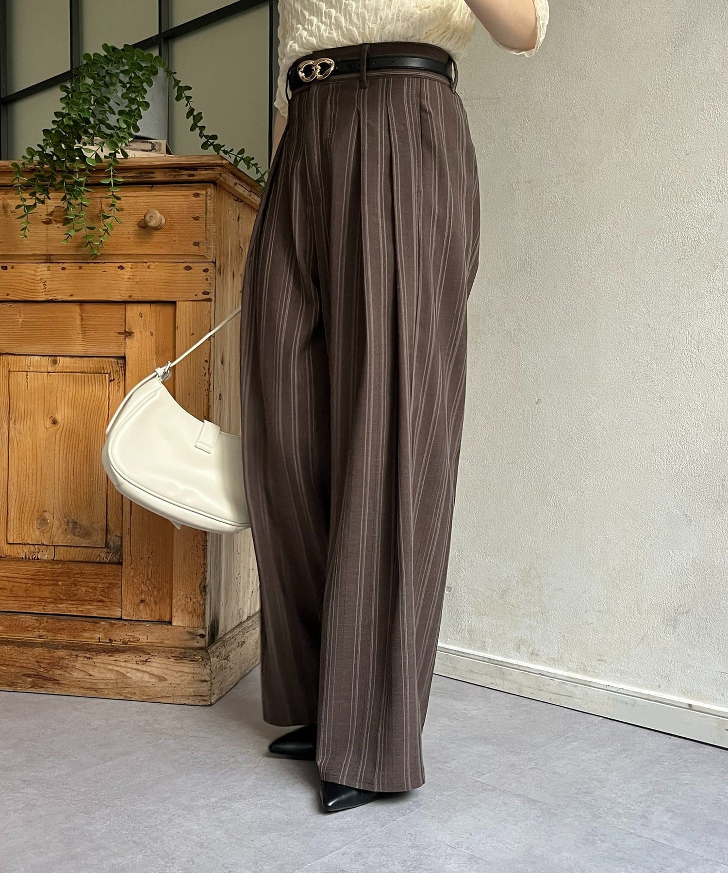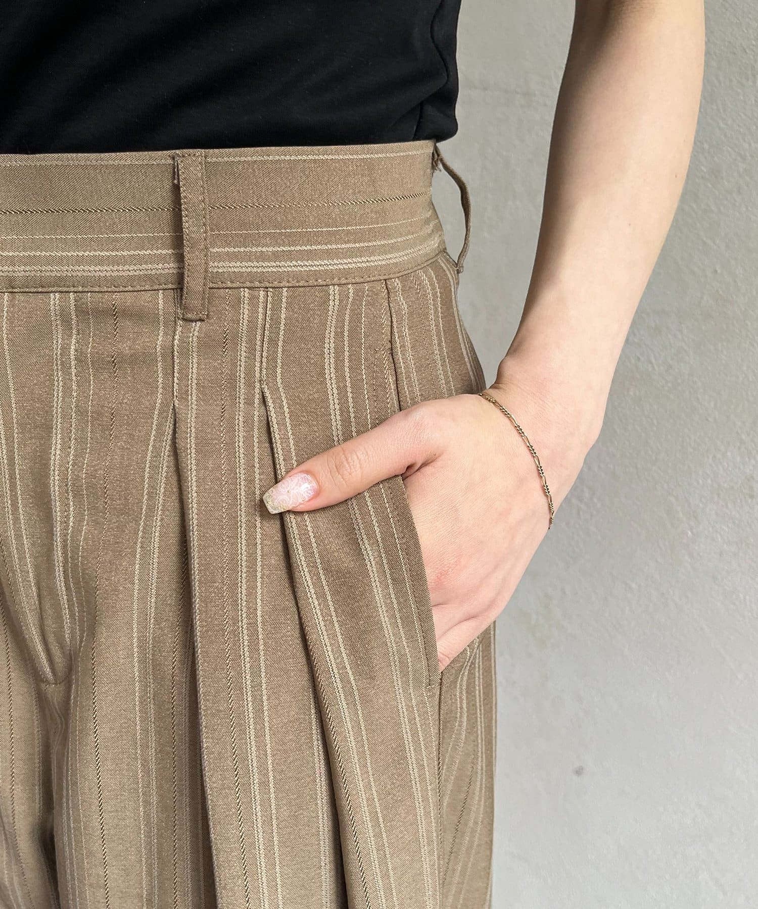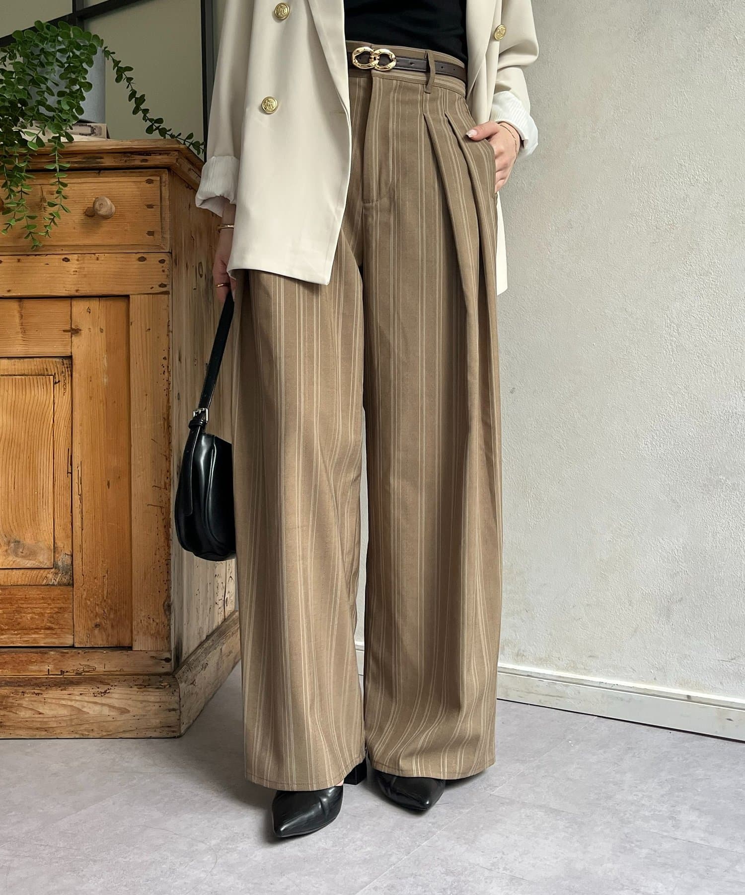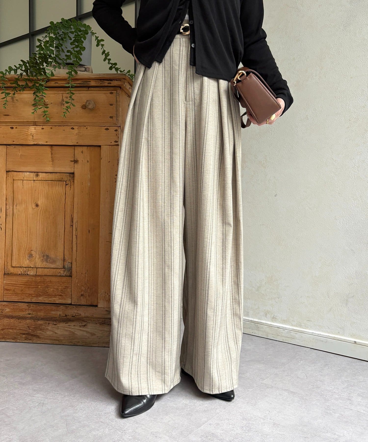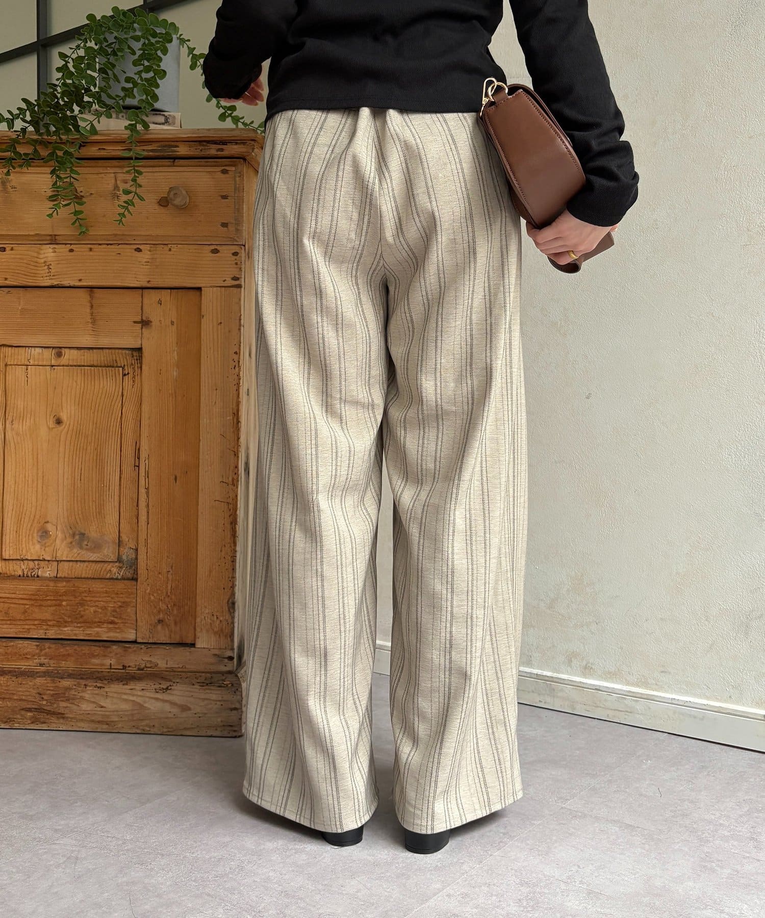ストライプ柄でスタイルアップ見えするタックパンツ