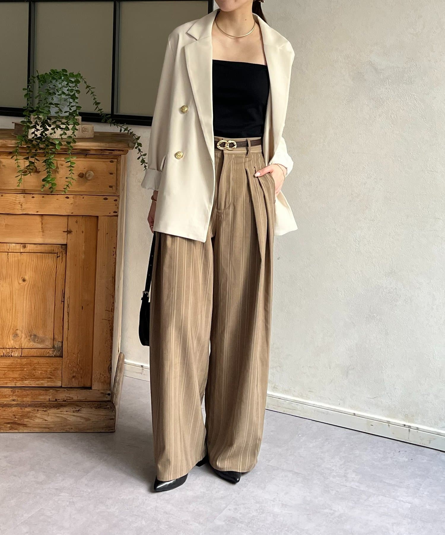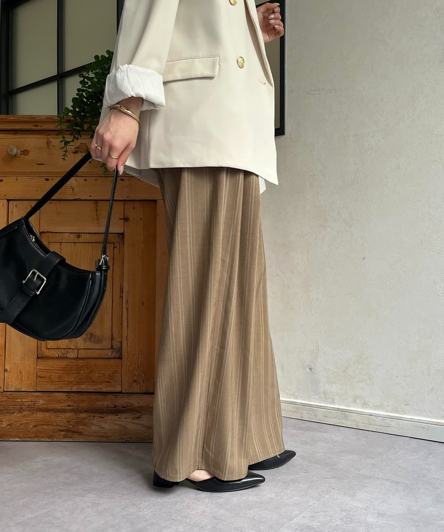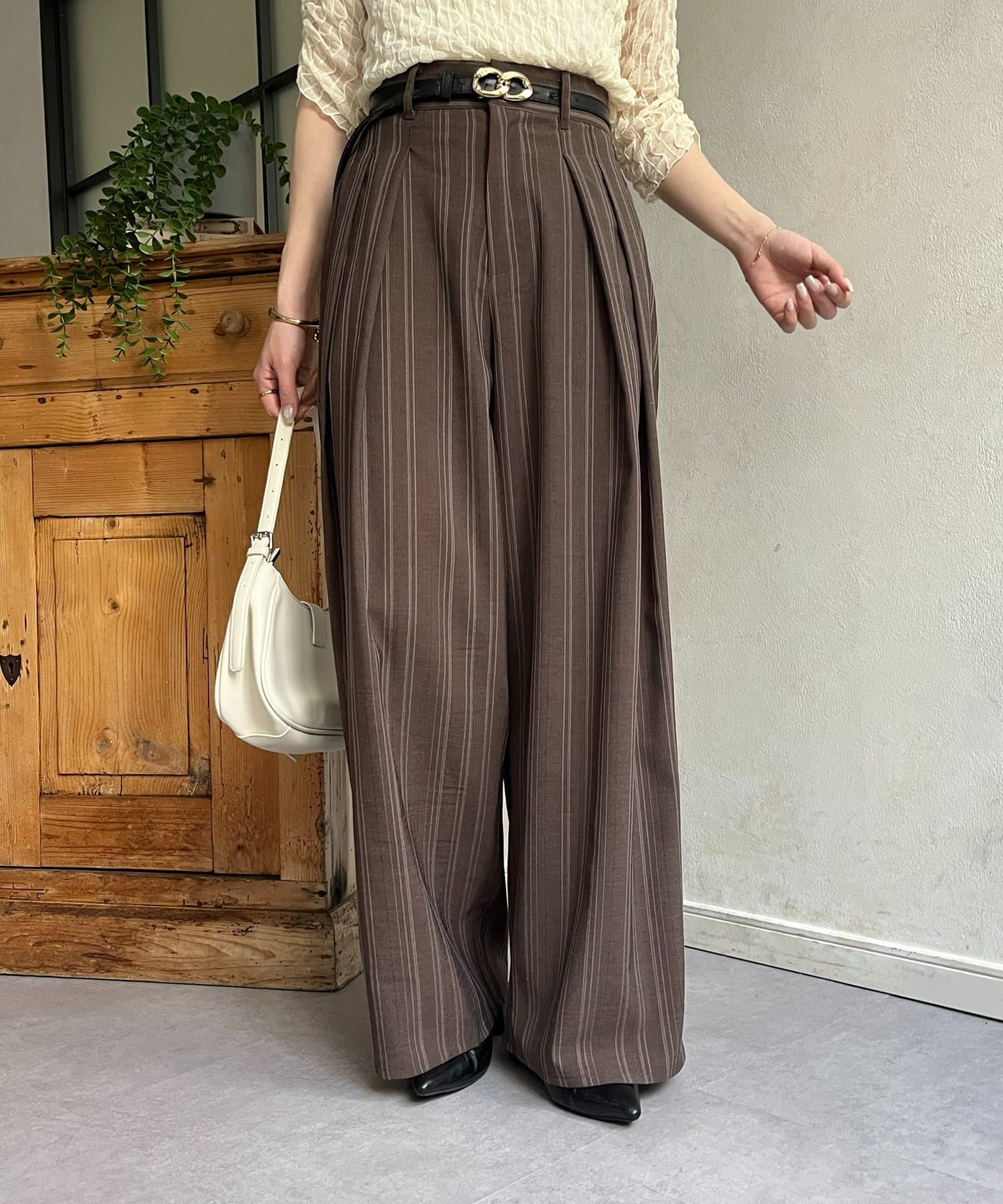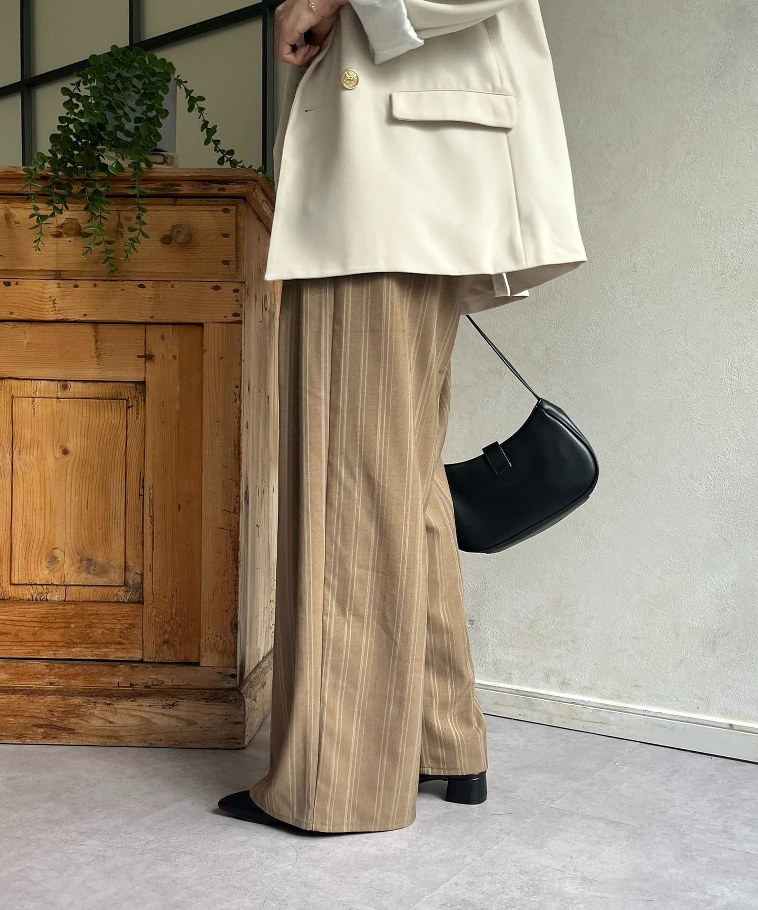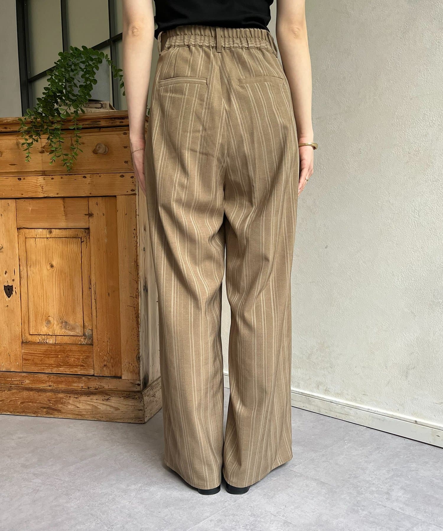 ストライプ柄でスタイルアップ見えするタックパンツ