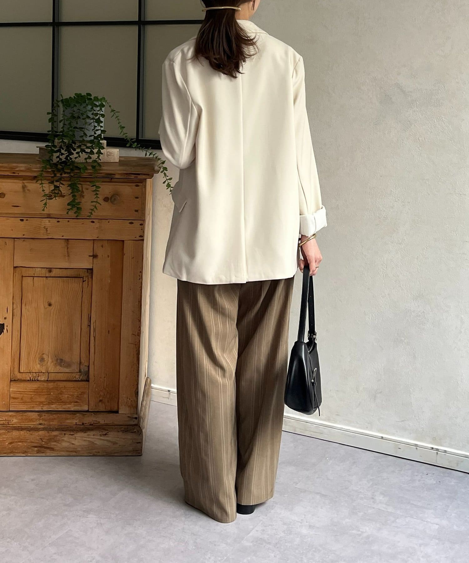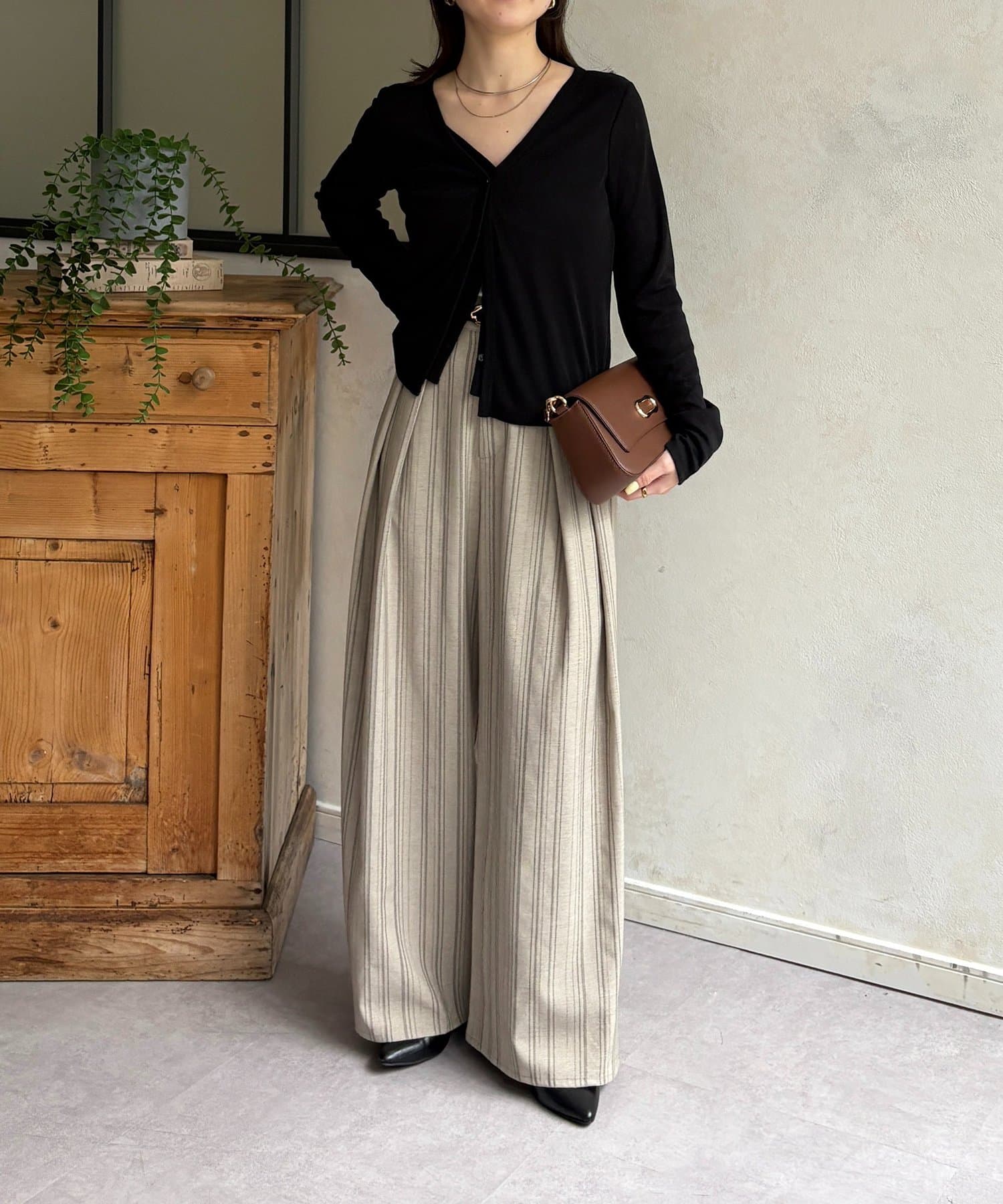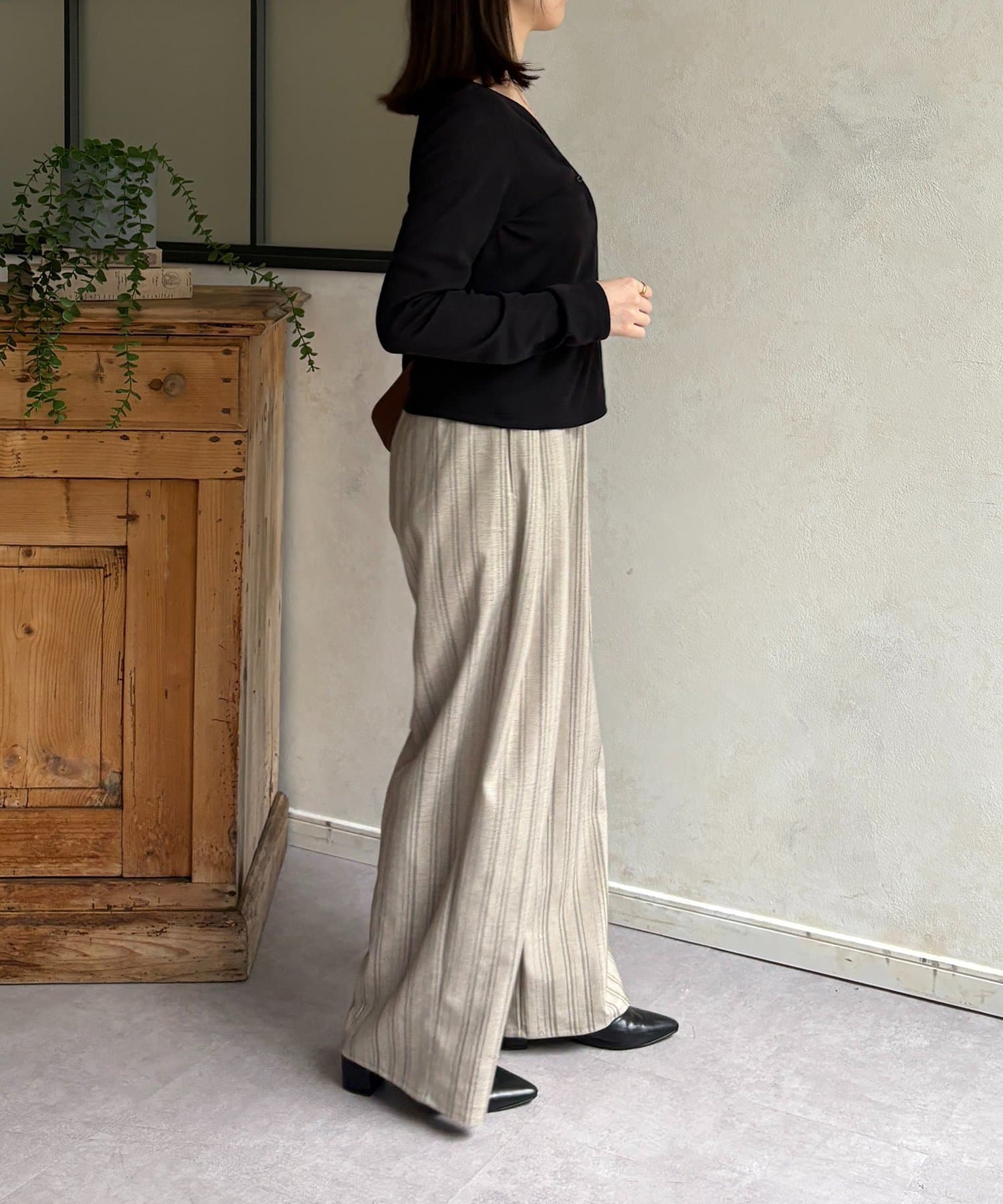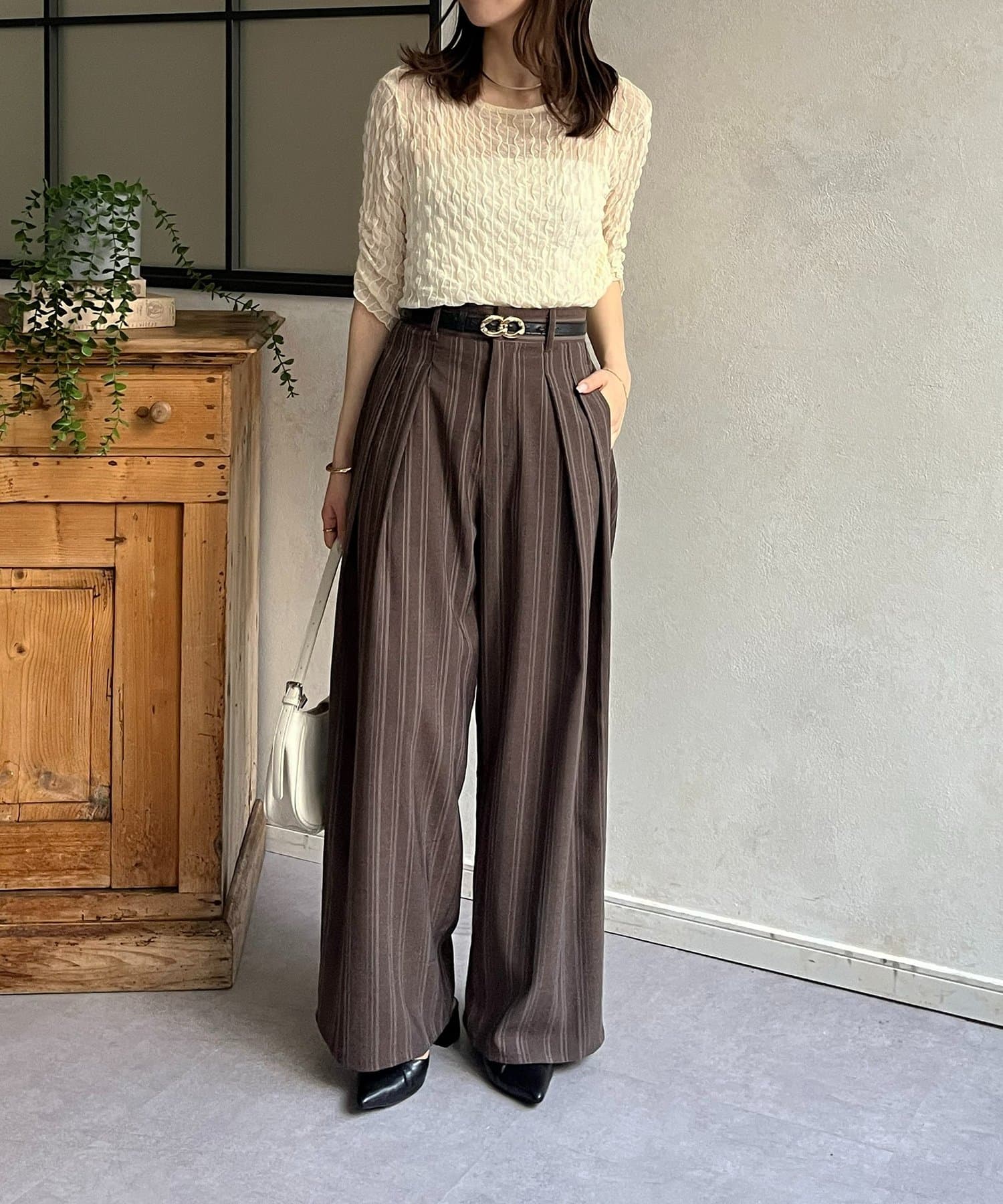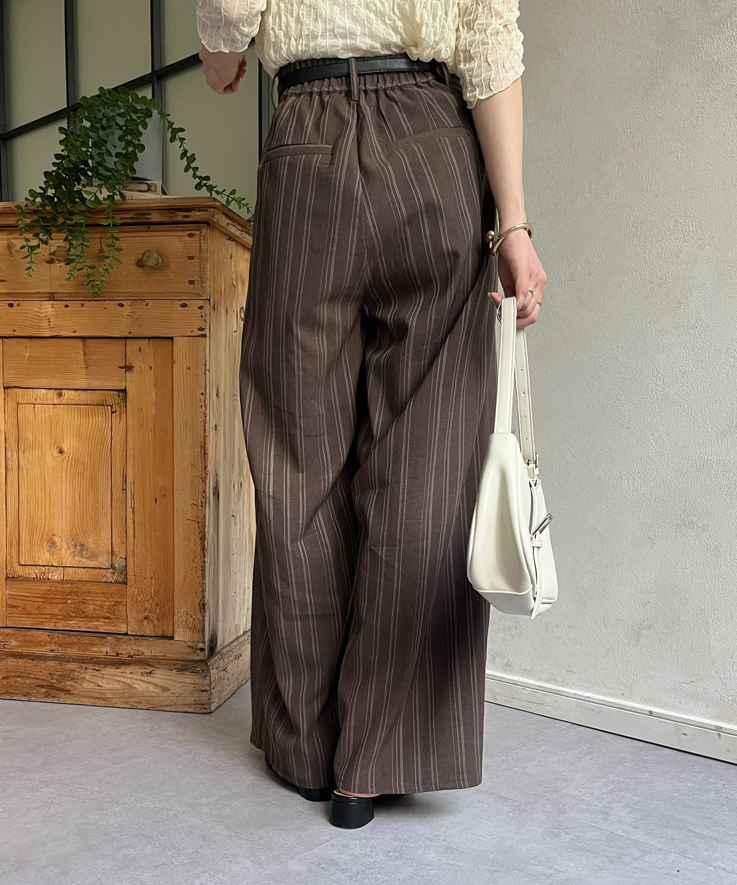 ストライプ柄でスタイルアップ見えするタックパンツ