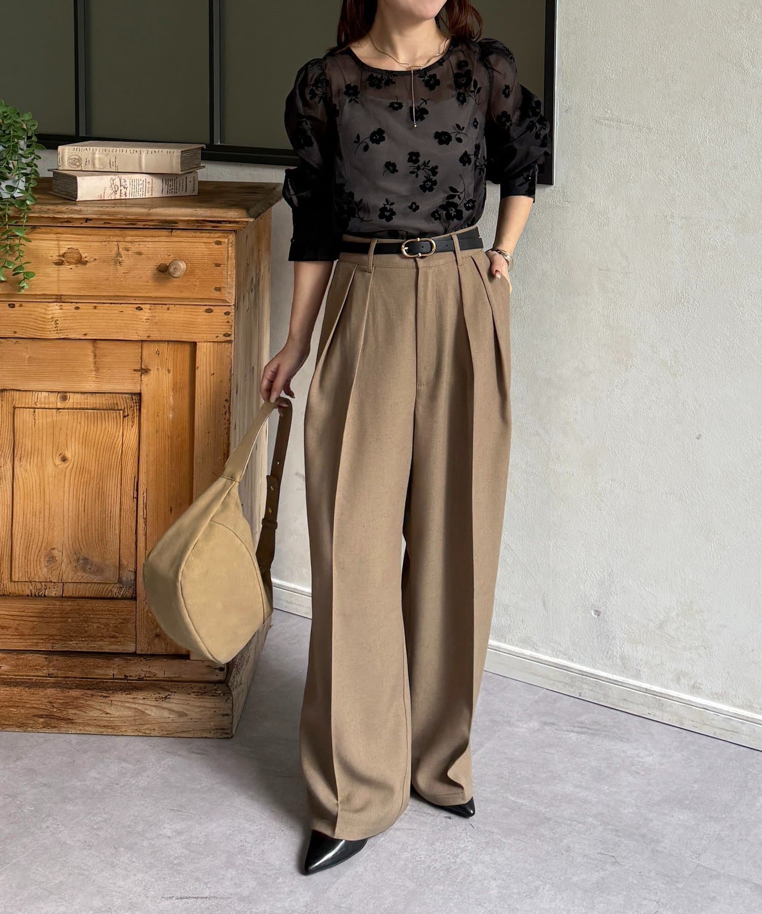 ・ブラウスにきれいめパンツを合わせて、きちんと感をプラス。