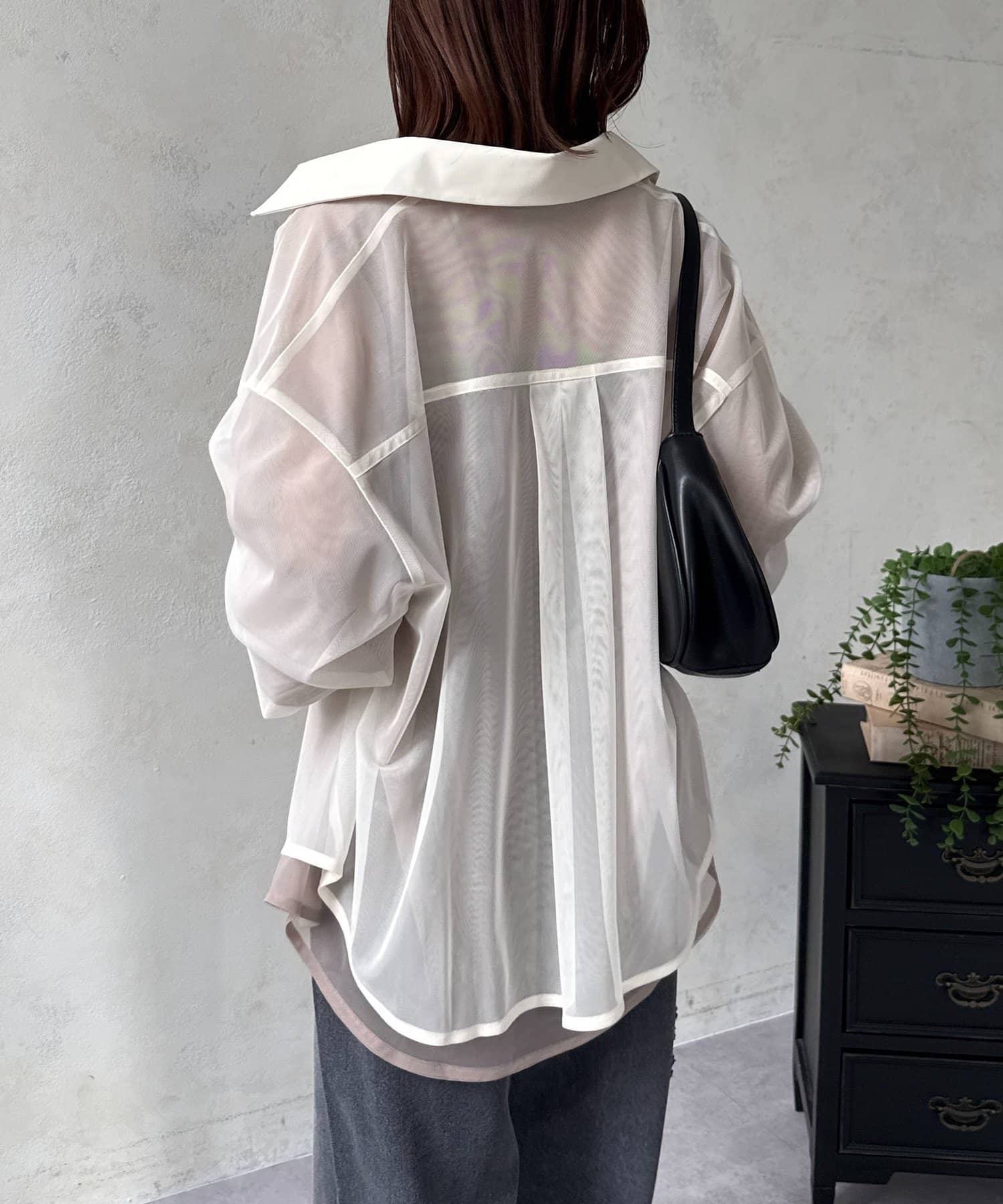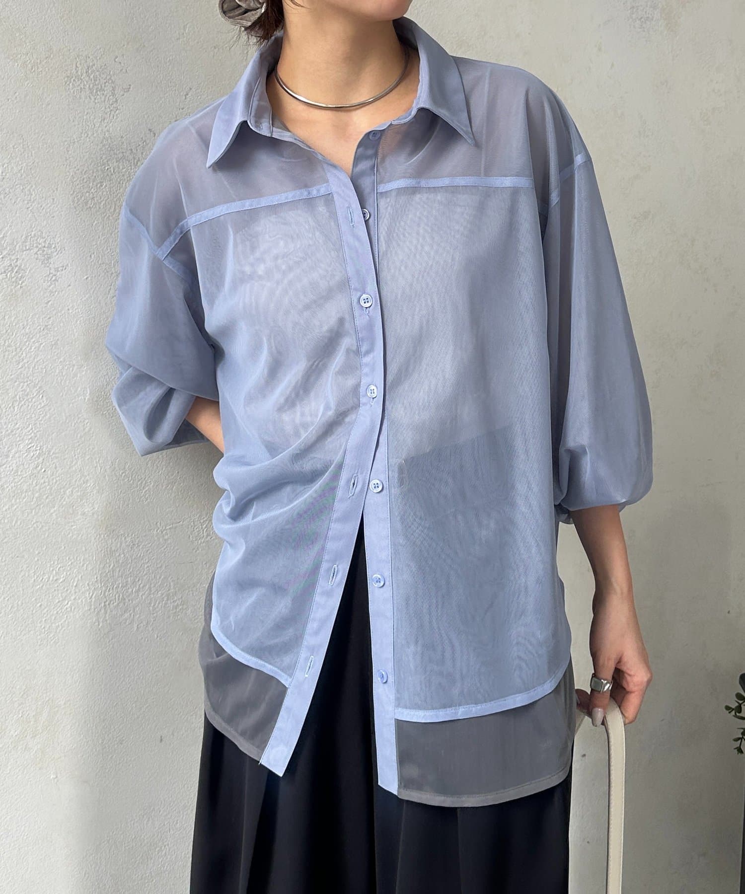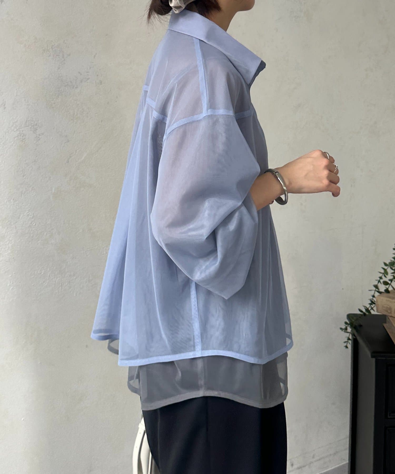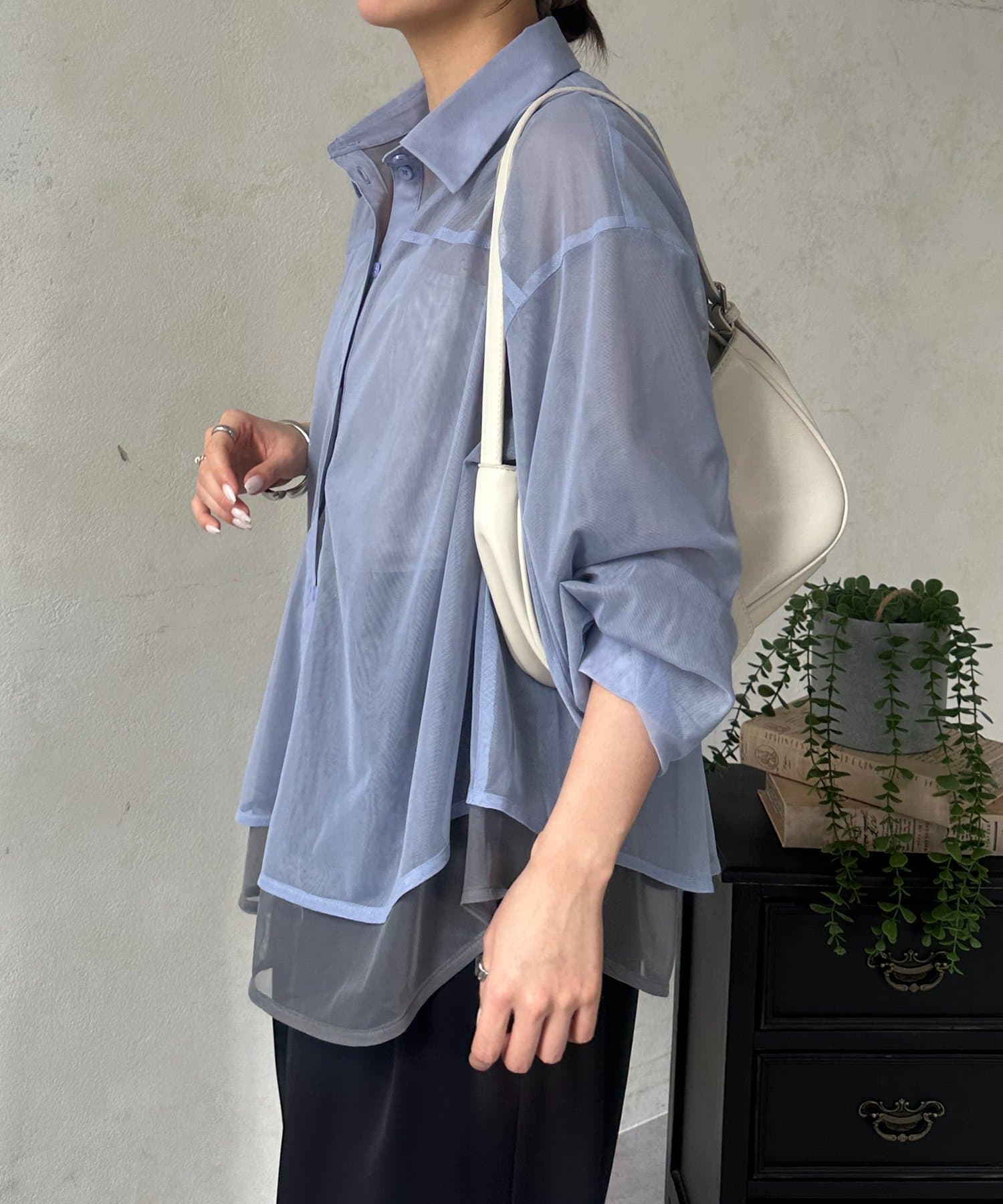 バイカラーチュールレイヤードシャツ