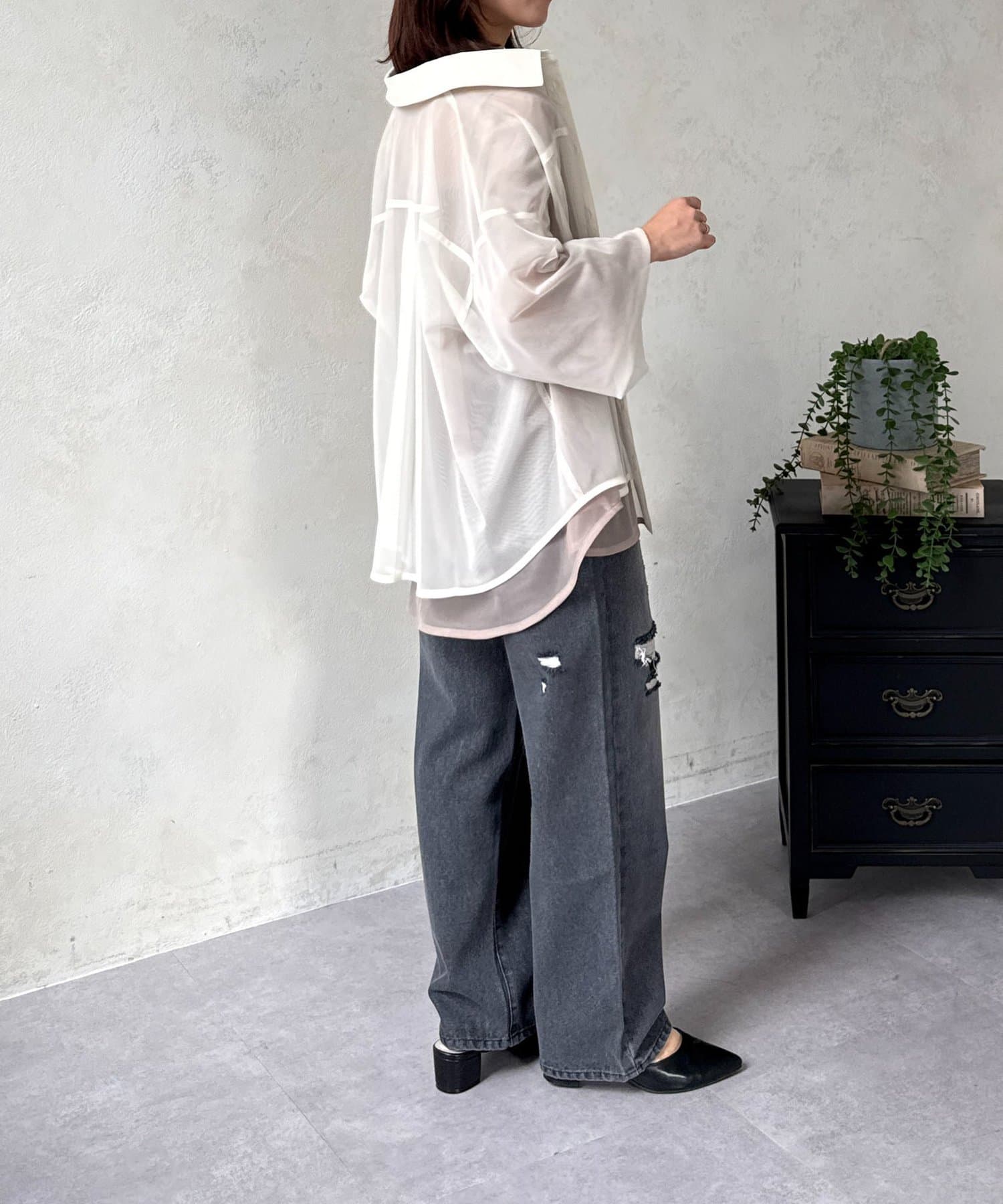 TOP > Thevon. > レディース > トップス > シャツ/ブラウス(ボタン) > バイカラーチュールレイヤードシャツ