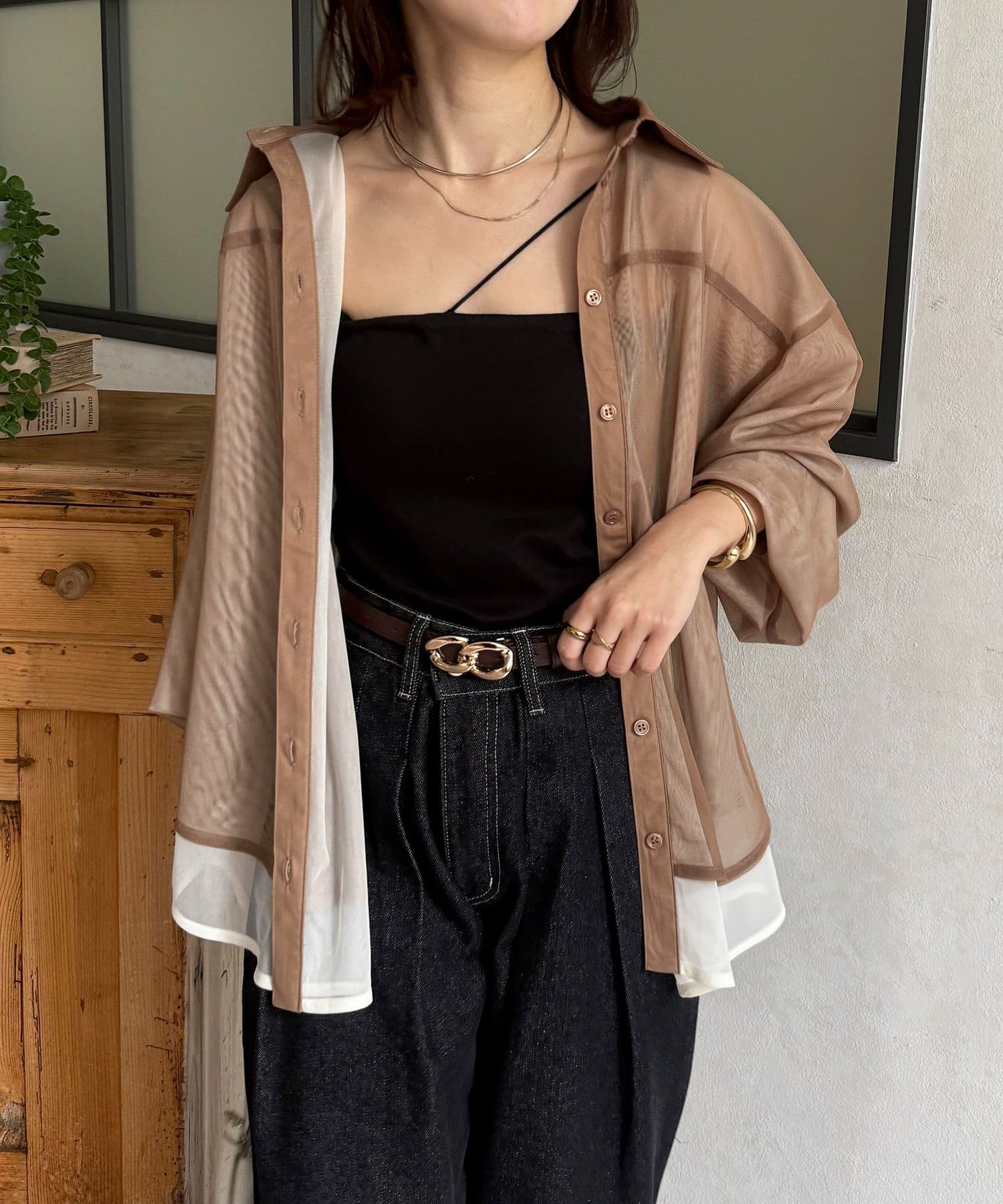・トレンド感あふれるバイカラーシャツで最旬レイヤードスタイル