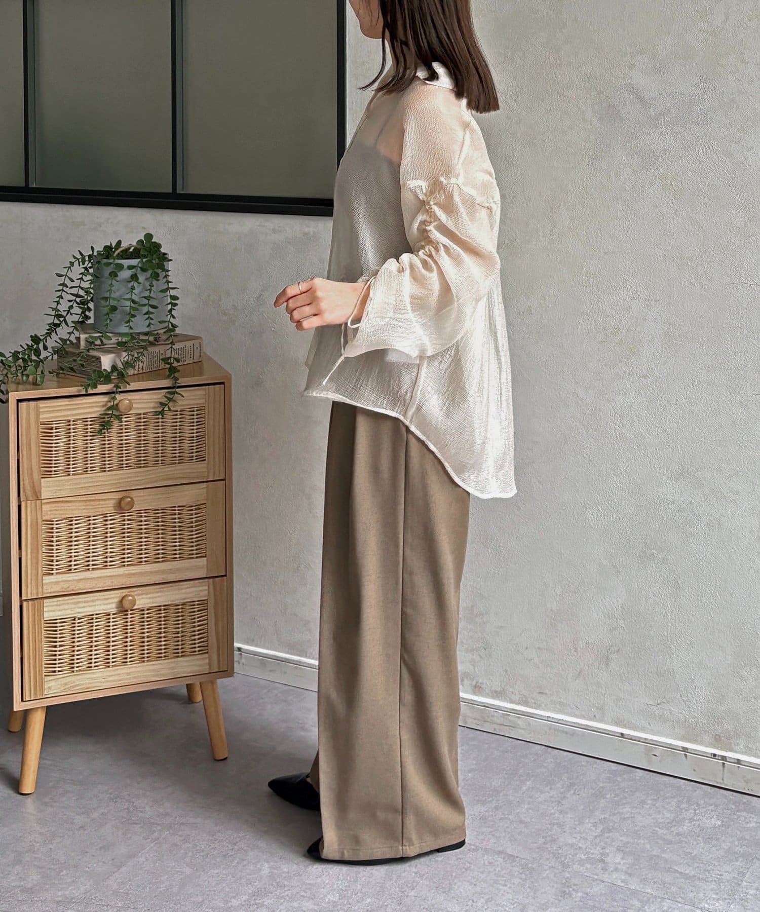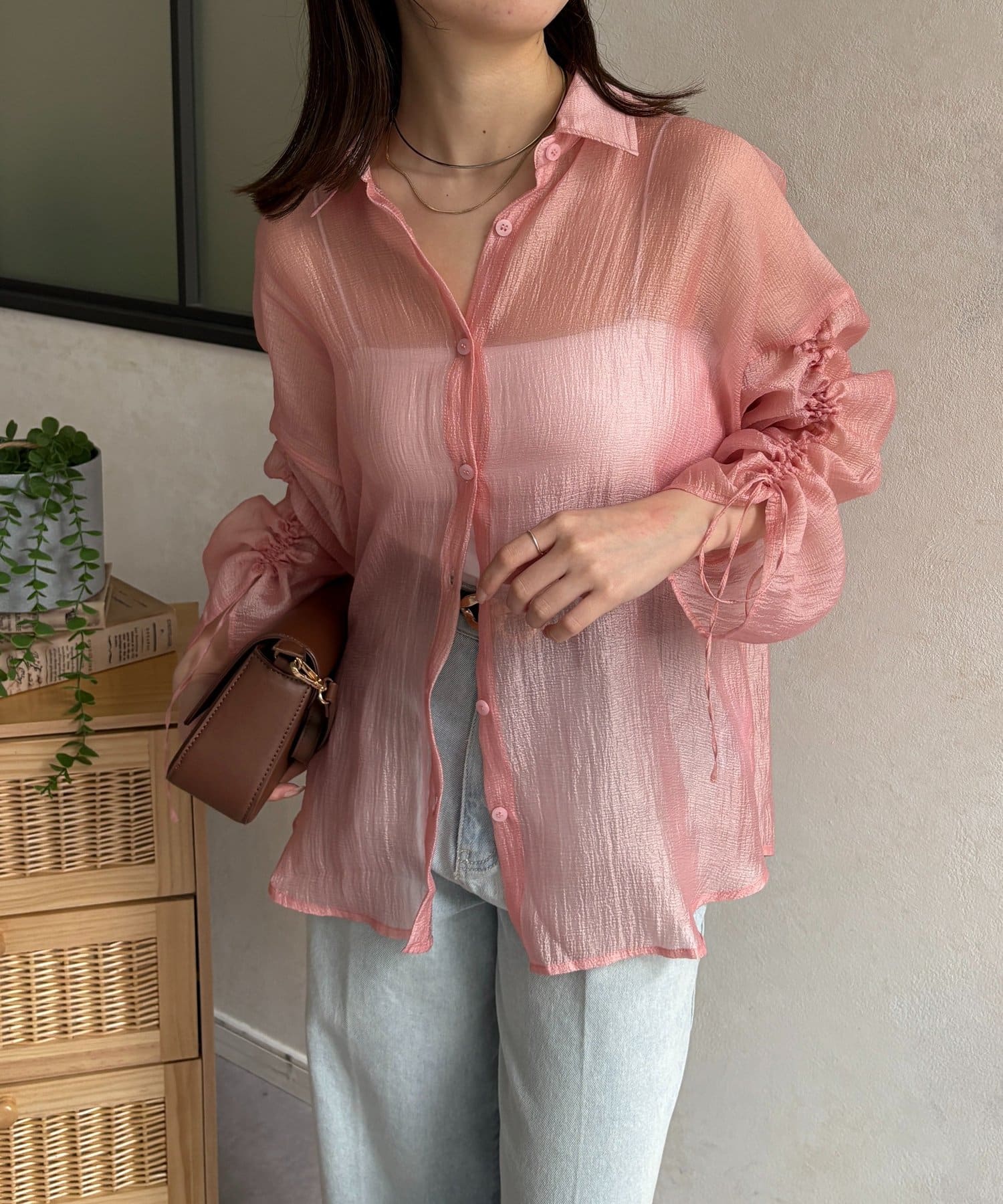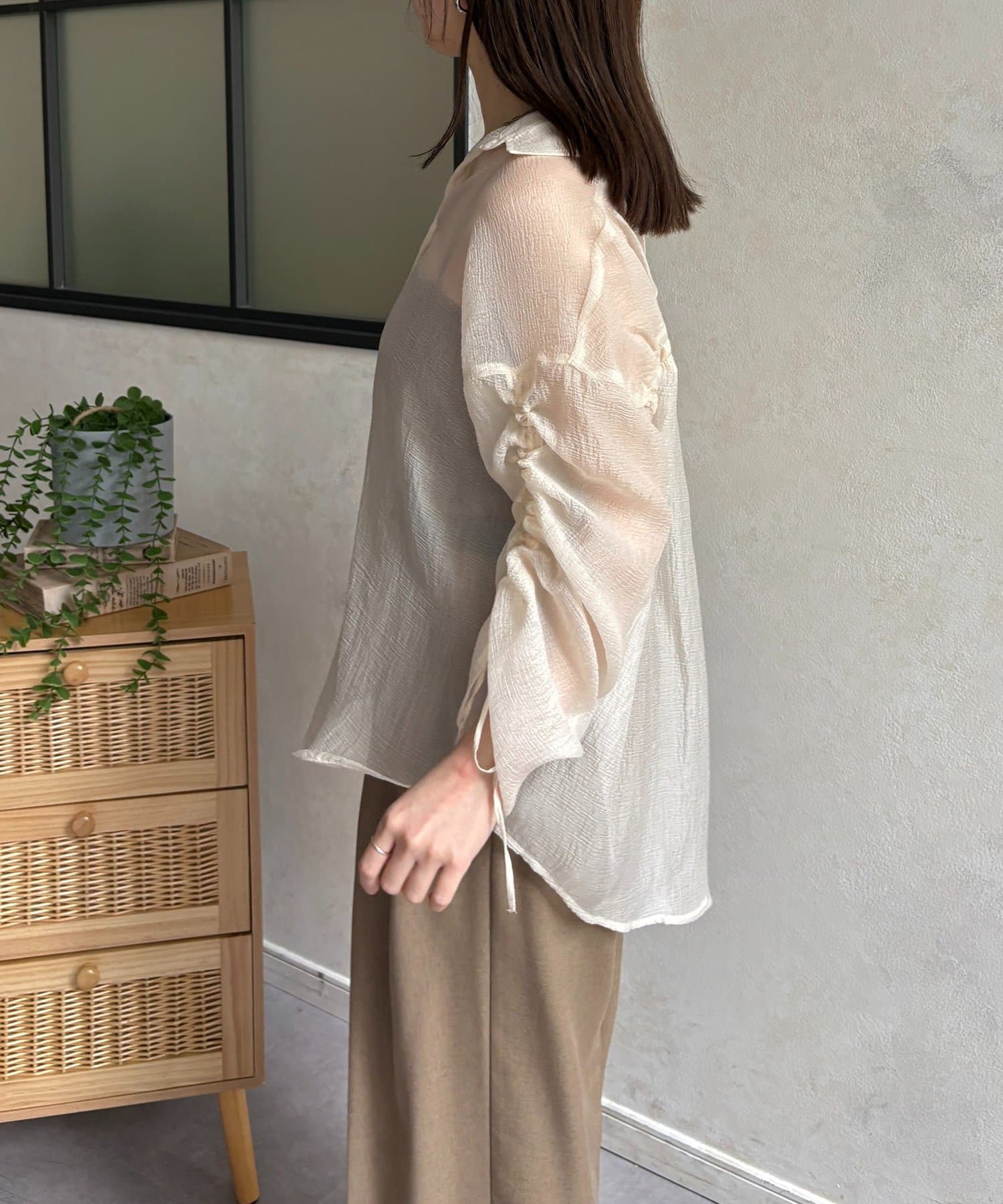 ・キャミソールワンピースに羽織って、上品な透け感をプラス。