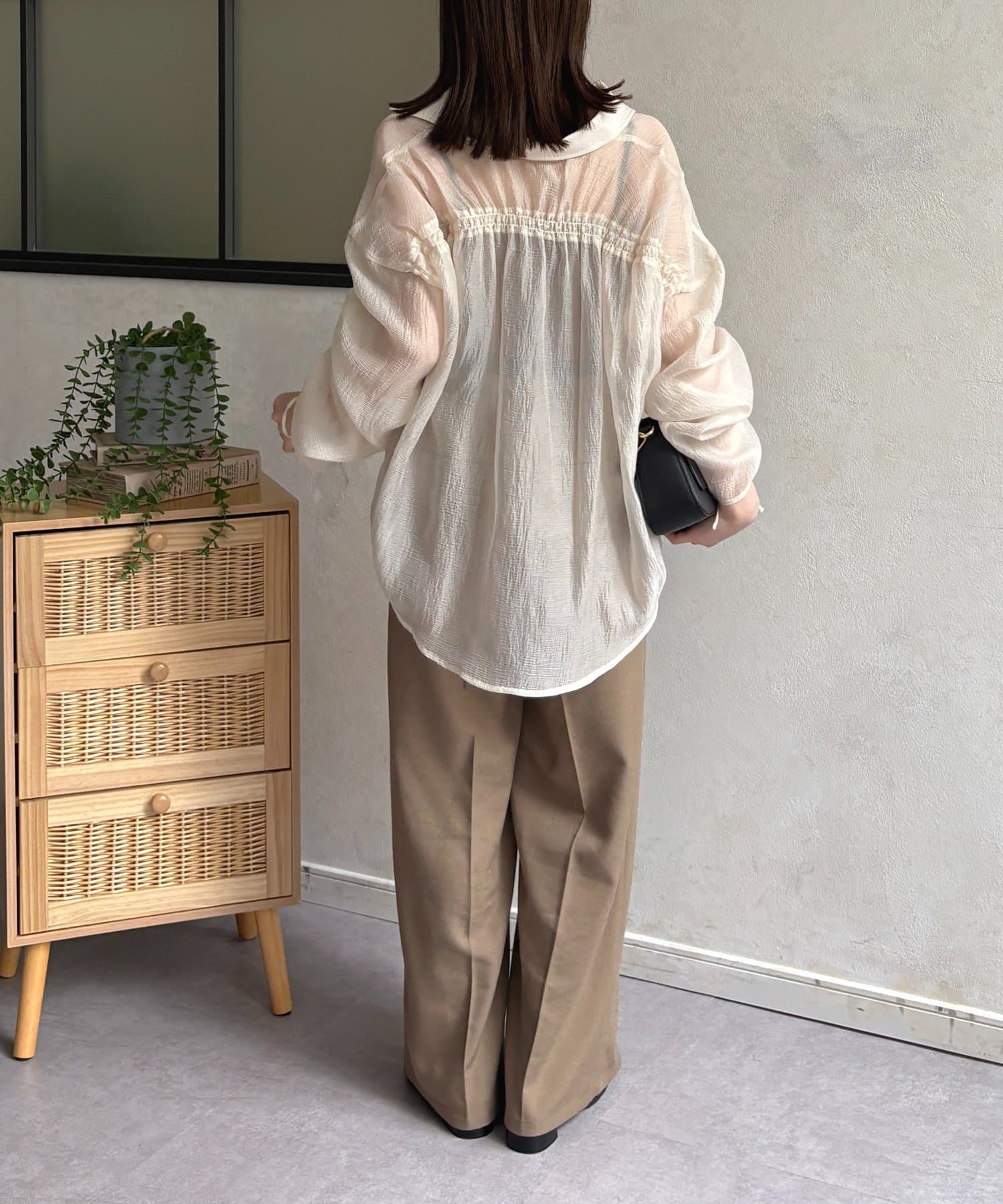 #シアーシャツ #ラメ#シャーリング#透け感#春服#着回し #カジュアル