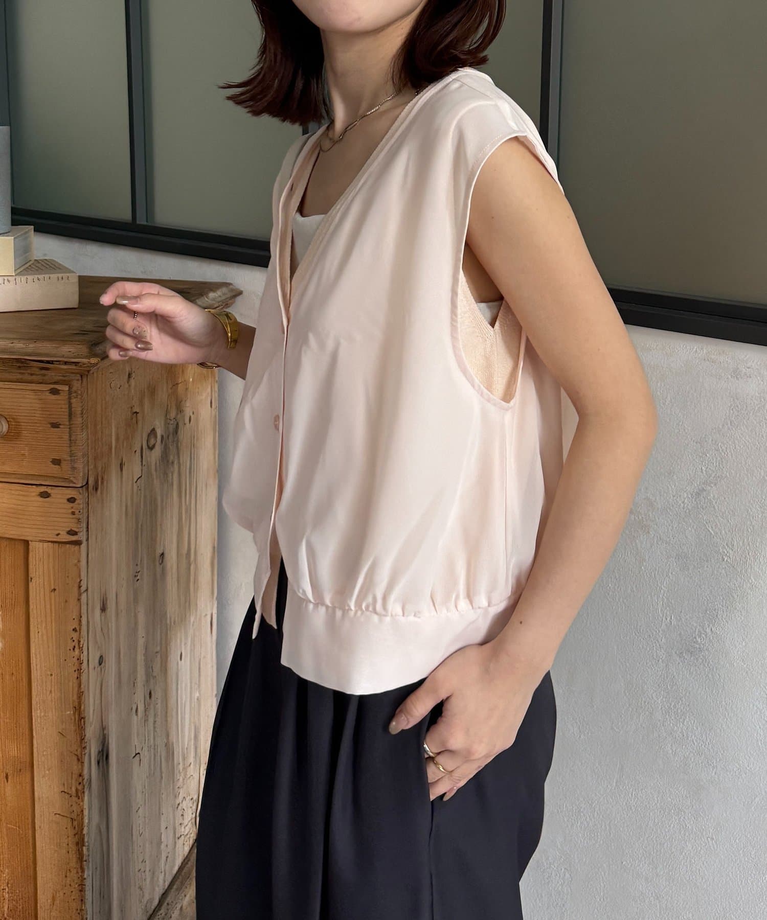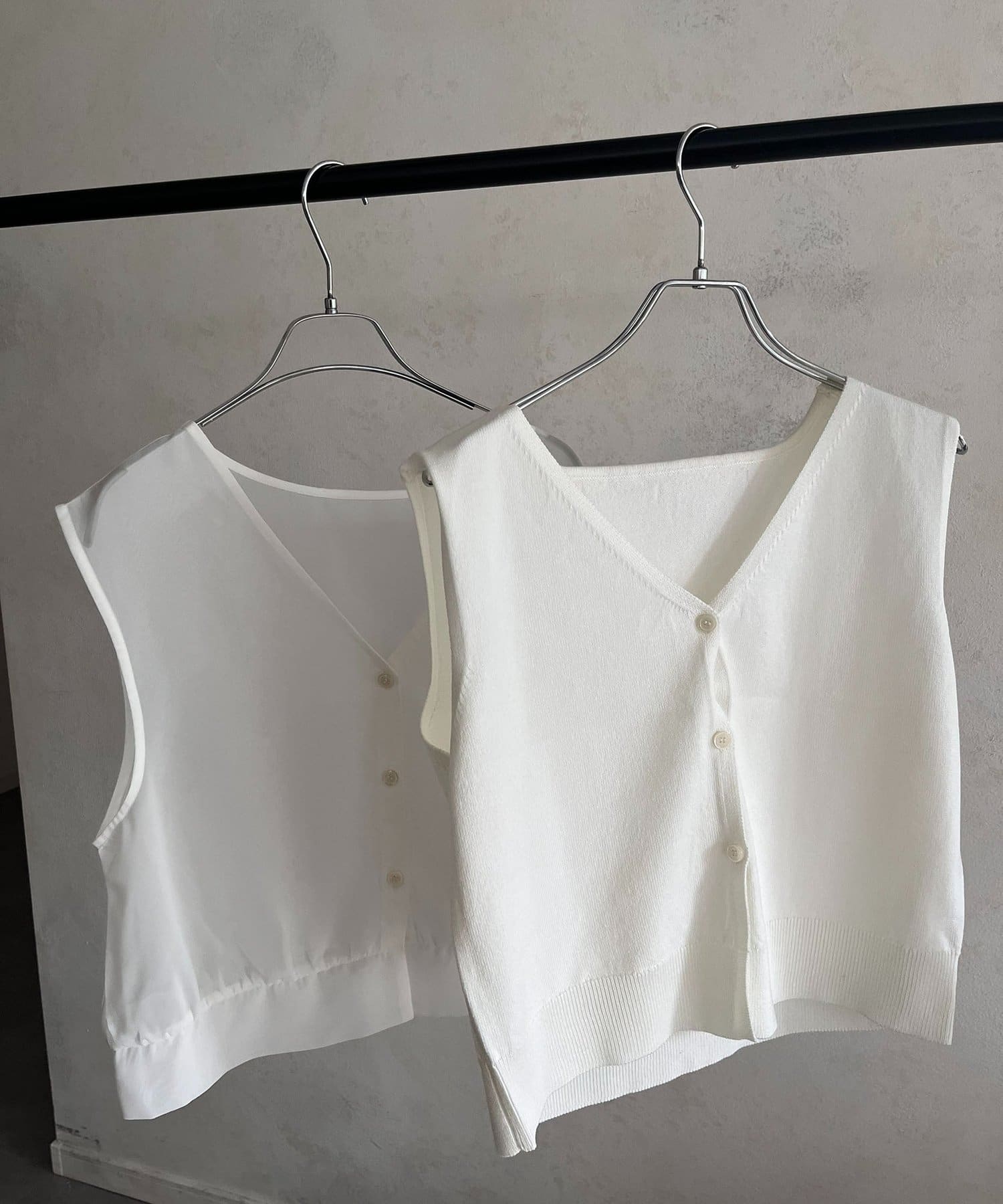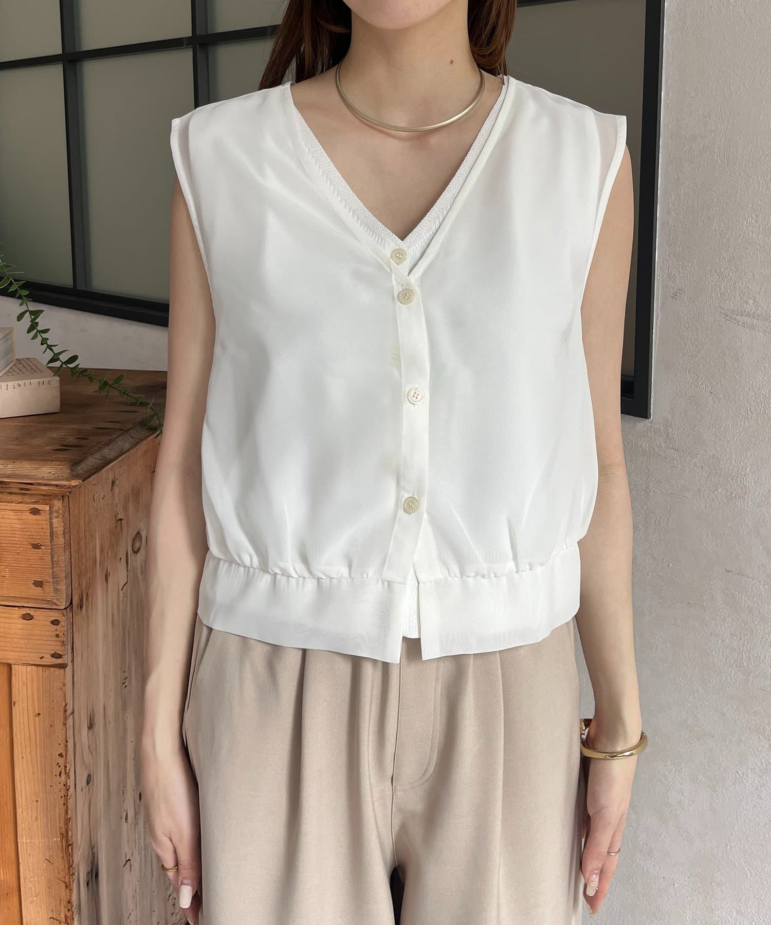・ノースリーブニットは単品でもレイヤードしても