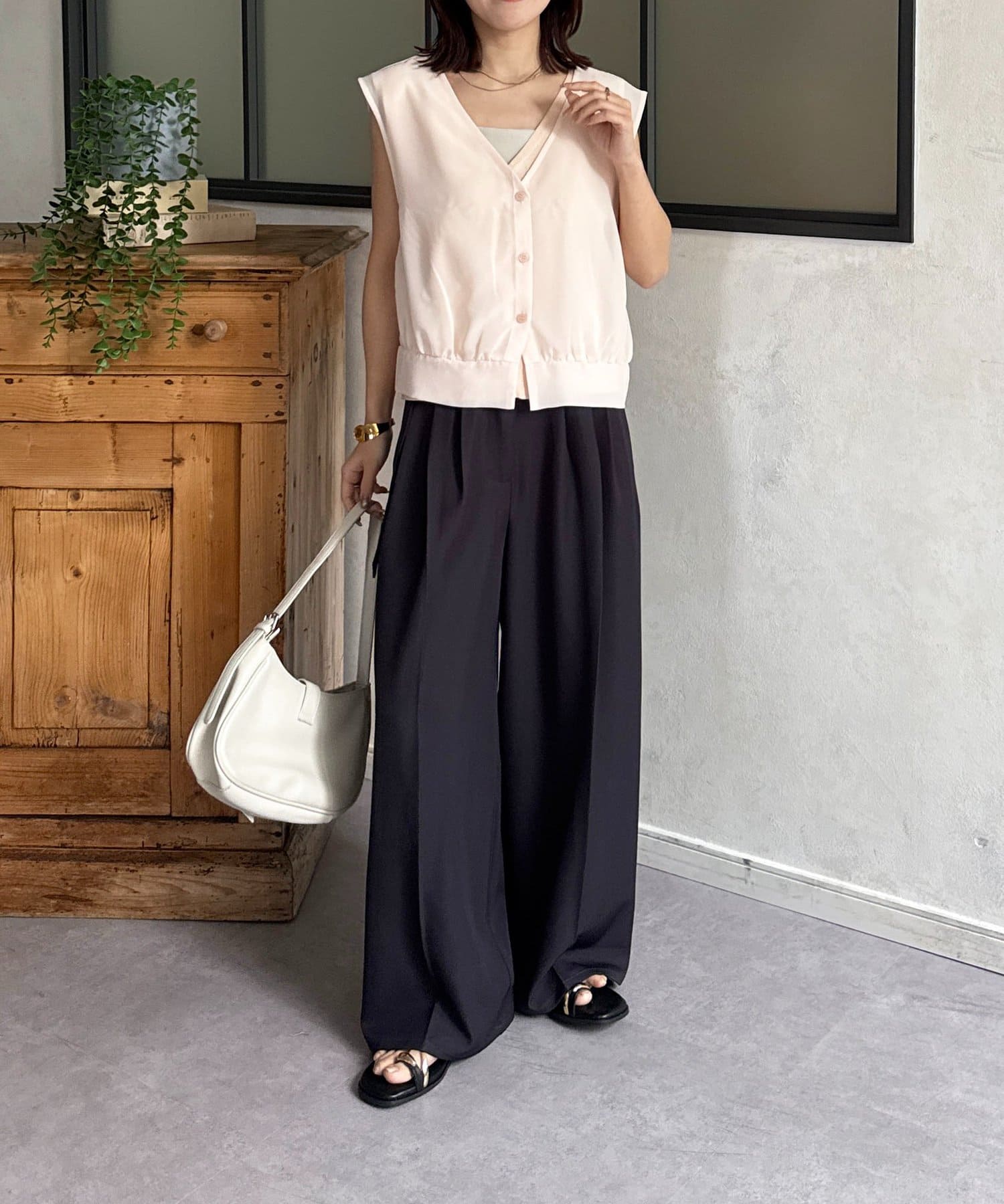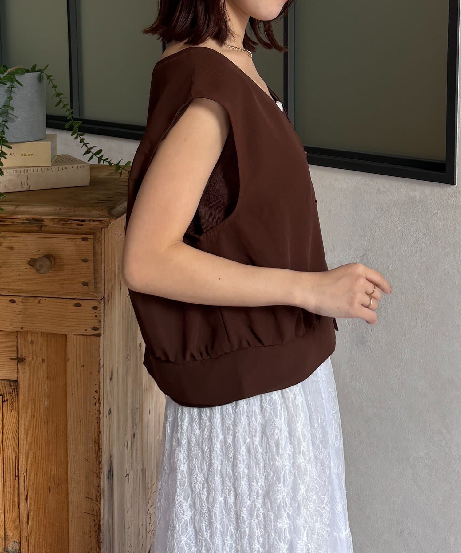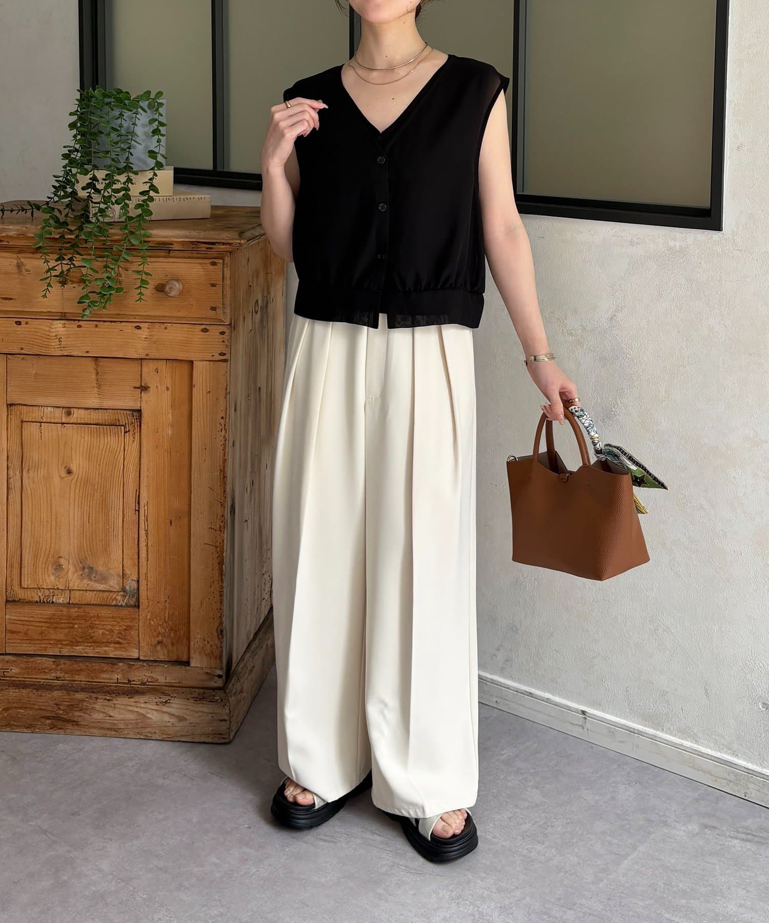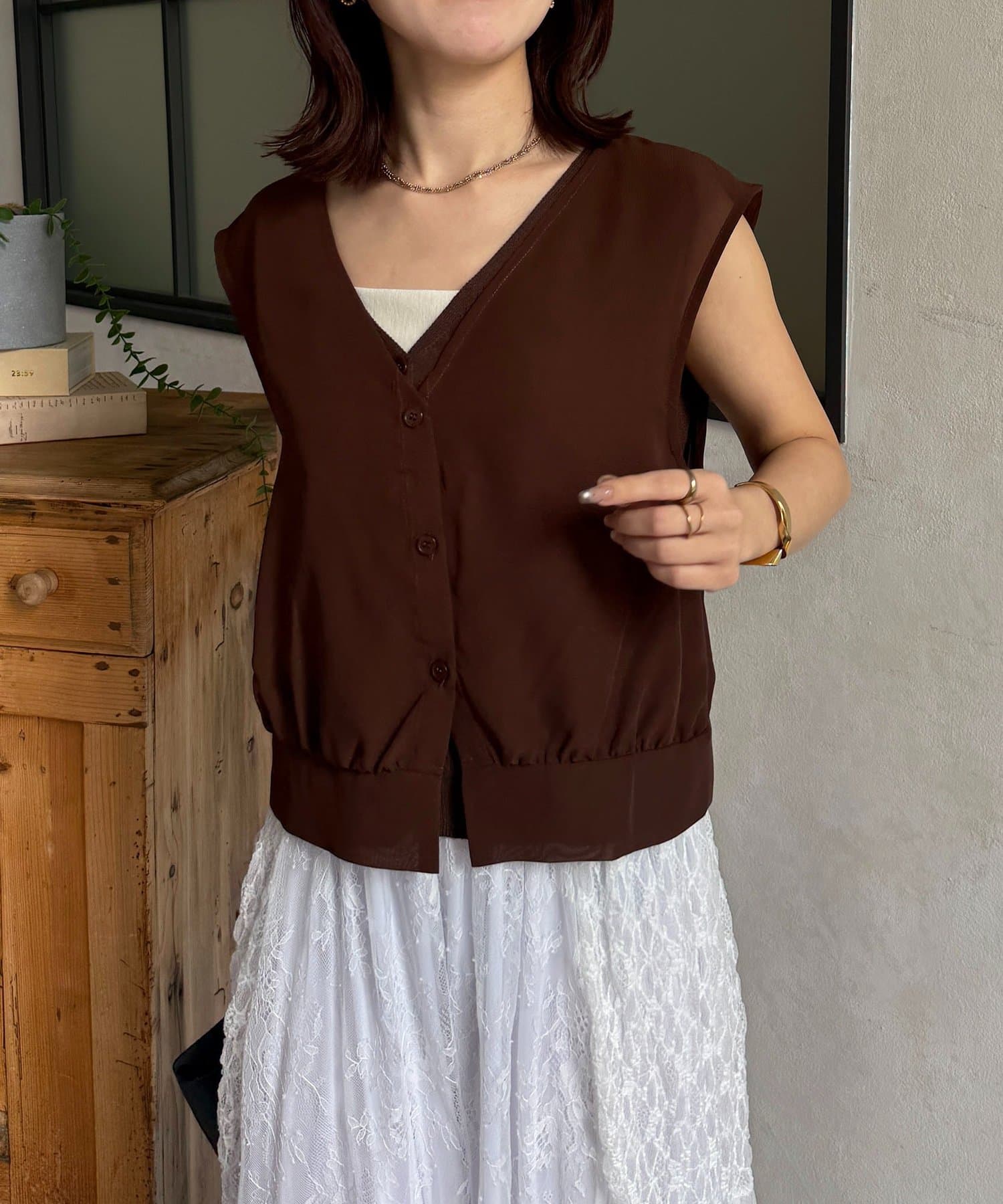 ・ノースリーブニットは単品でもレイヤードしても