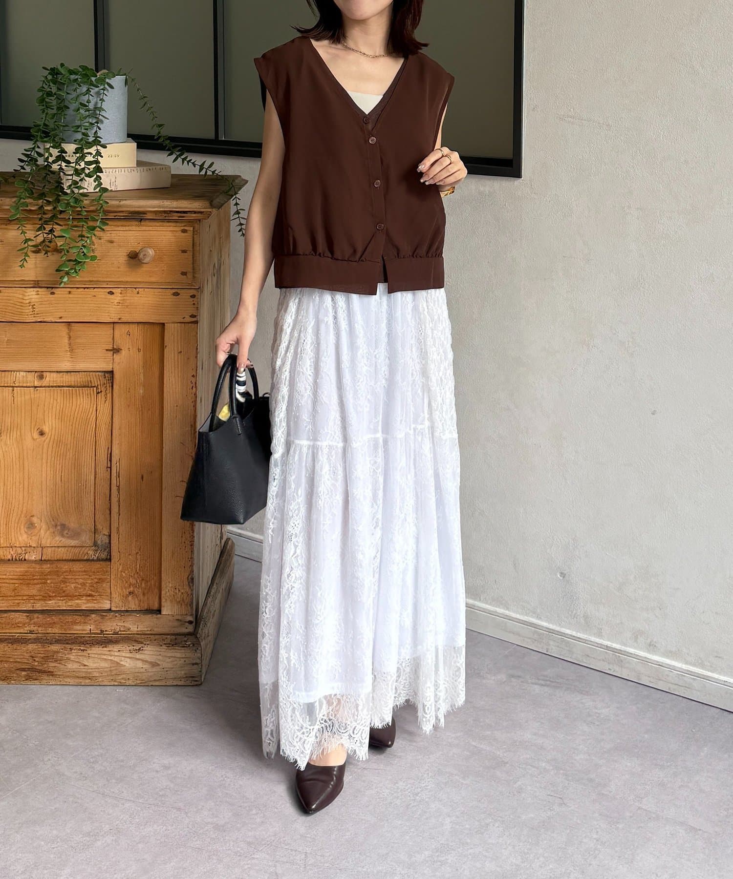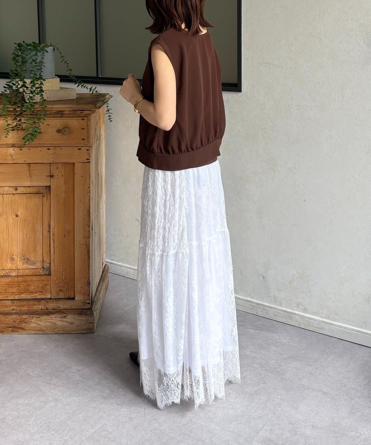 ・レーススカートと合わせて、フェミニンな印象に。