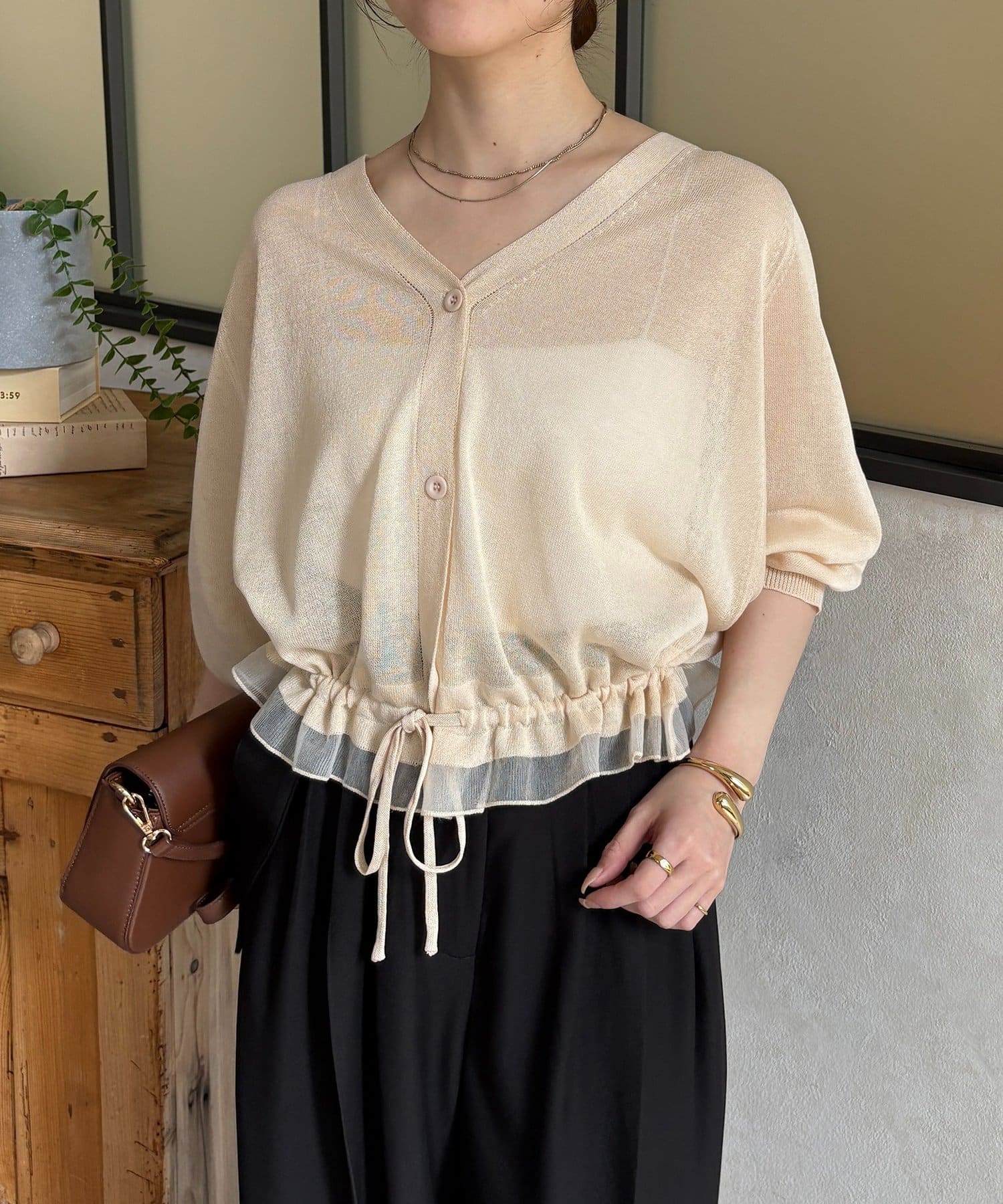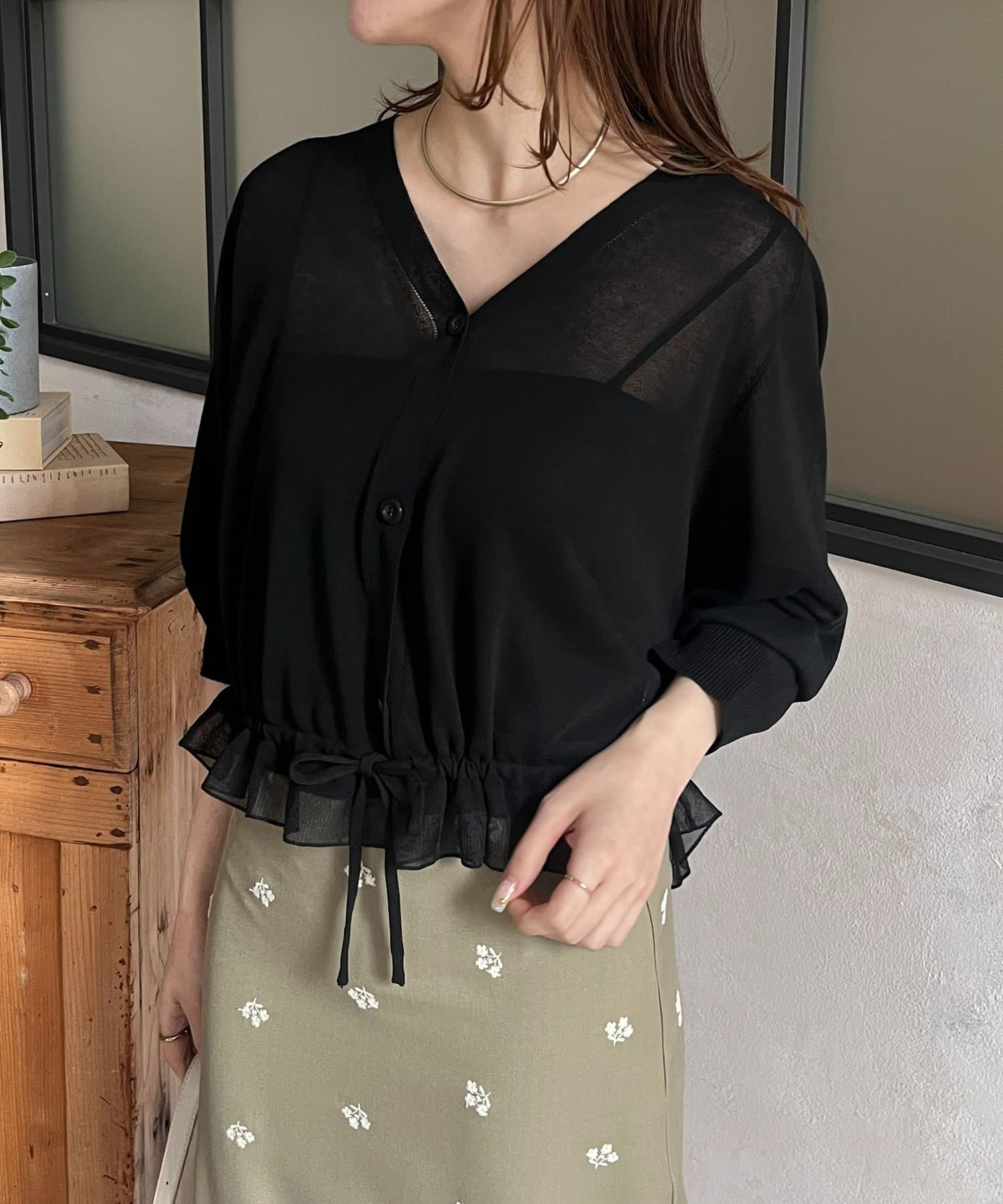 #カーディガン#シアー#ドロスト#Vネック#春服#着回し#きれいめ#オフィス