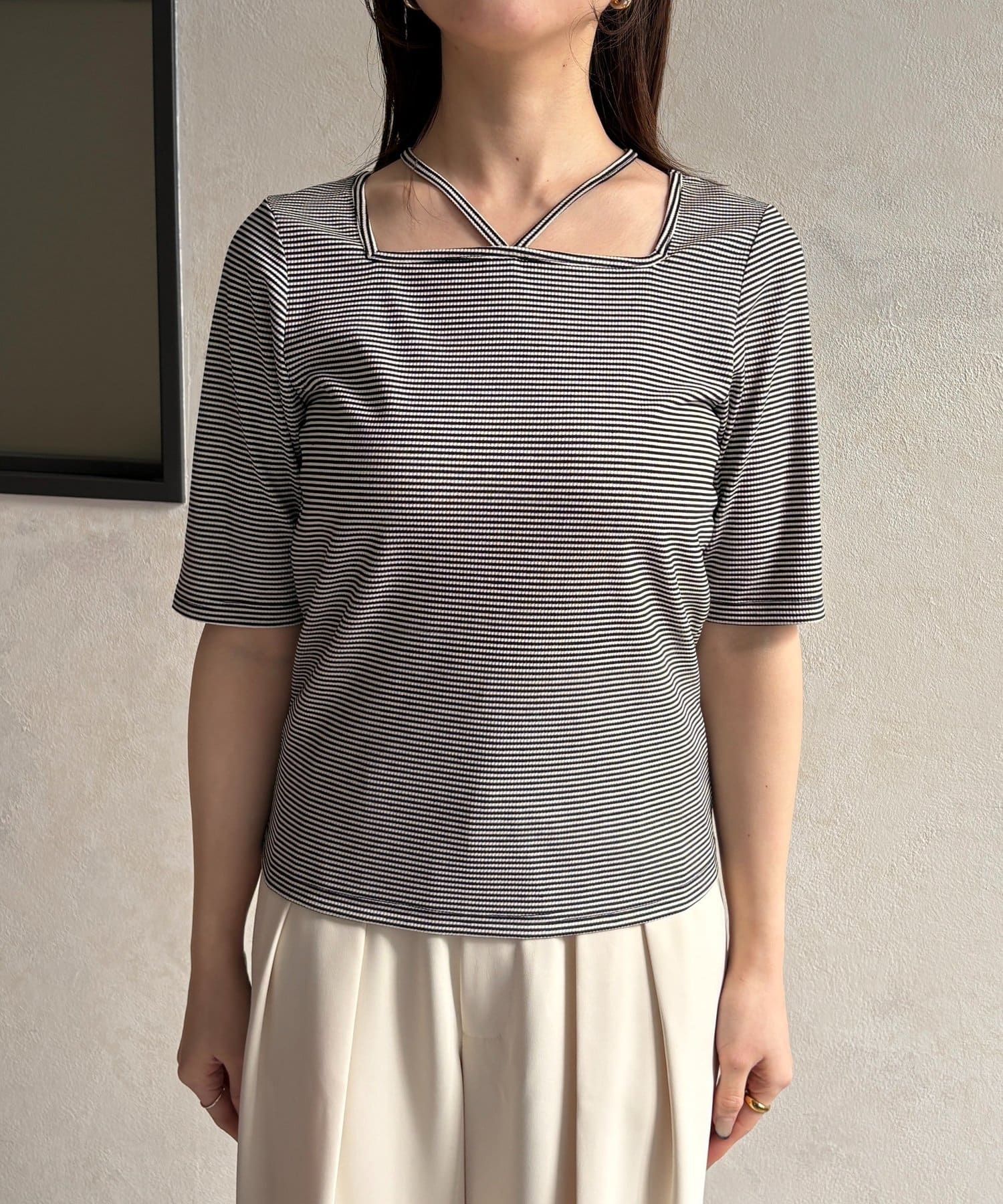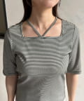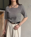 TOP > Thevon. > レディース > トップス > Tシャツ/カットソー > チャーム付きホルターネック5分袖プルオーバー