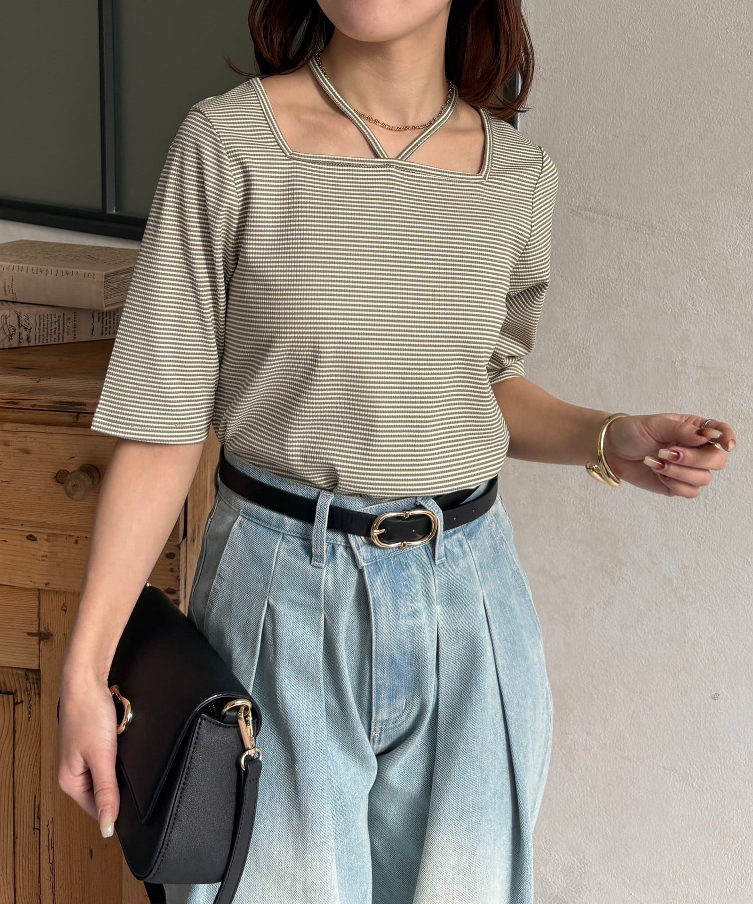 #プルオーバー #ホルターネック #チャーム #5分袖 #きれいめ