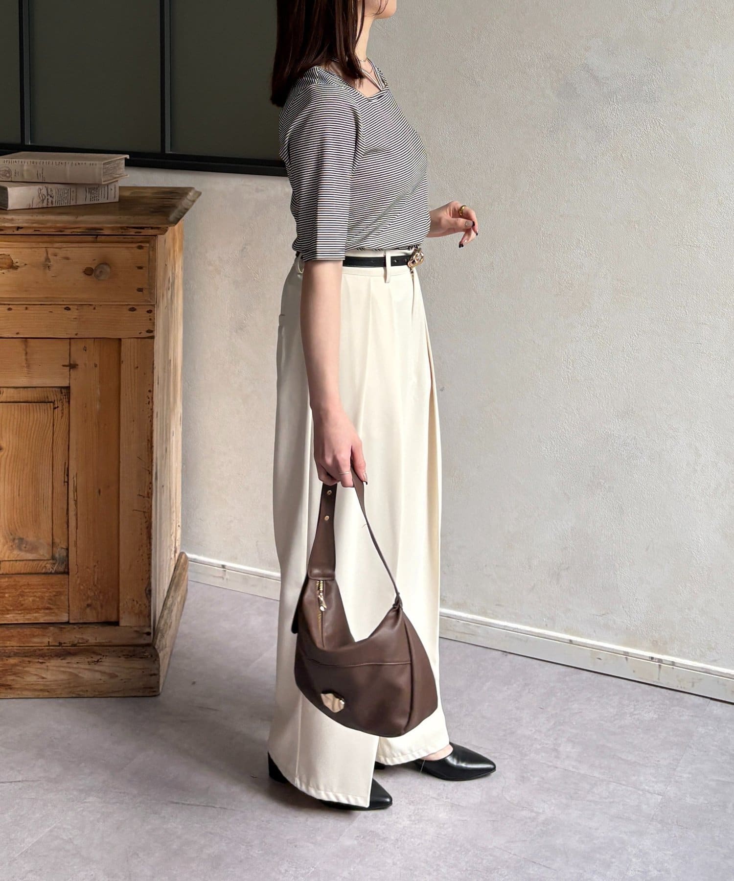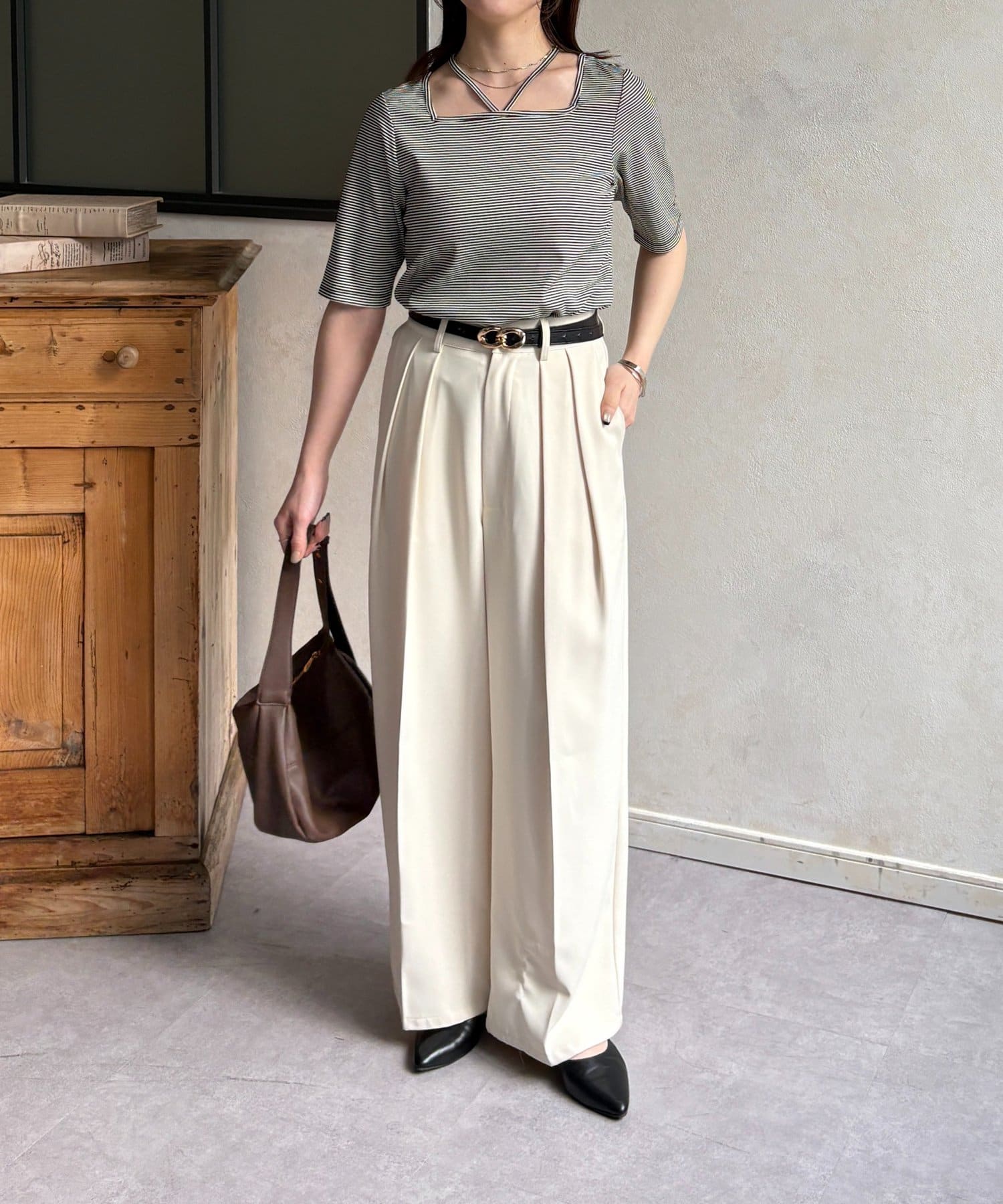 ・同色のスラックスと合わせてゆるっときれいめな