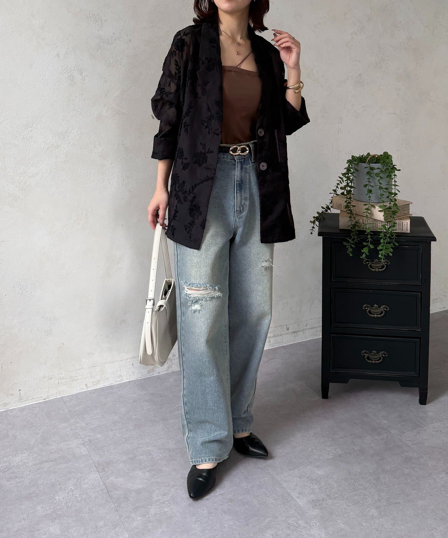#ジャケット #テーラードジャケット#花柄 #シアー #着回し #きれいめ#春アウター