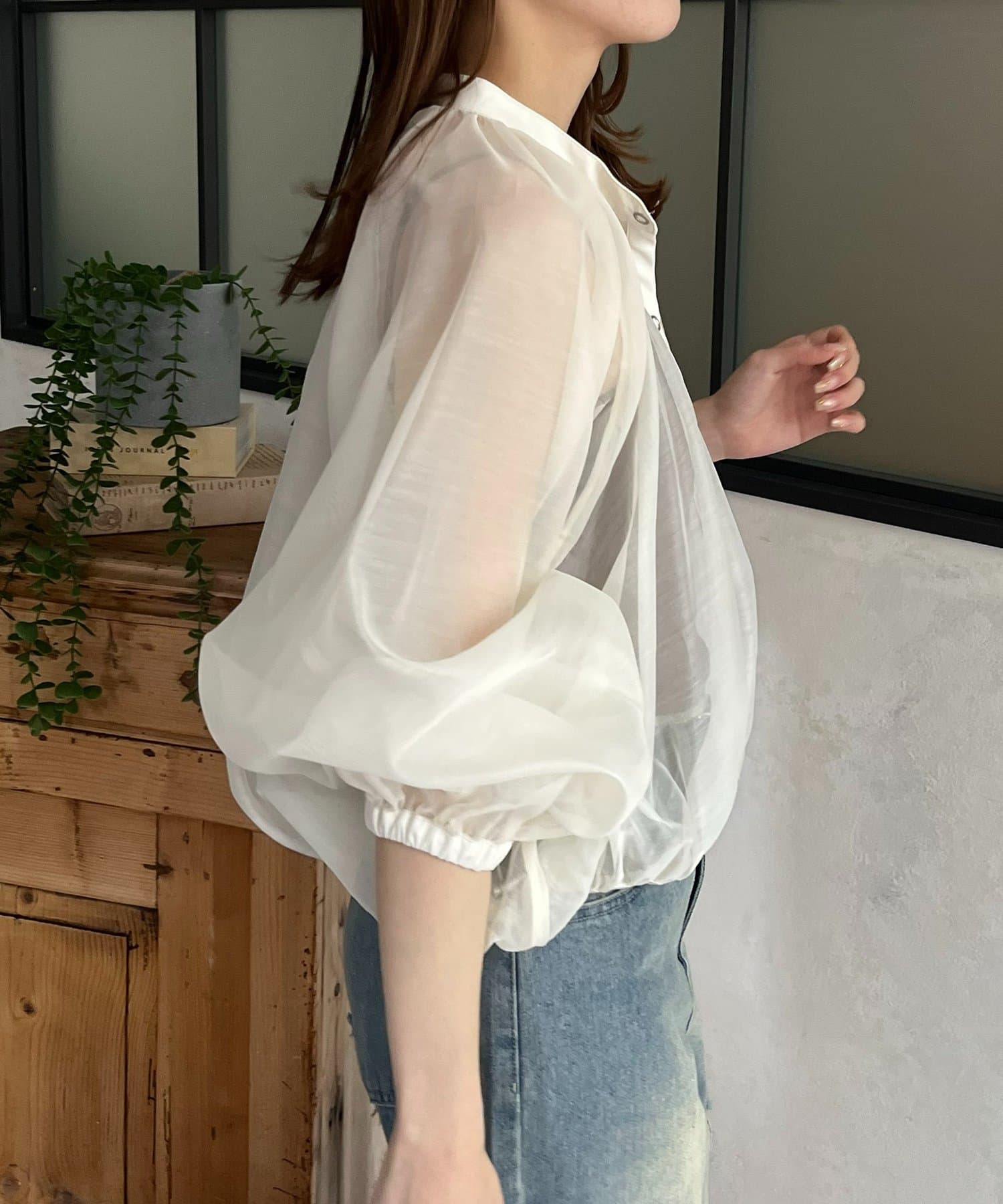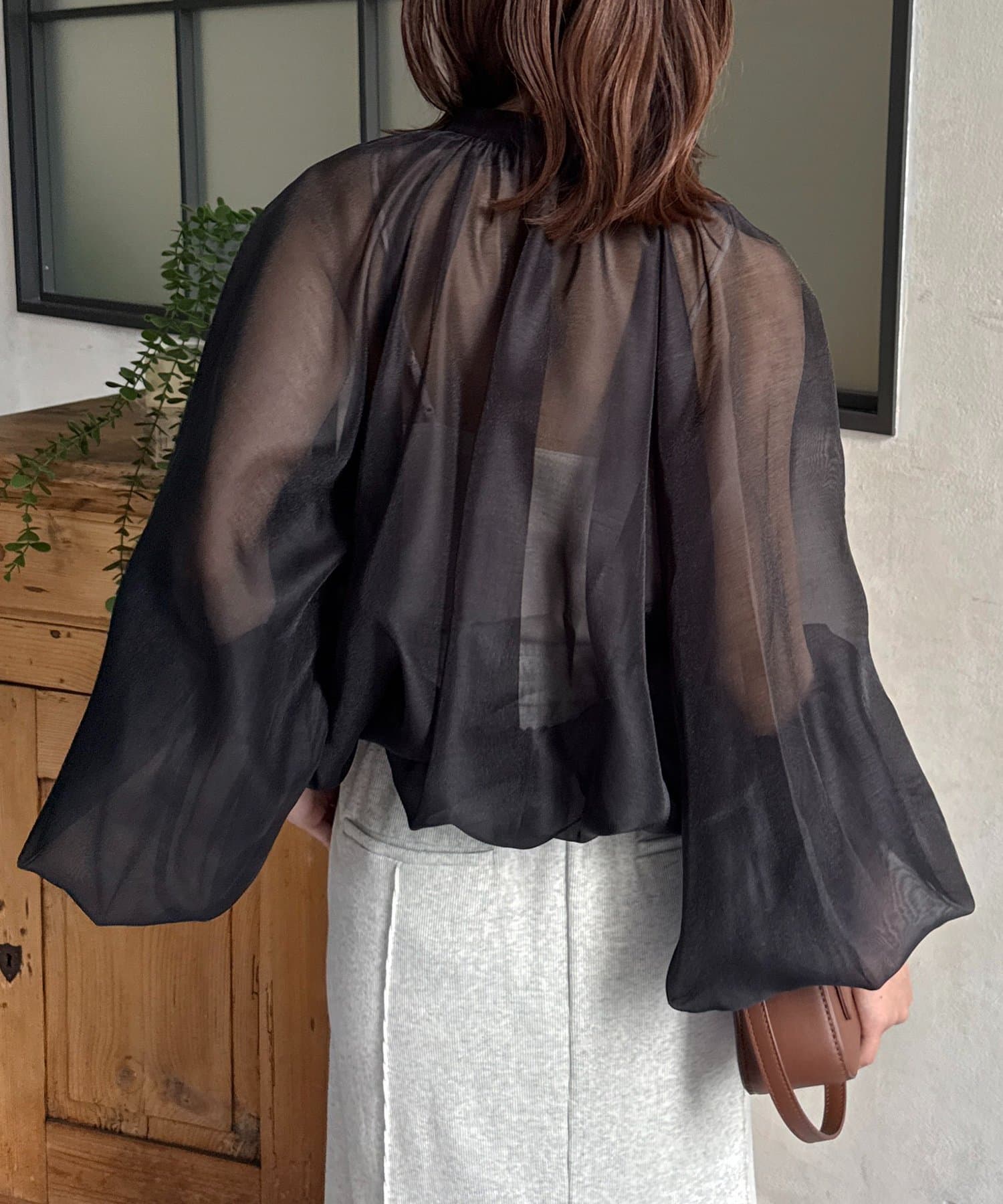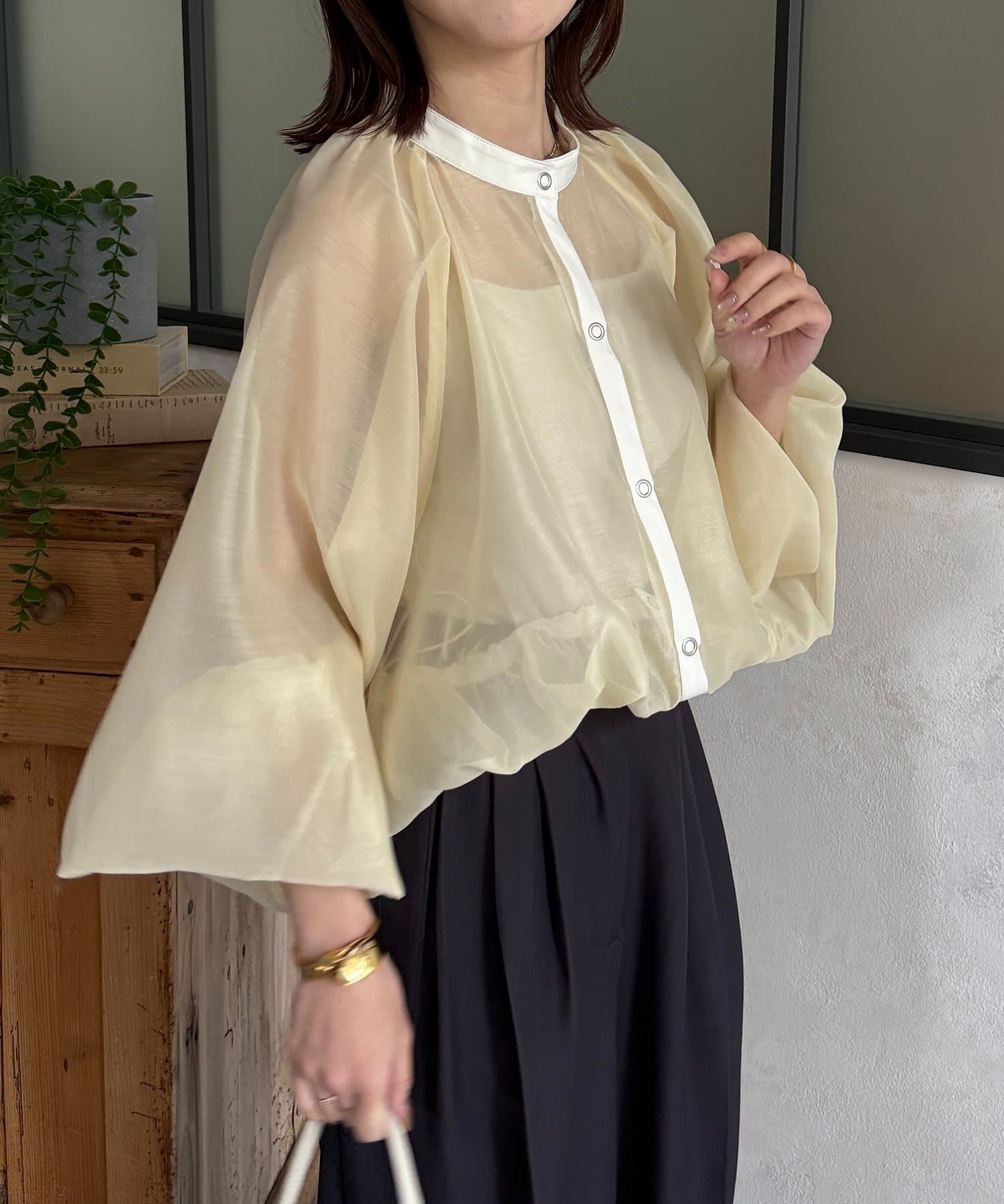 Thevon.(ゼヴォン) スナップボタンシアーギャザーブルゾン