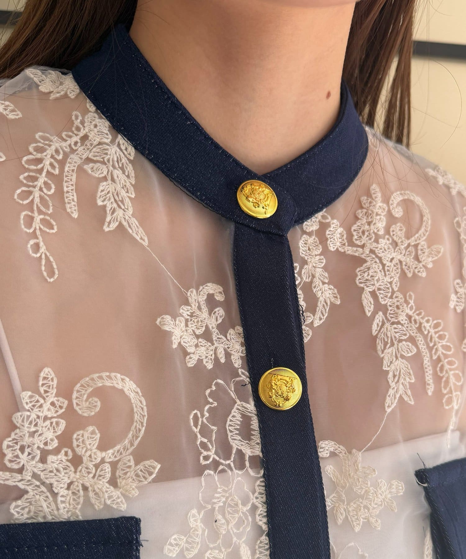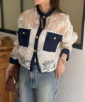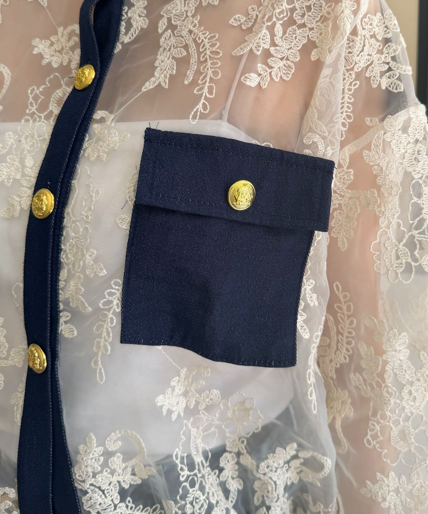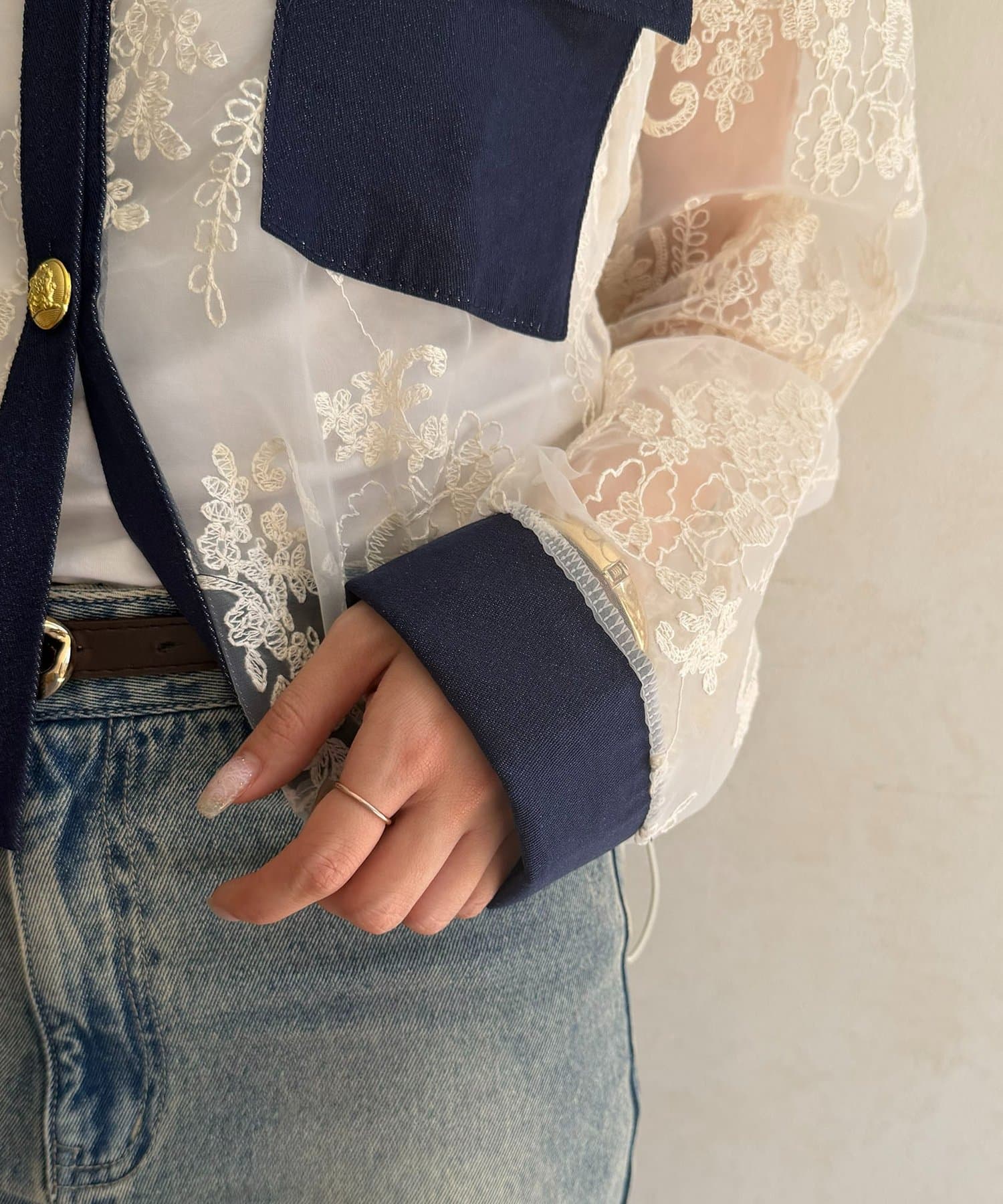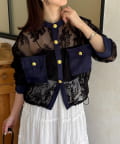 GOLD釦デニム切替レースジャケット