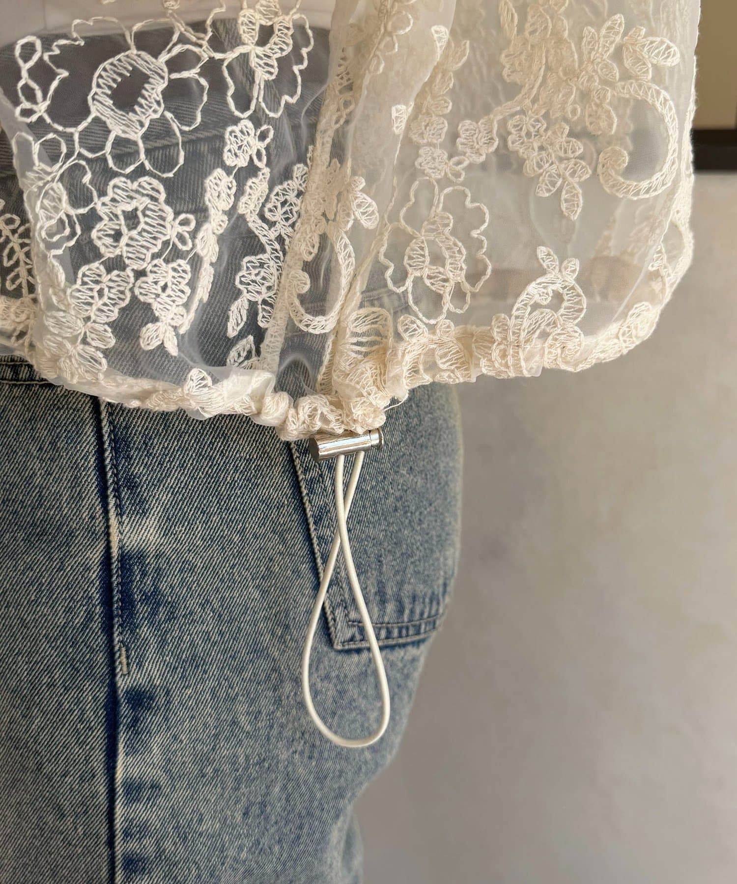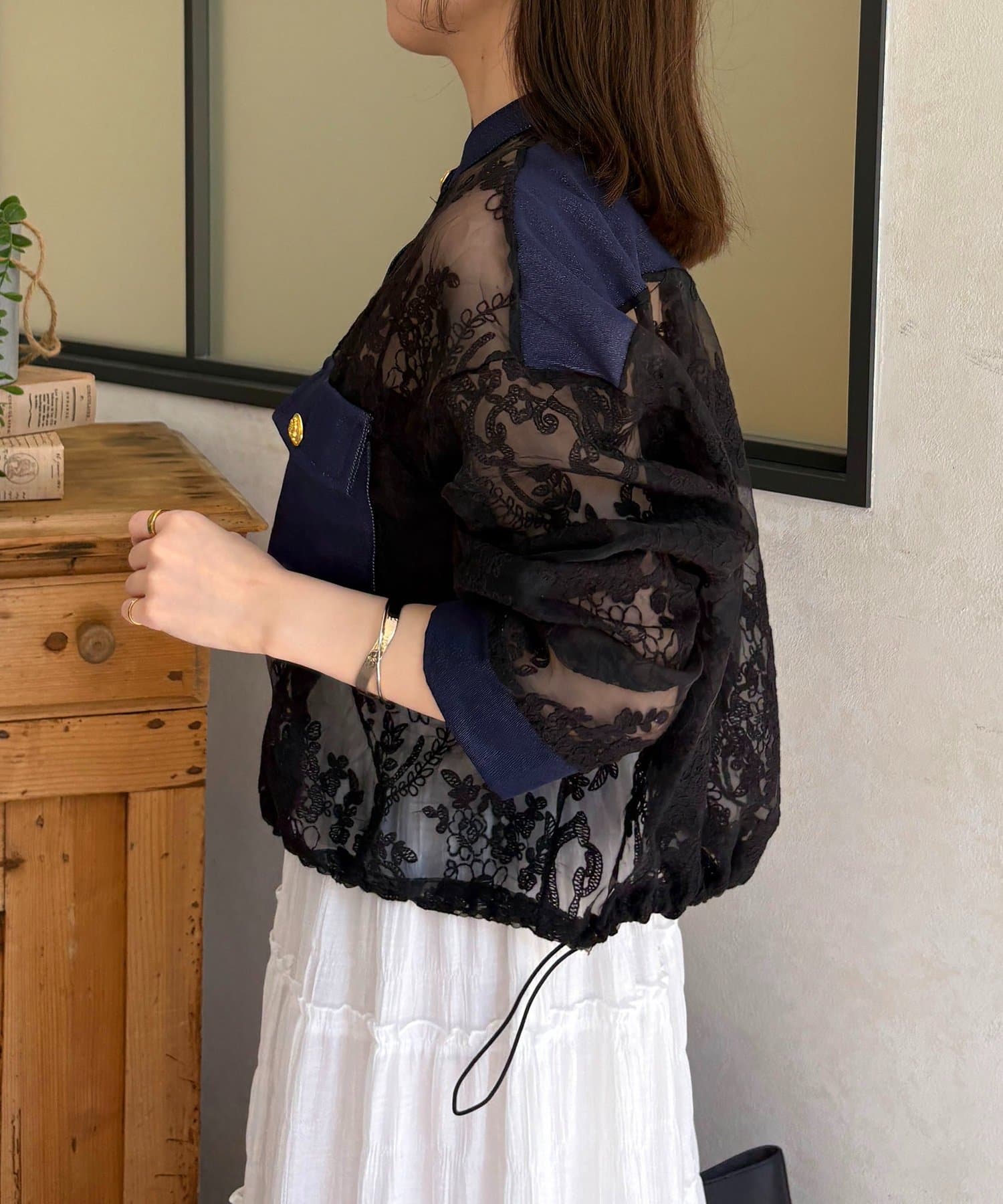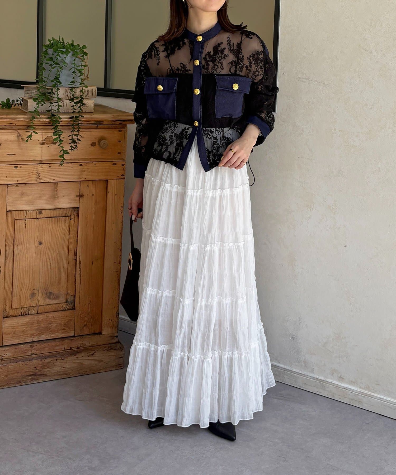 ・透け感のあるレース素材で、軽やかな抜け感を演出