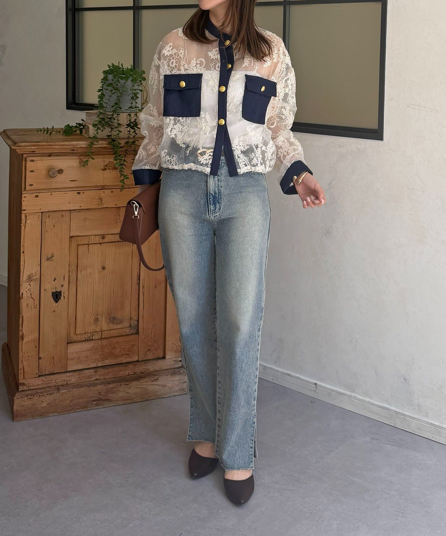 ・繊細レース×こなれデニムで甘すぎない、大人可愛い印象に