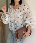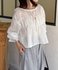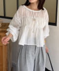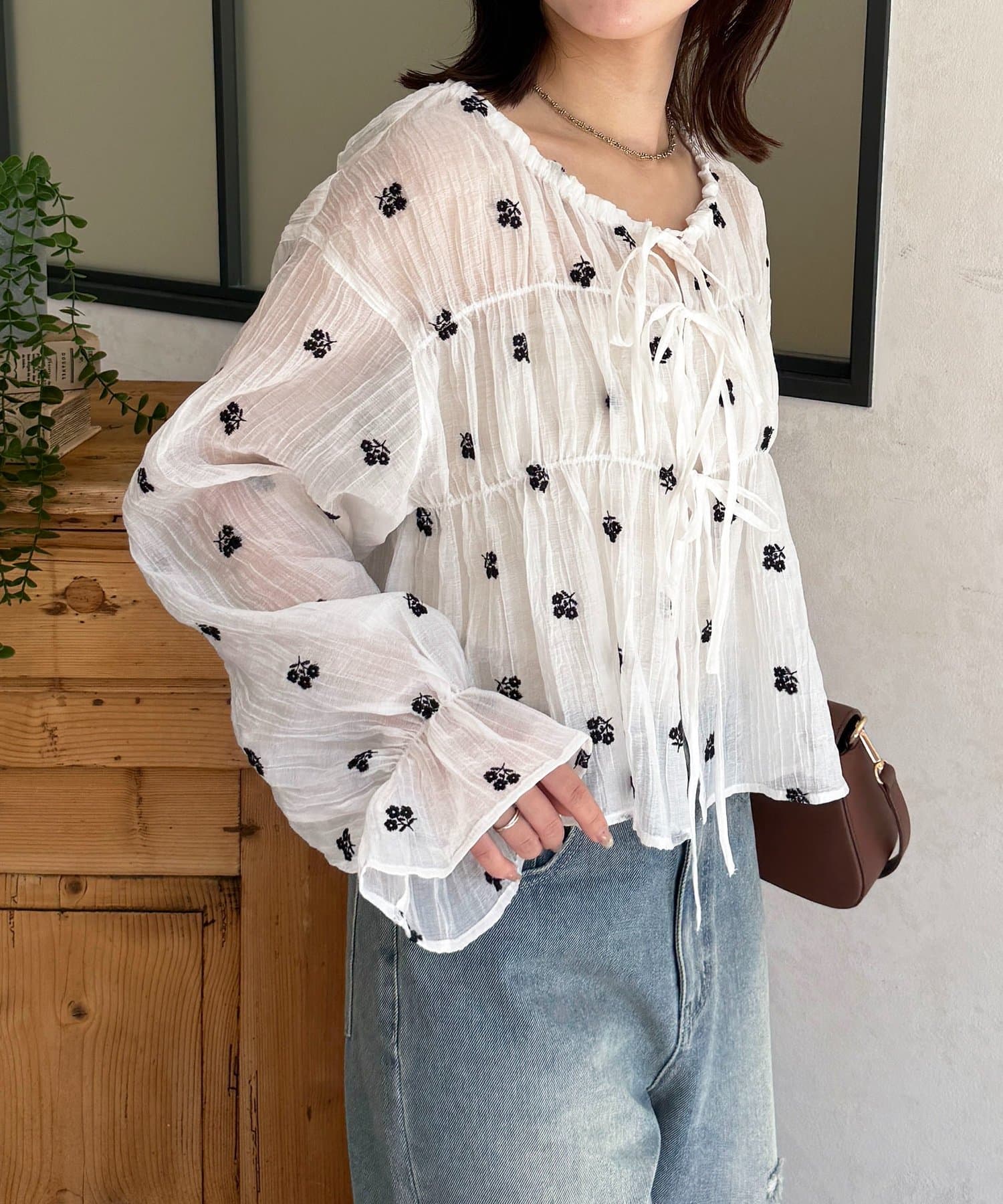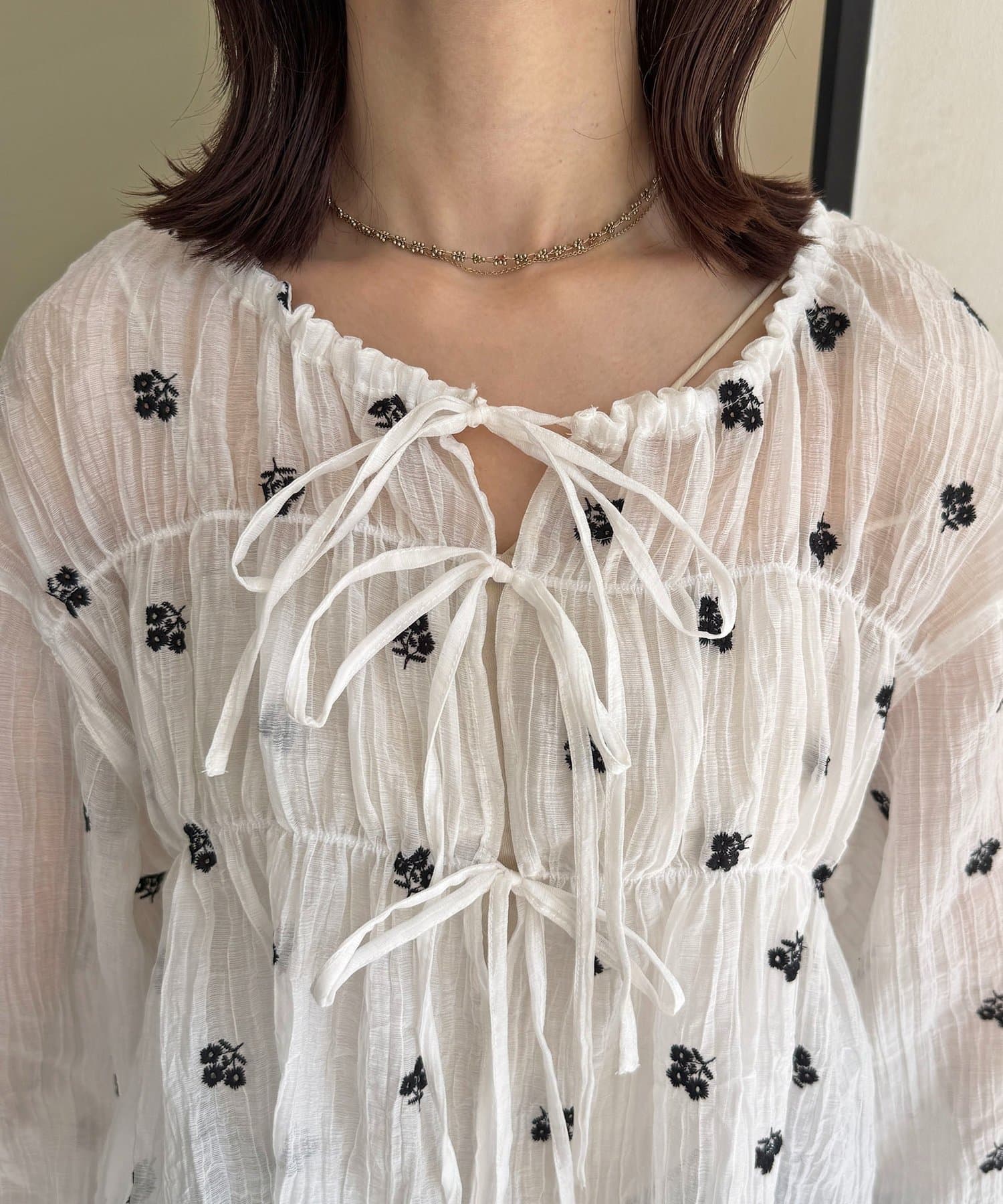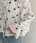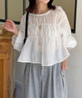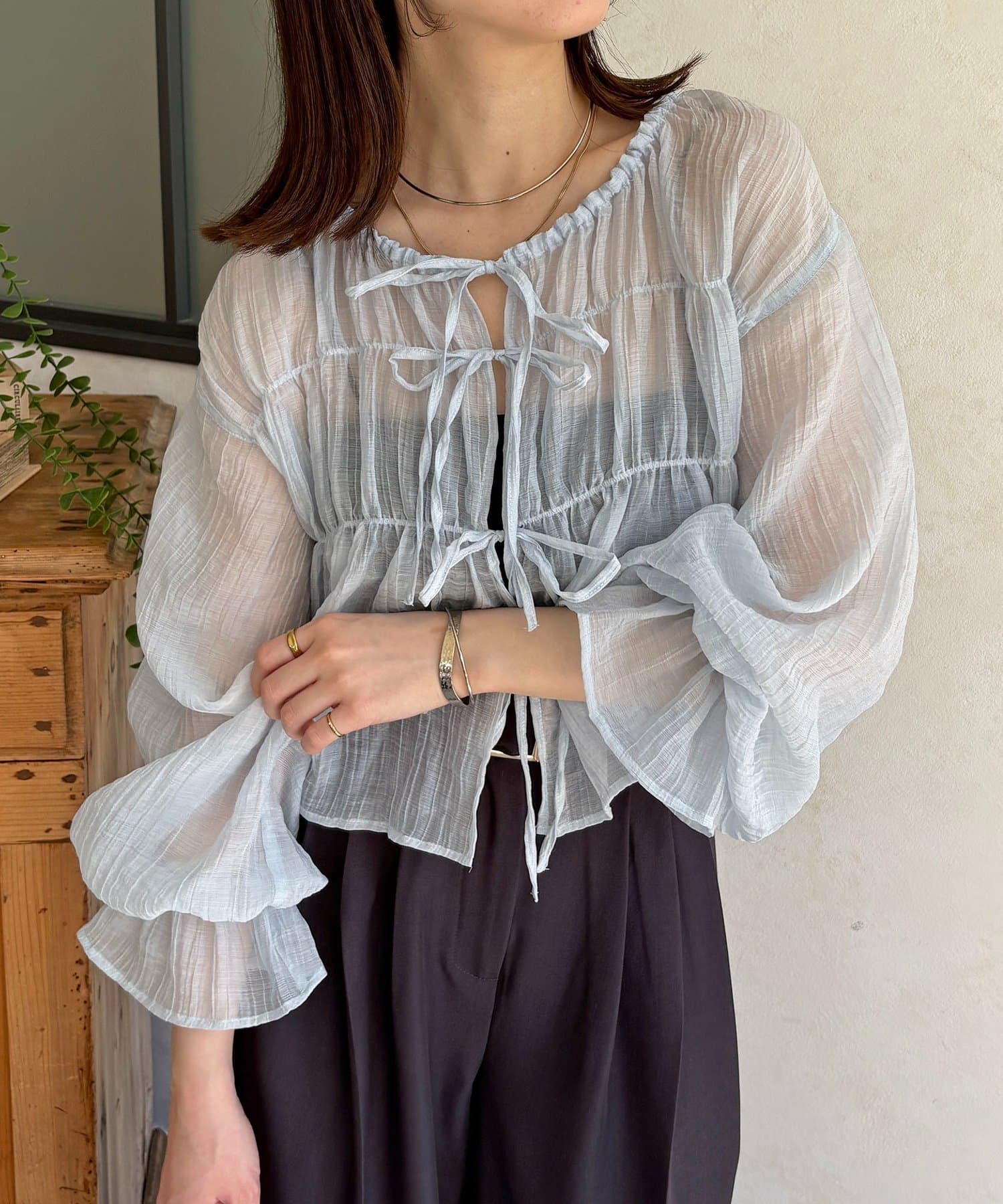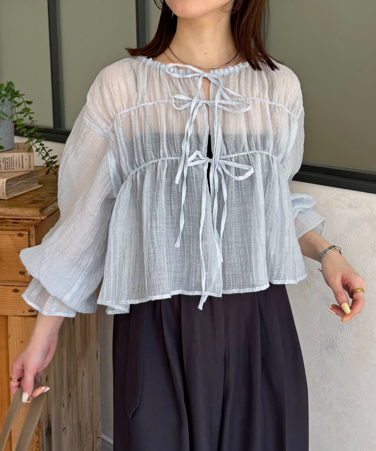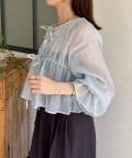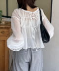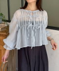 楊柳リボンシャーリングシアーブラウス