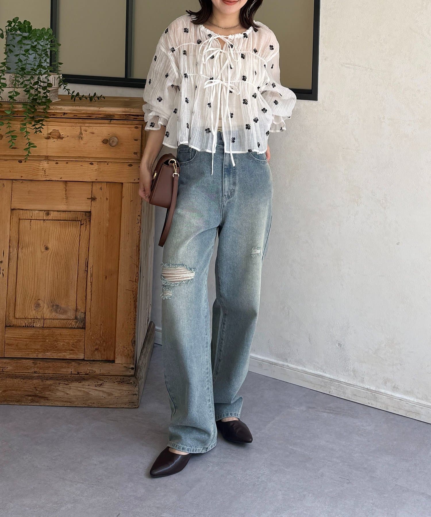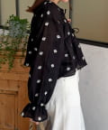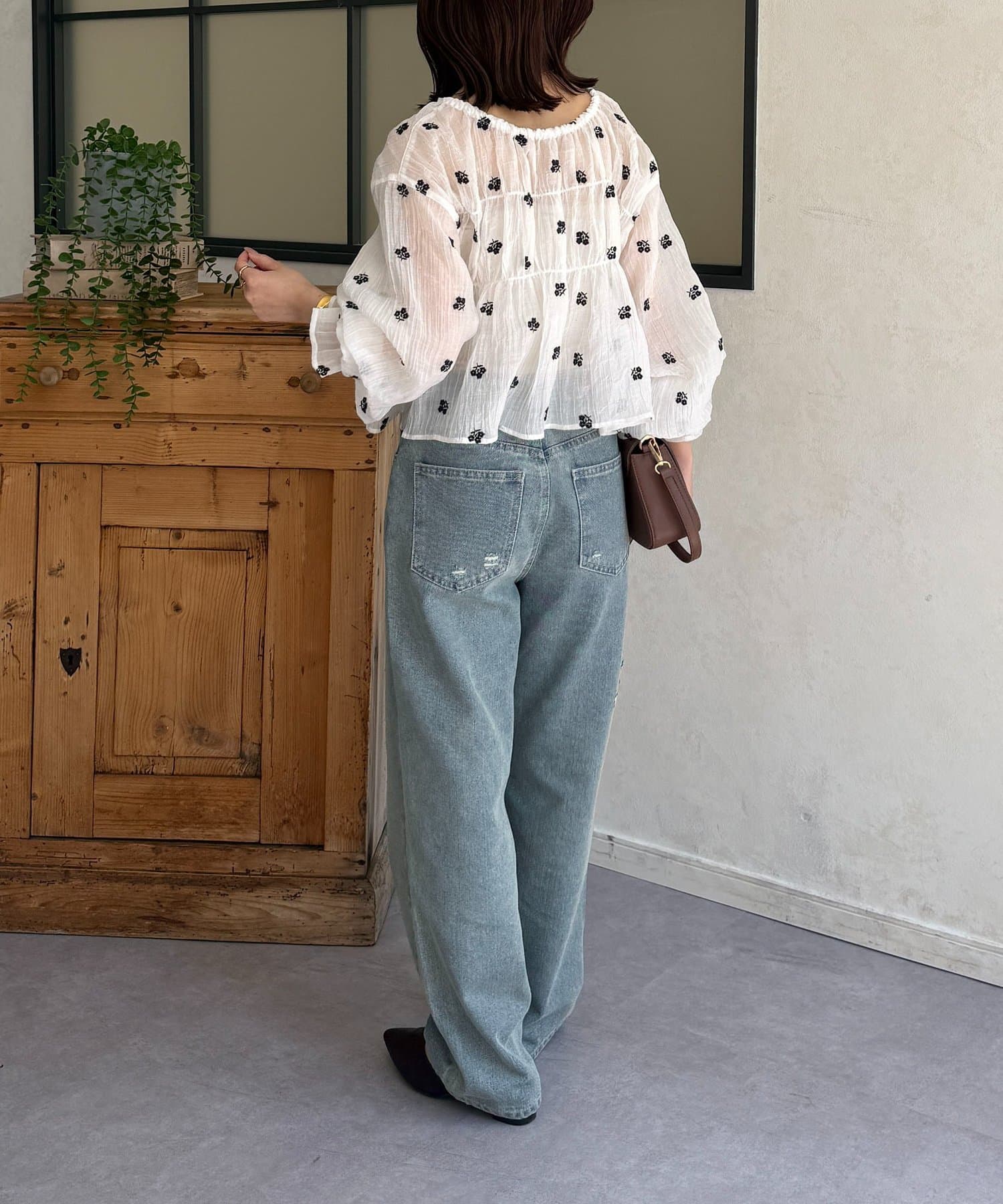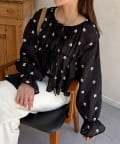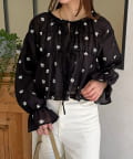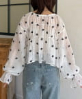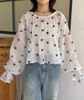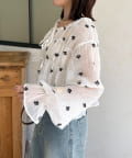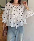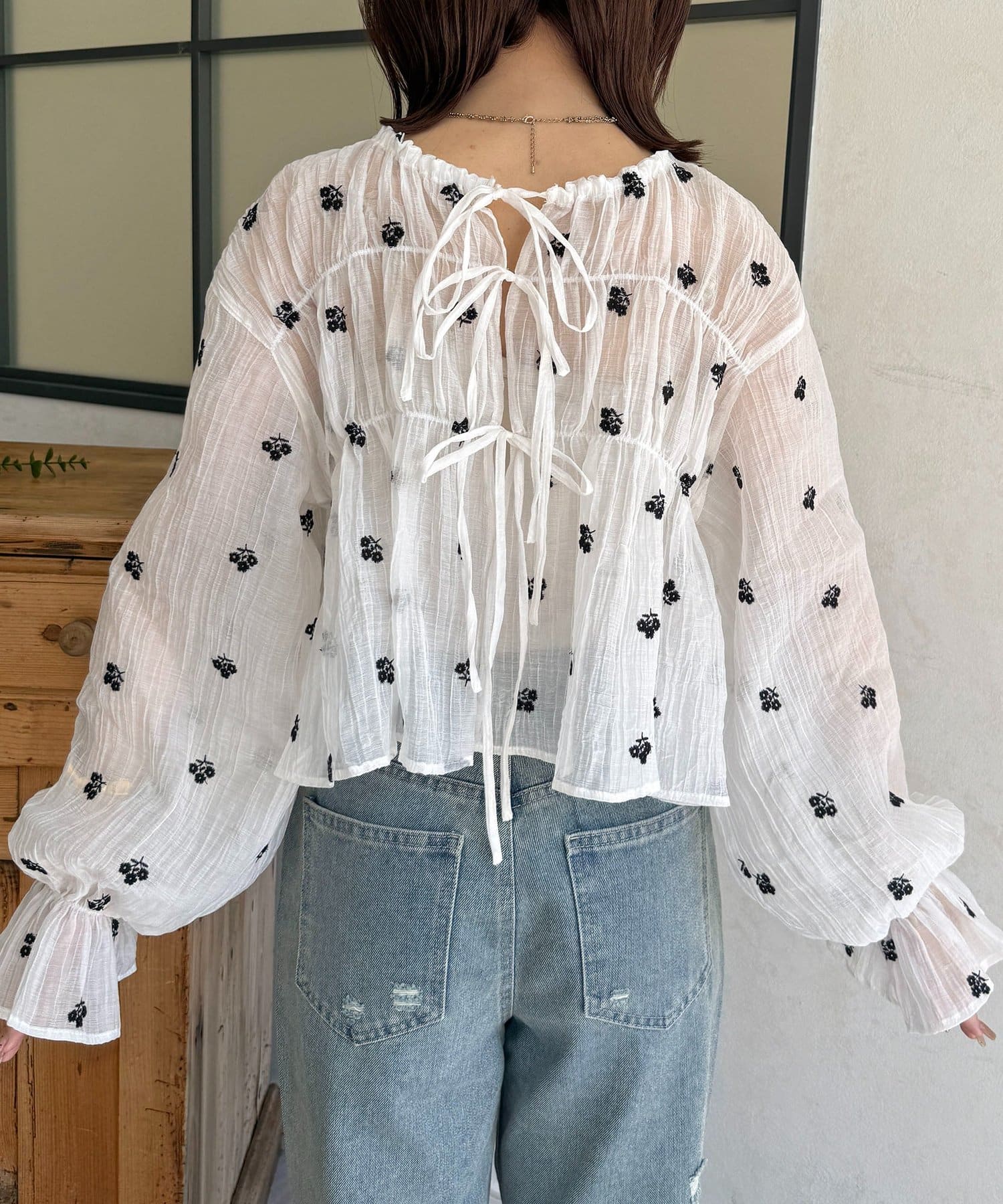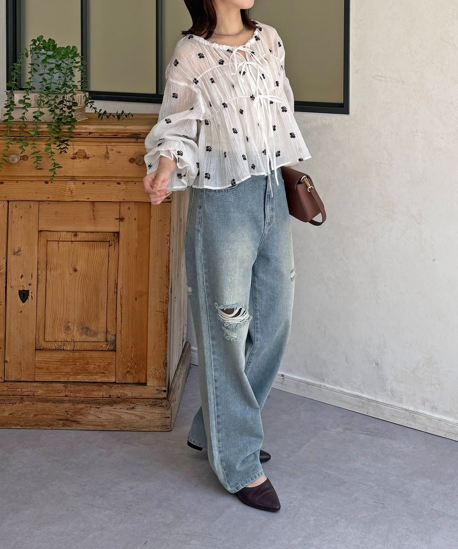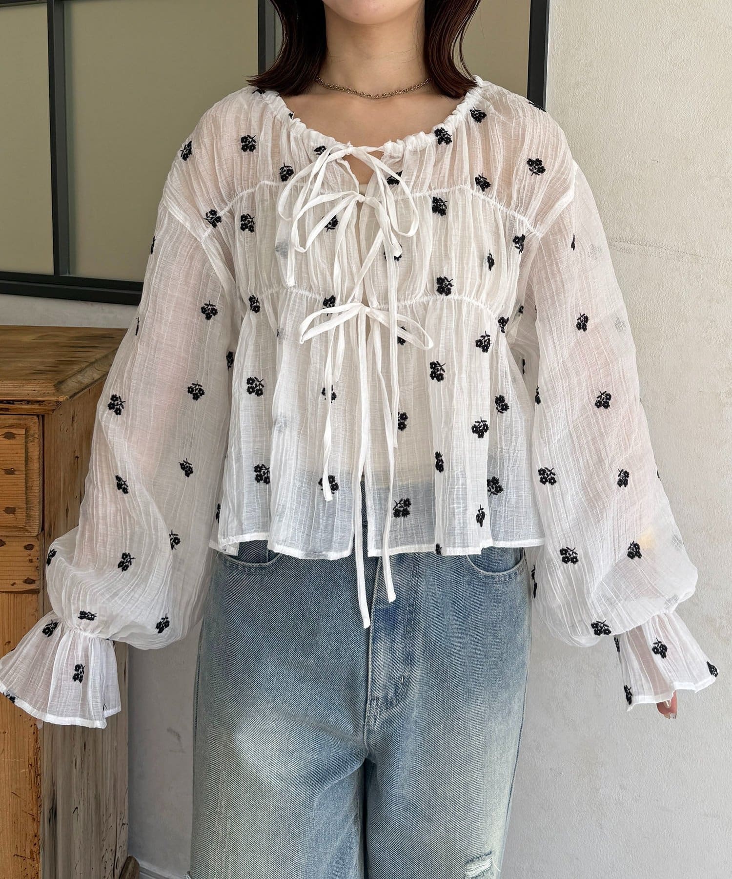 楊柳リボンシャーリングシアーブラウス