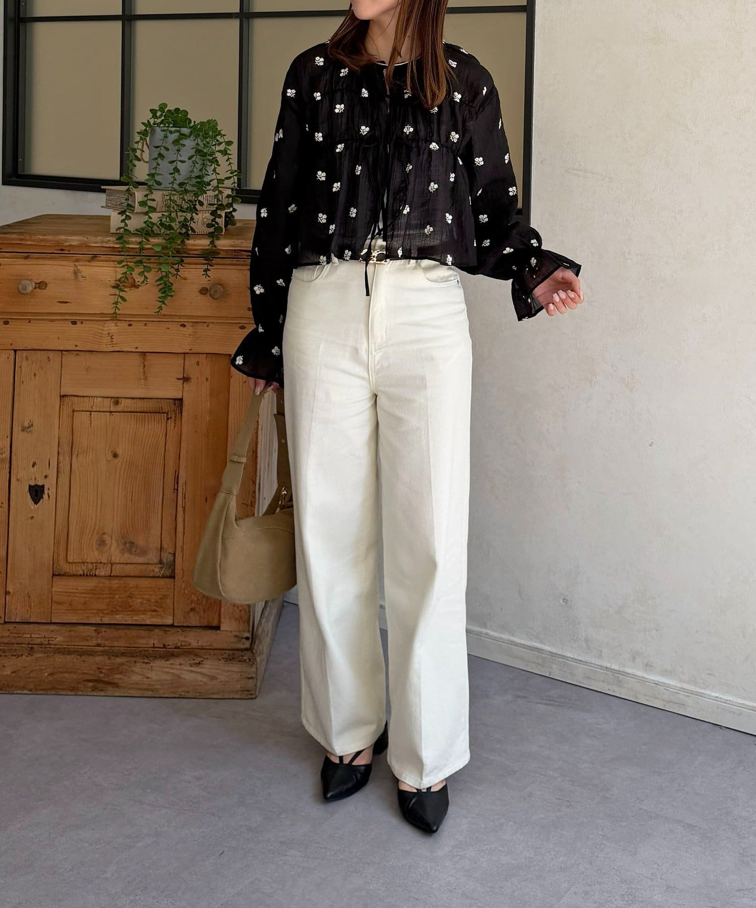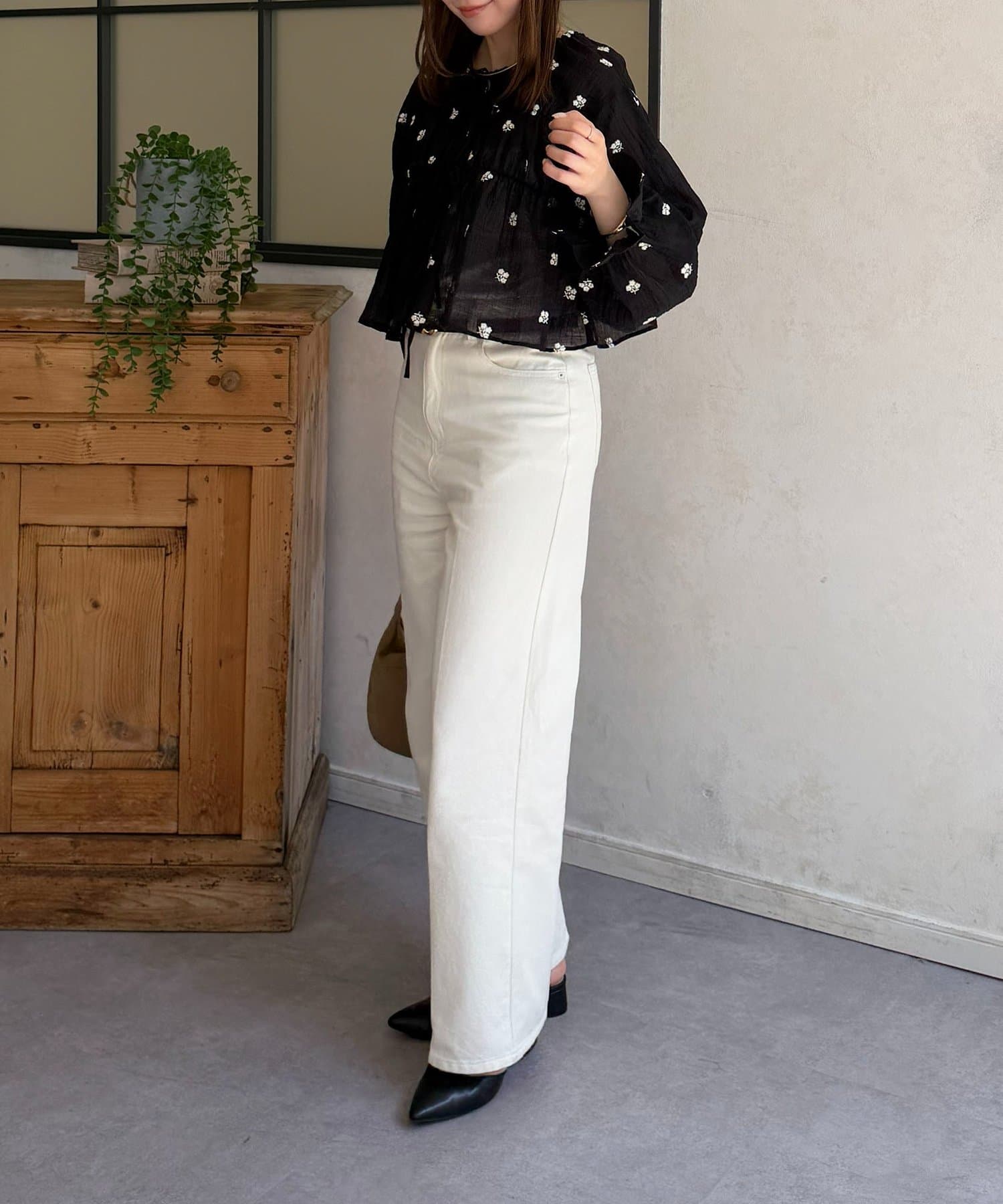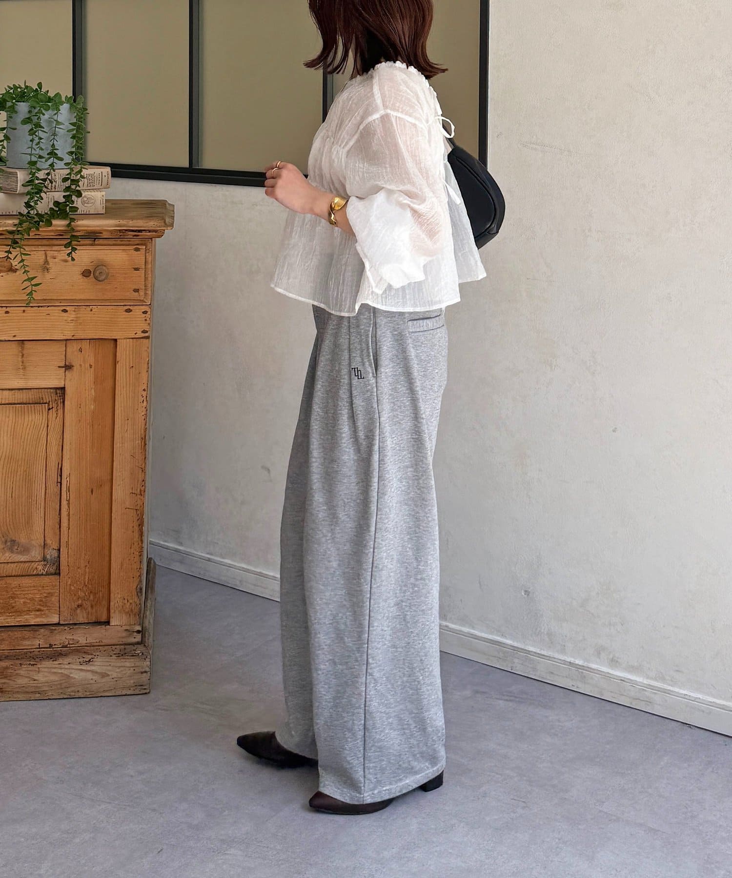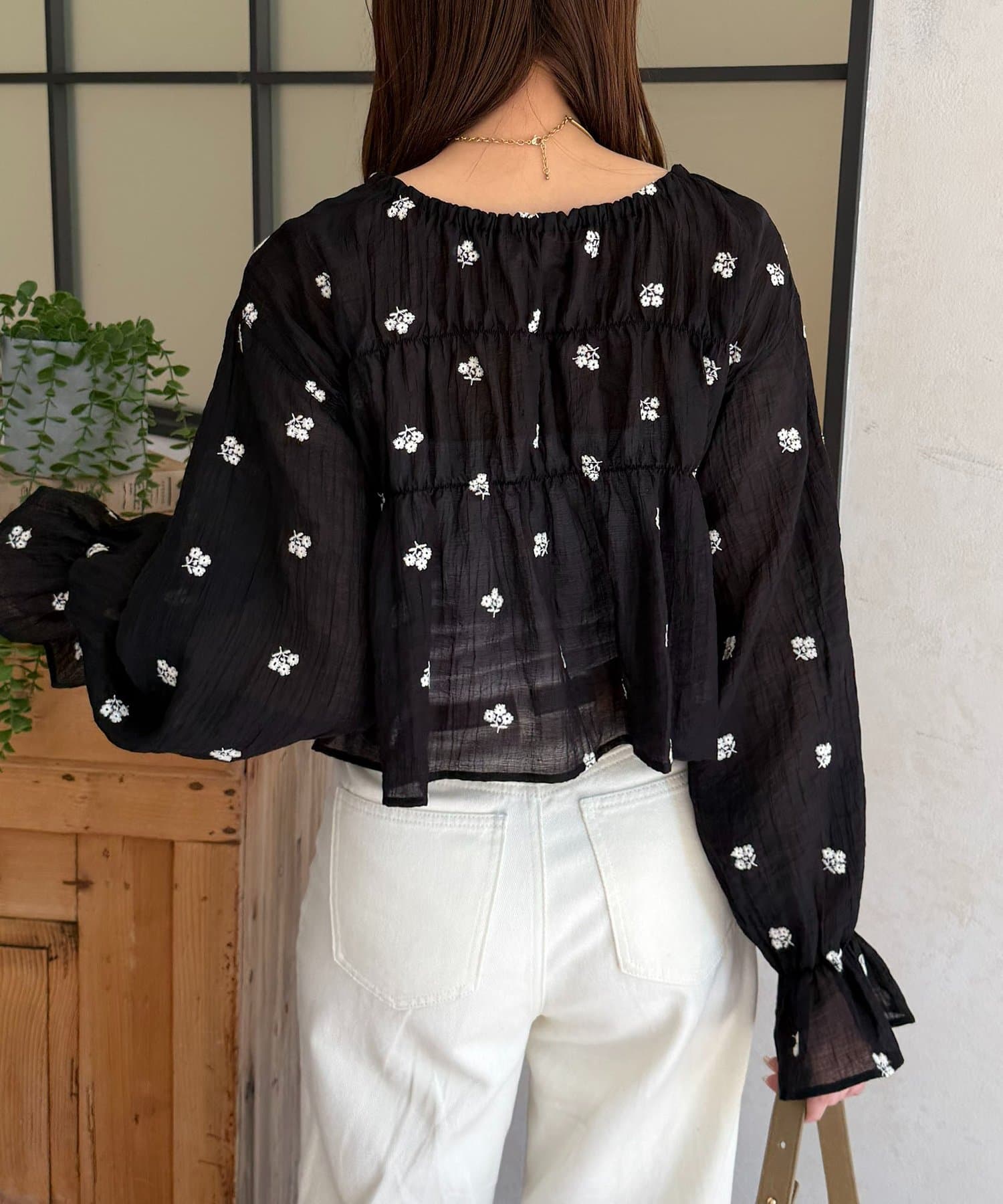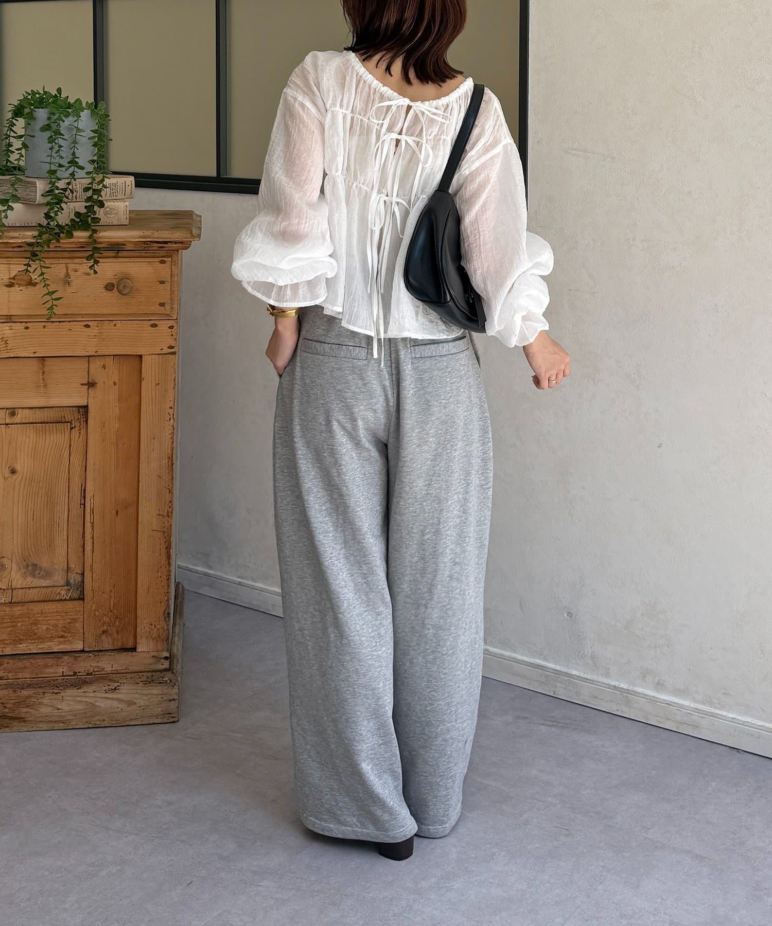 楊柳シアー素材が、動くたびにふわりと揺らめくブラウス