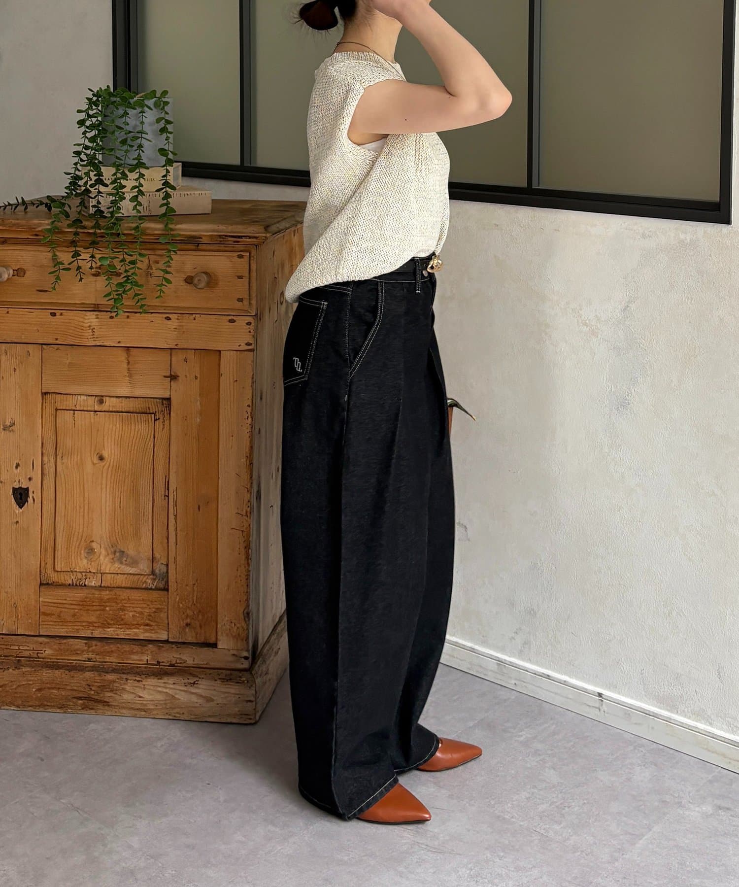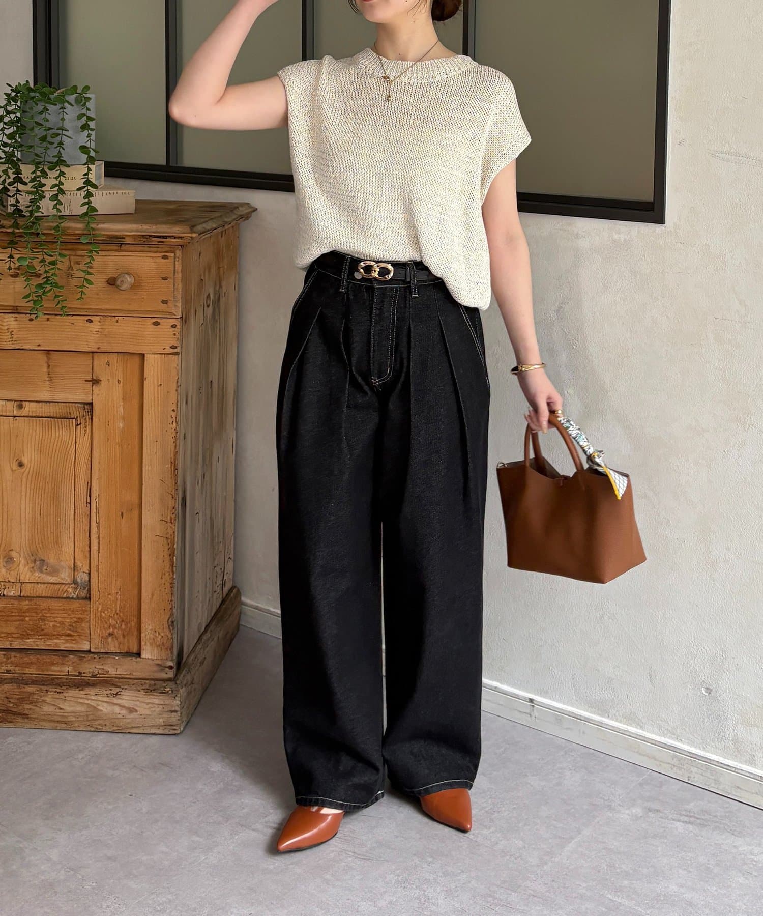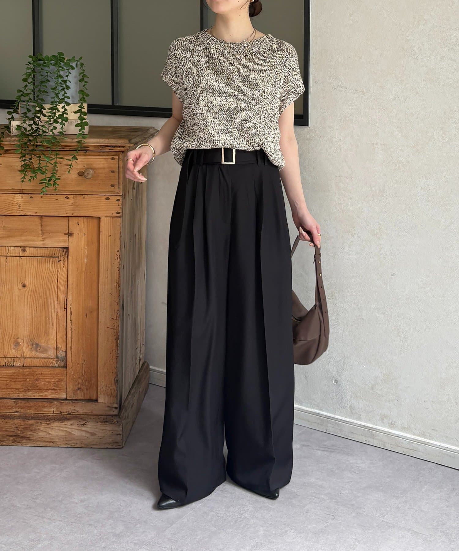 ・テーパードパンツと合わせて、できる女性を演出。