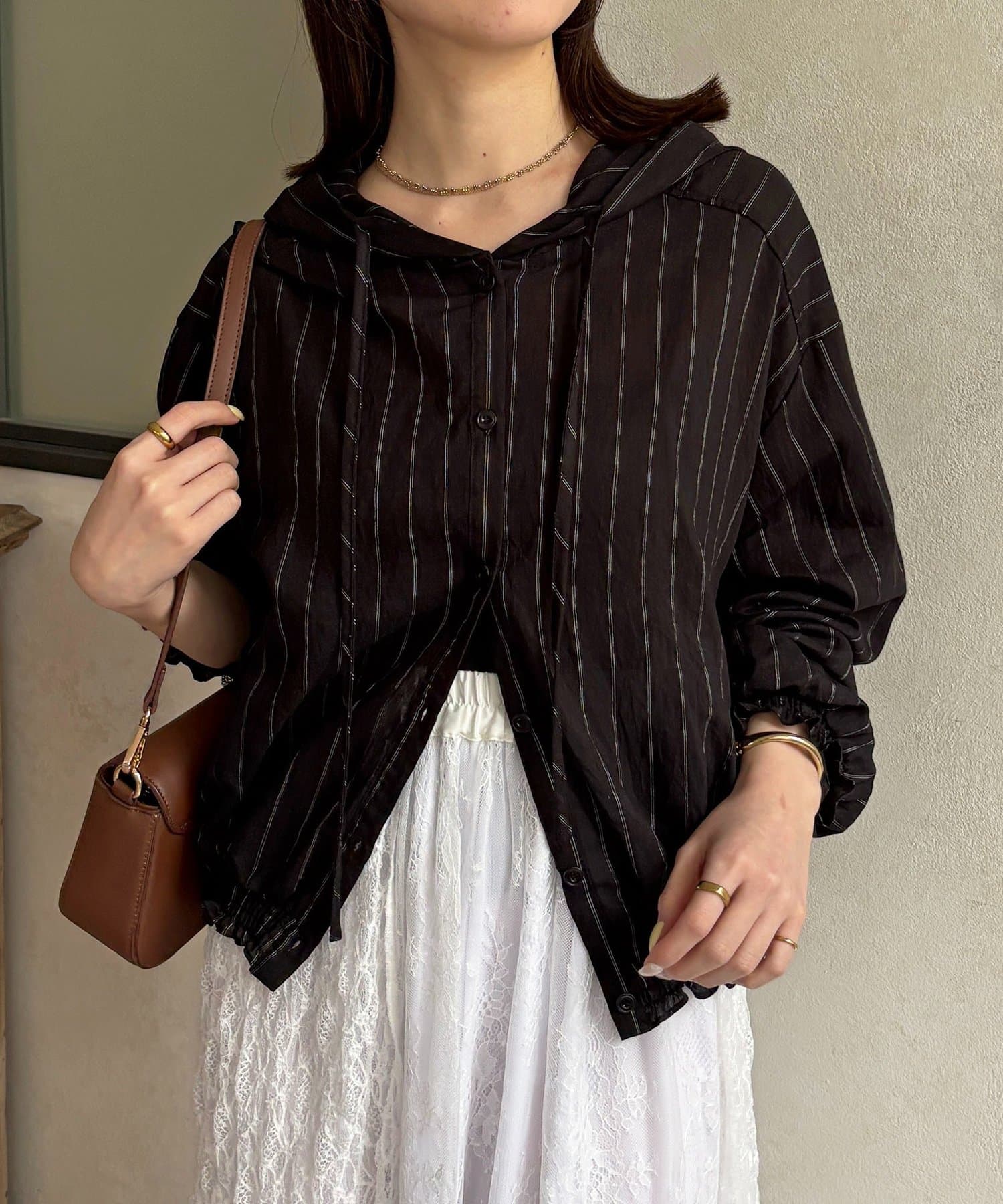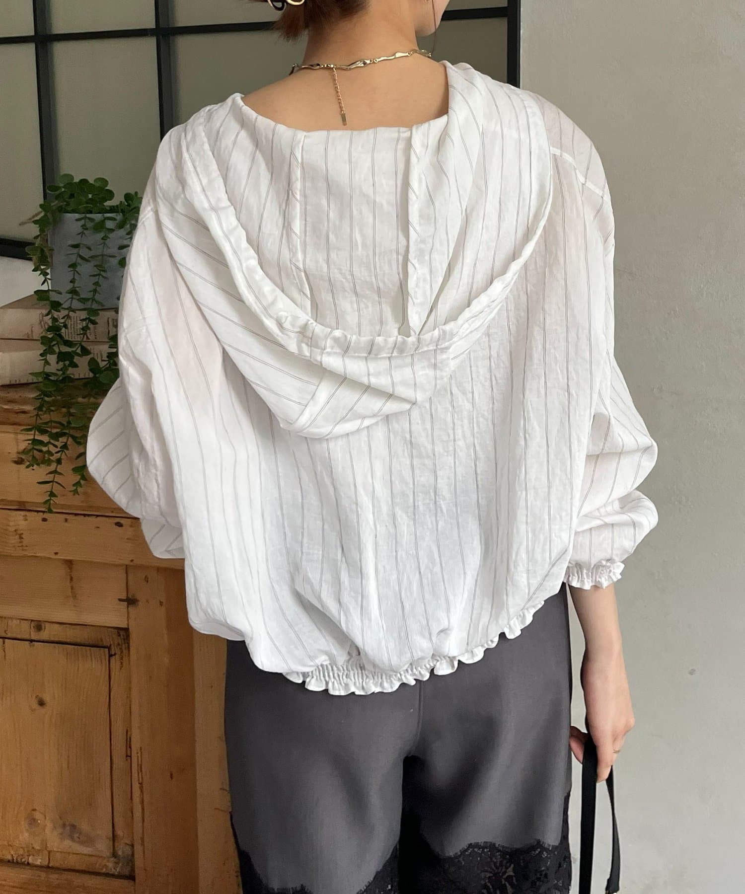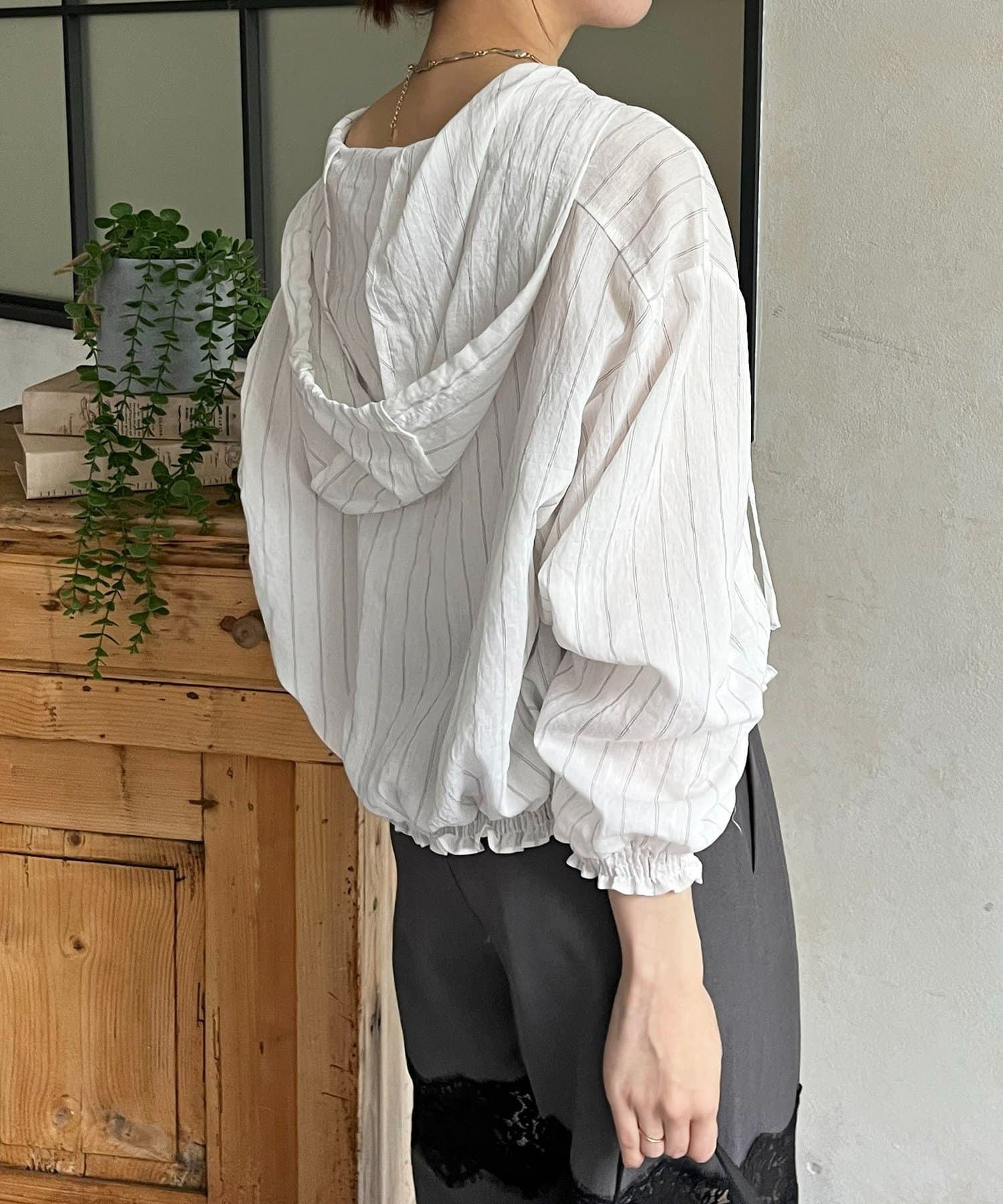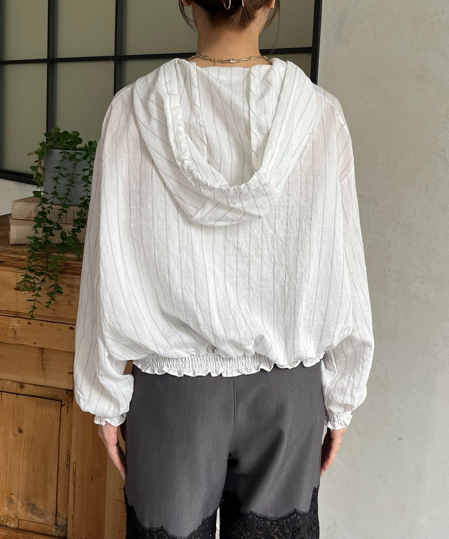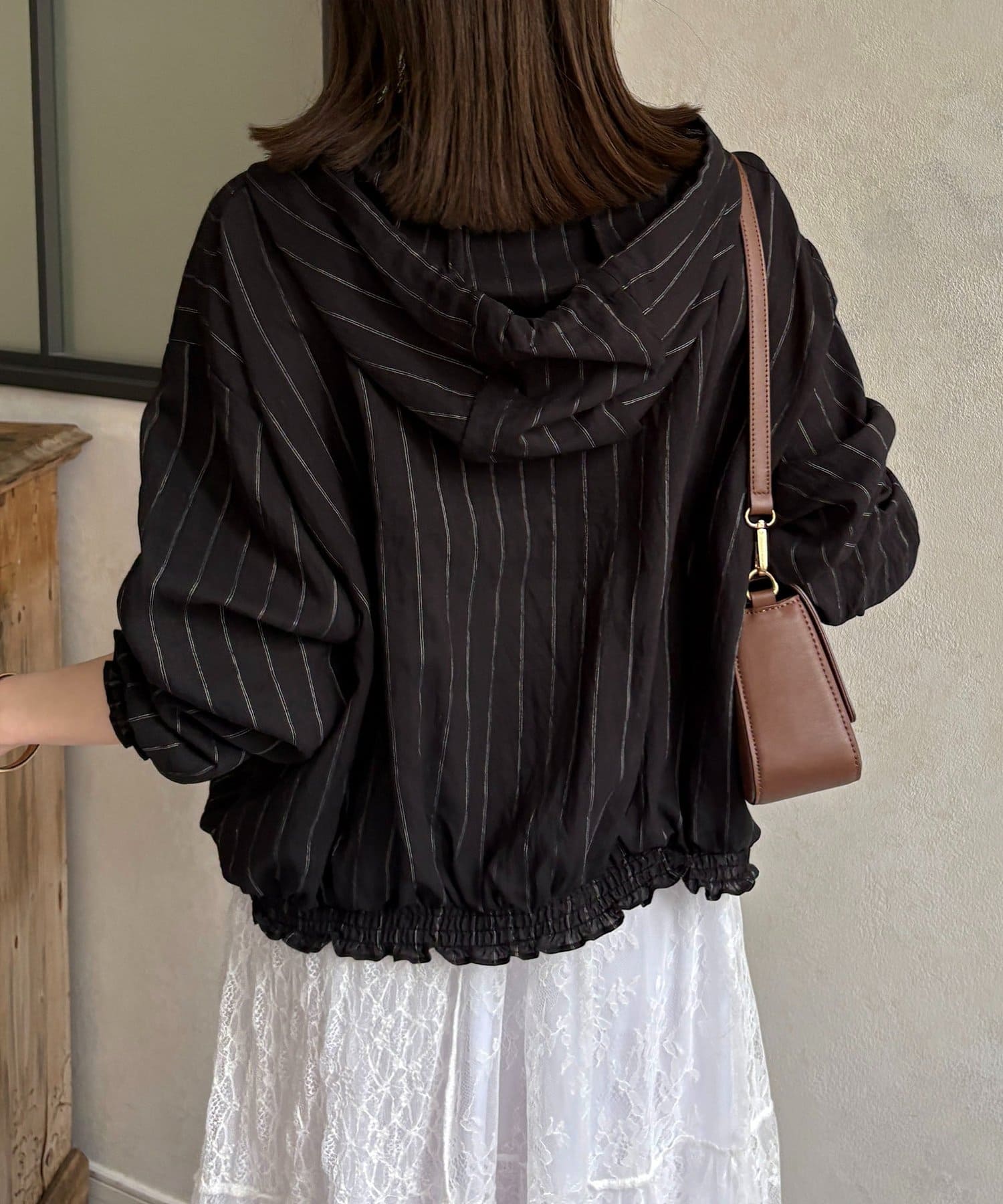 抜け感ストライプで大人のこなれ感フーディーブルゾン
