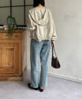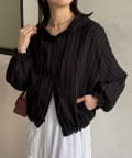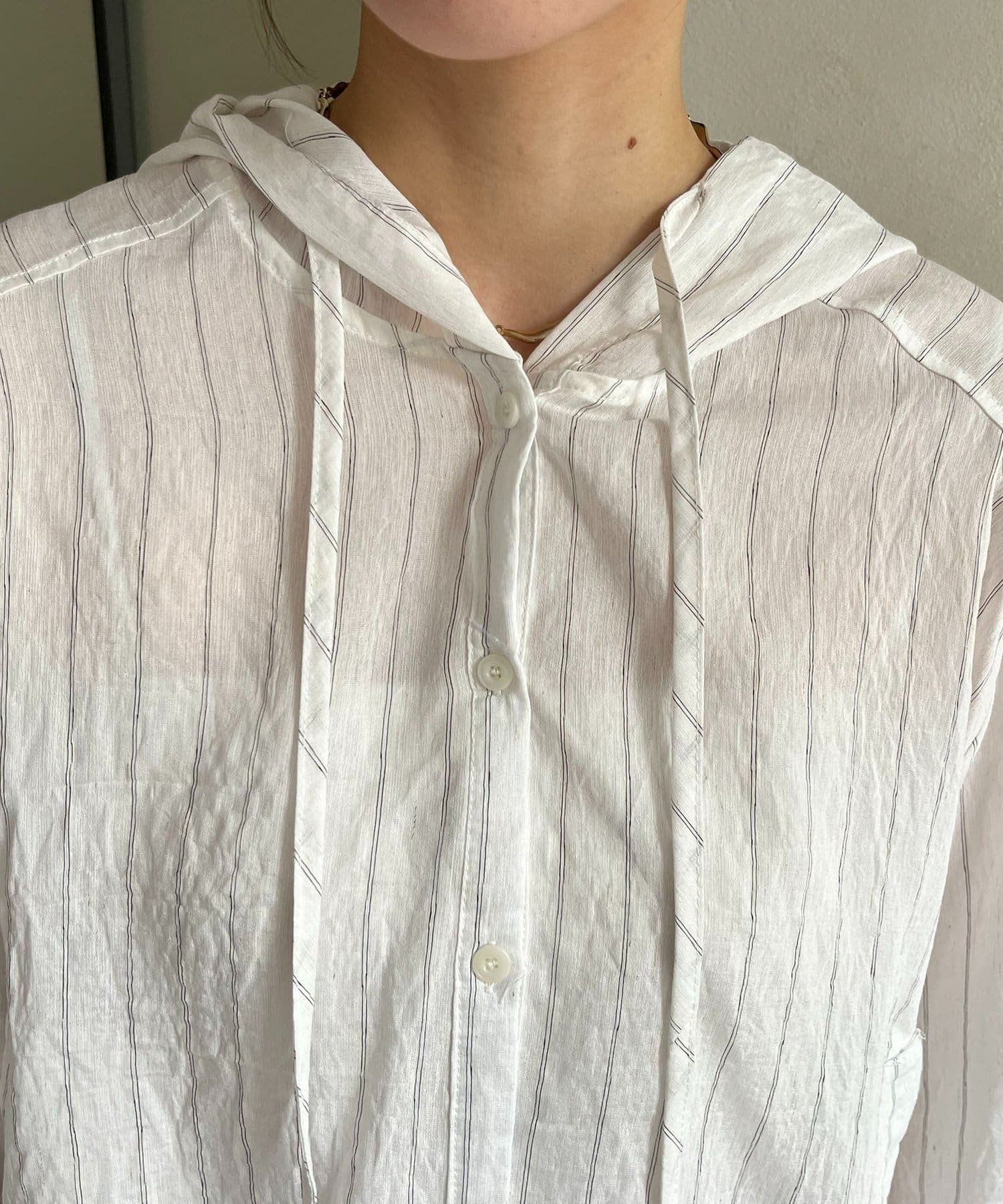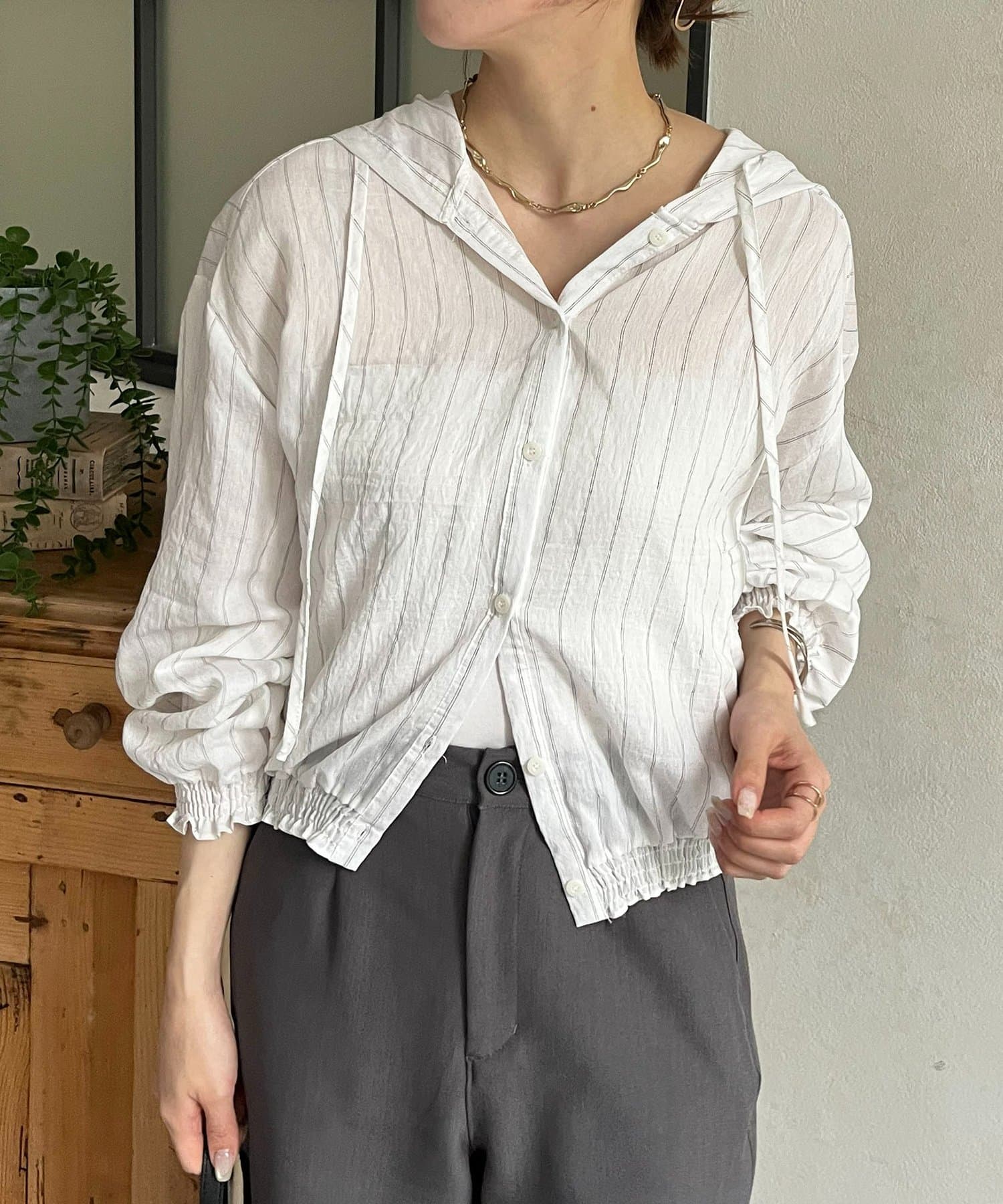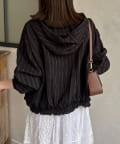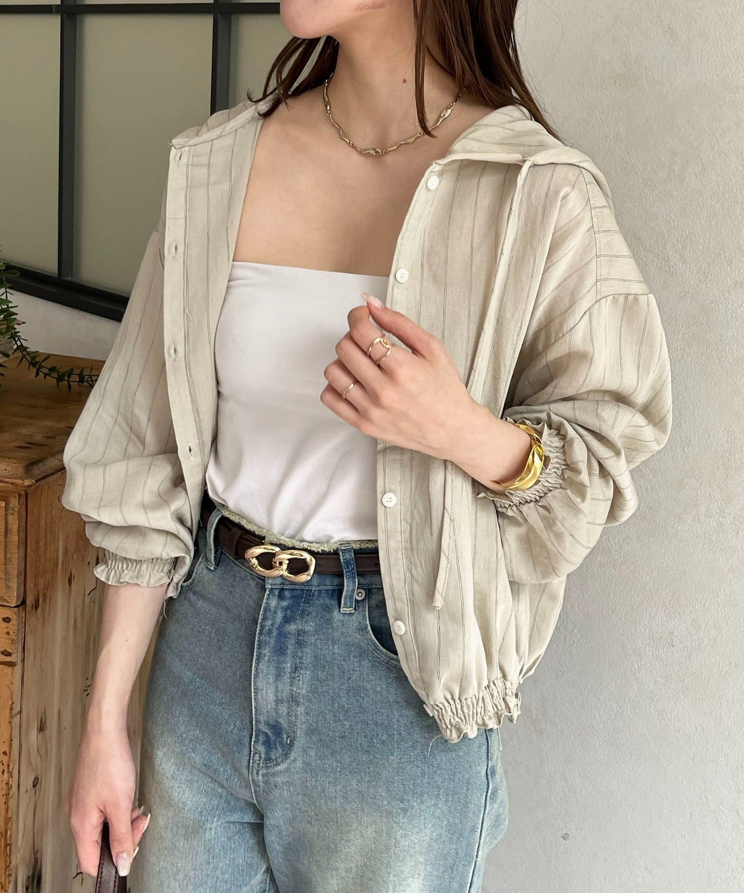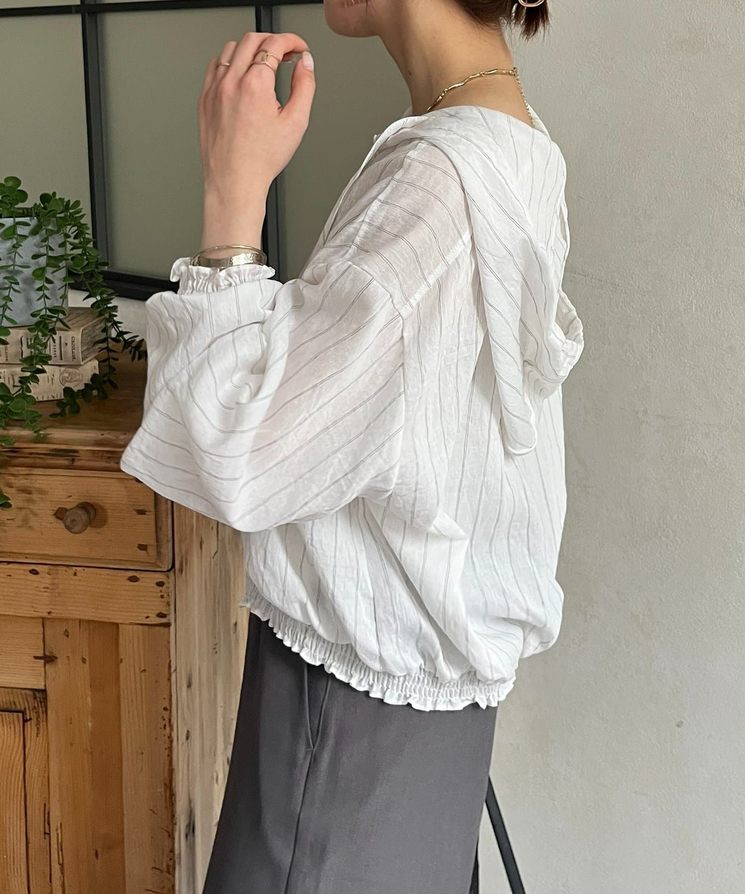 抜け感ストライプで大人のこなれ感フーディーブルゾン