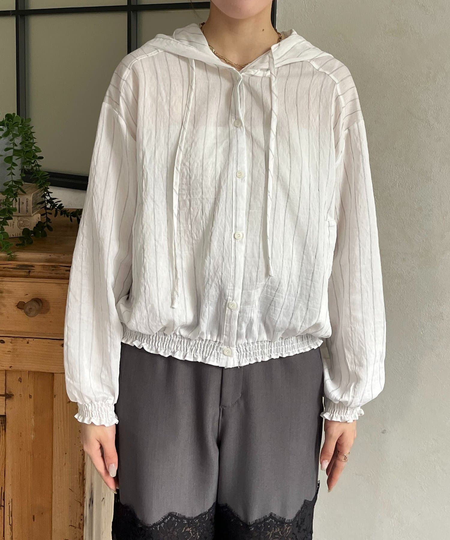 TOP > Thevon. > レディース > ジャケット/アウター > その他ジャケット/ブルゾン > ストライプ柄フーディーブルゾン