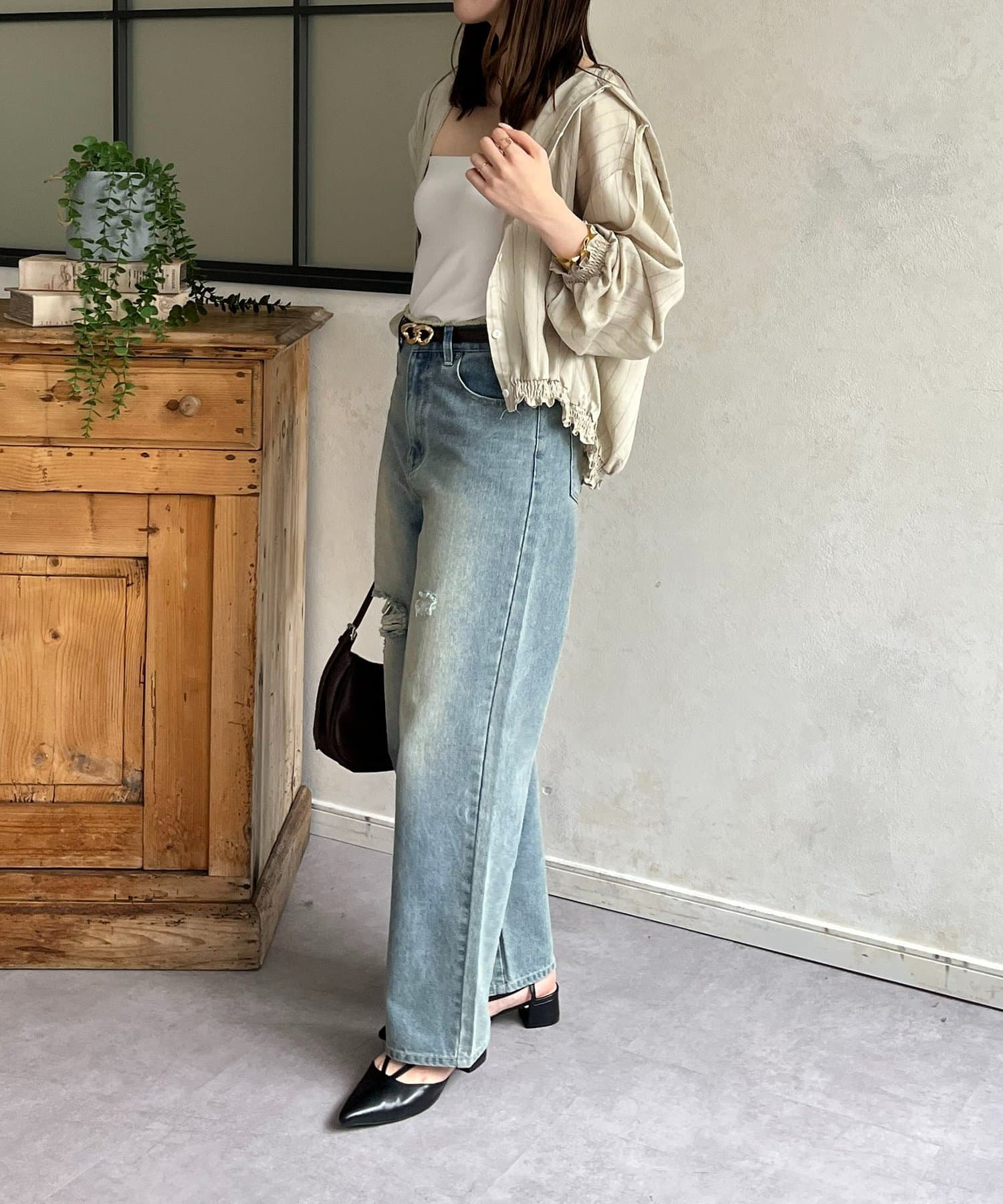 ・タンクトップに羽織って、ヘルシーな肌見せスタイルに。