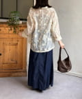 ・シアー感のあるブラウスを合わせて、上品な印象に。