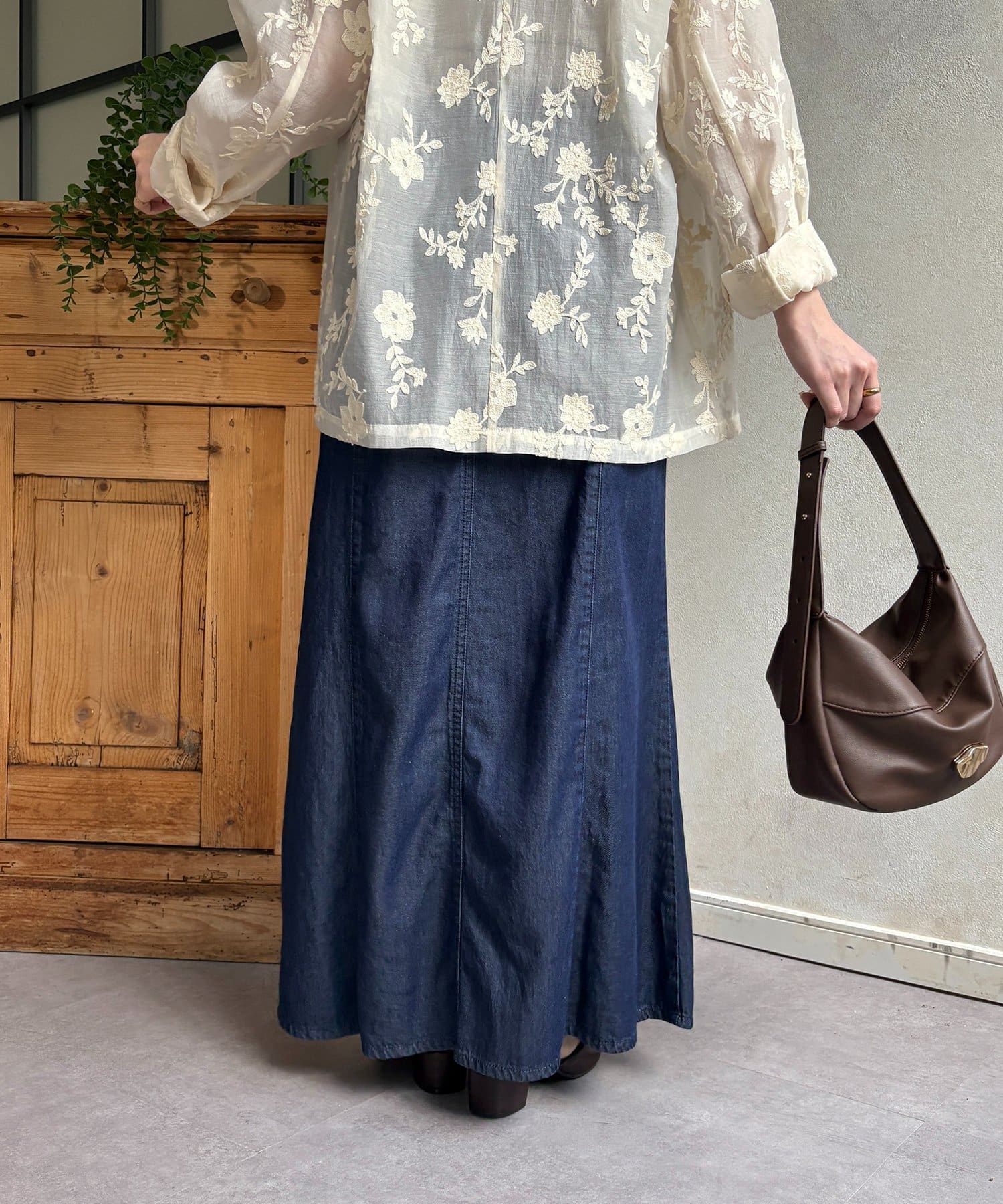 ・上品なマーメイドラインを、軽やかなライトデニムでカジュアルダウン