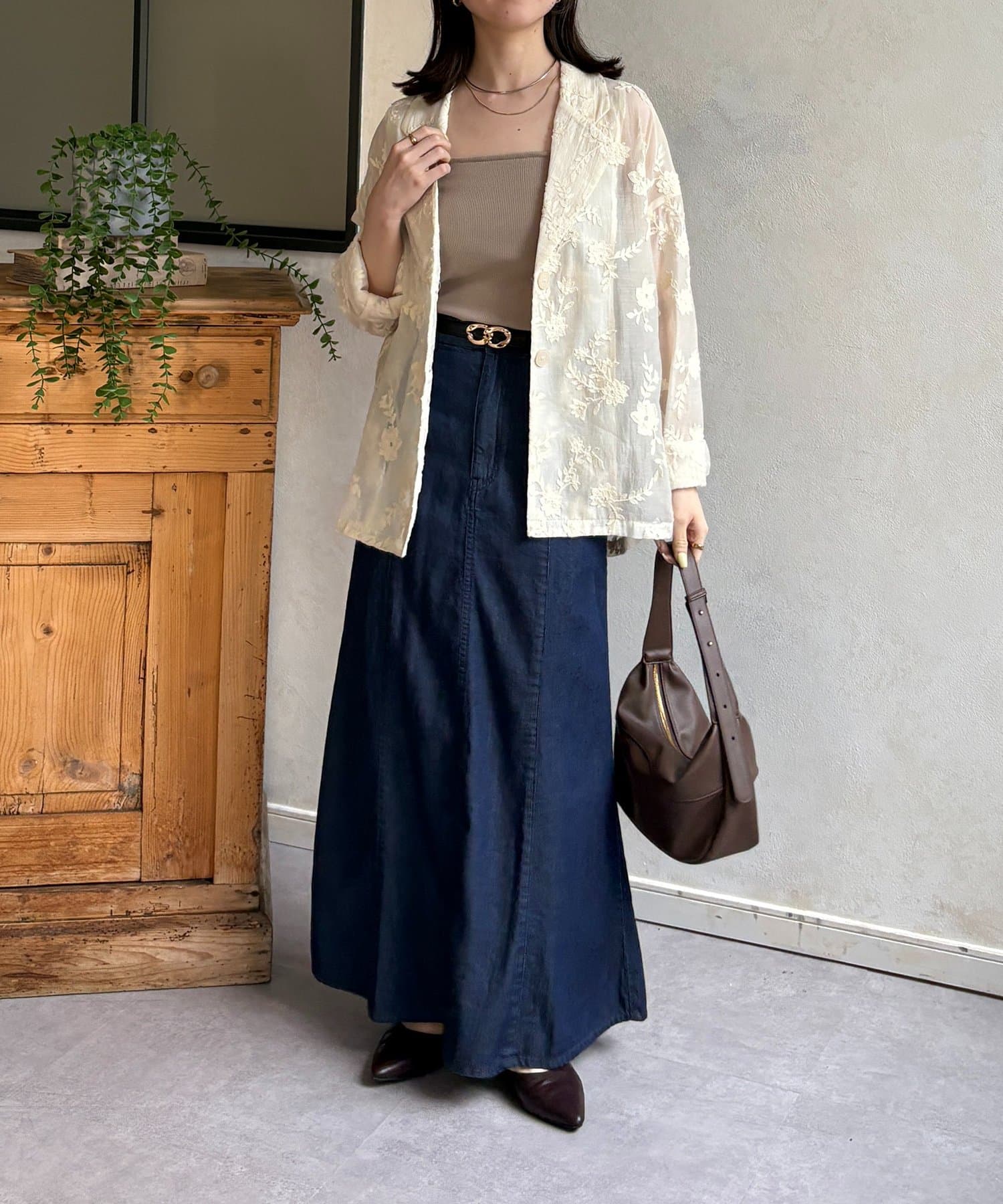 デニム×マーメイドスカートで甘すぎない、大人の可愛らしさを演出