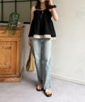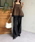・シアートップスと合わせて、トレンド感溢れるスタイリングに。