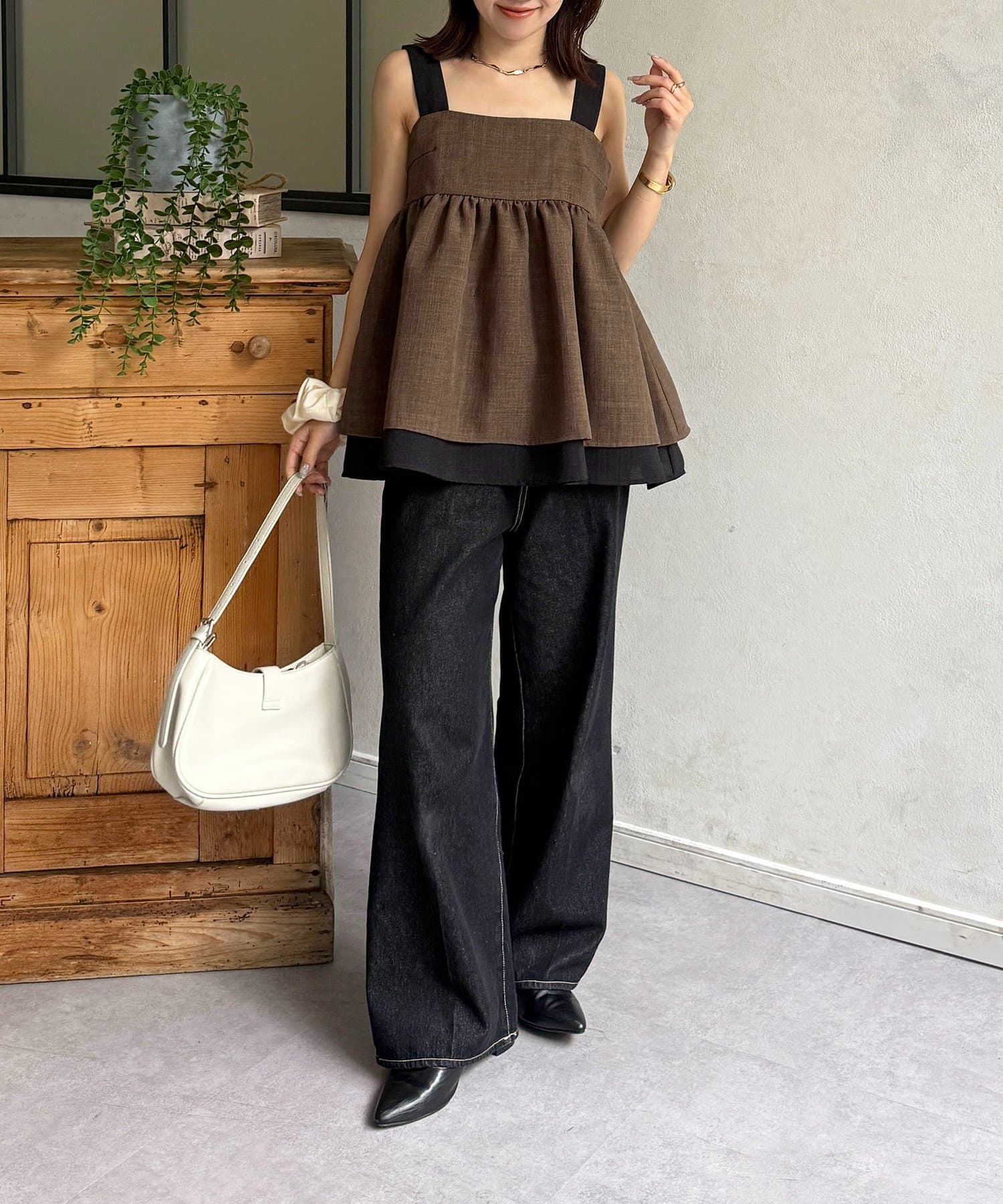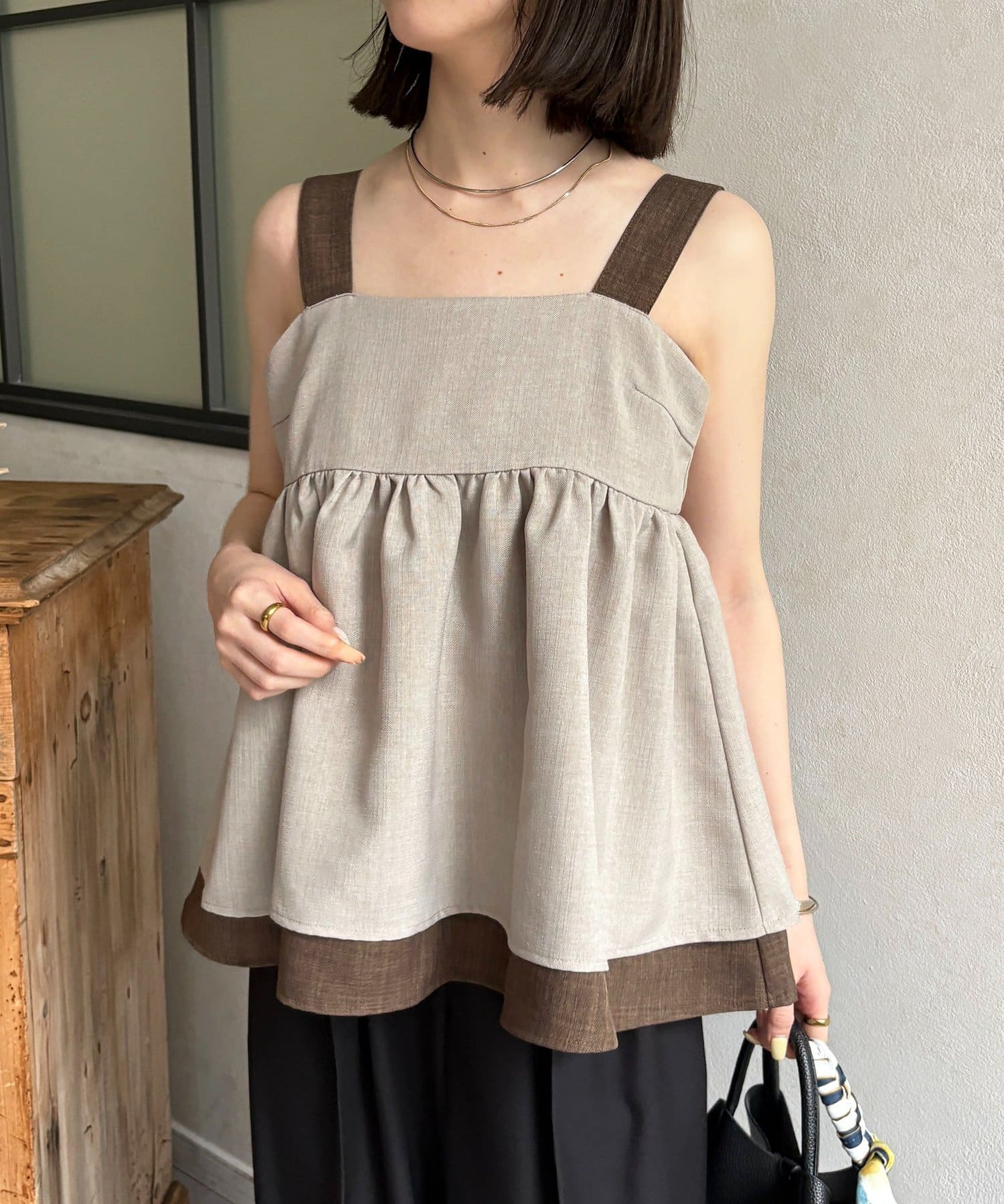 バイカラーデザインが目を惹くこなれキャミチュニック