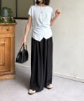 ・淡いカラーのプリーツスカートと合わせて、フェミニンで軽やかなスタイリングに。