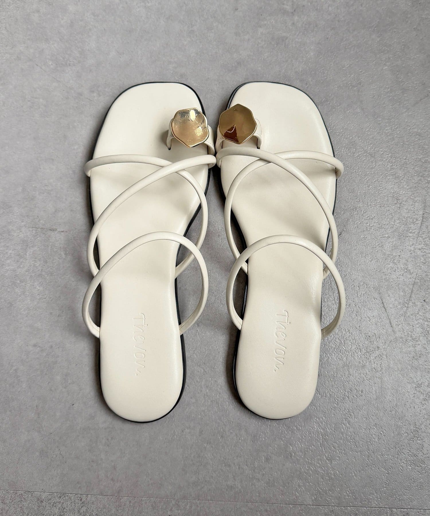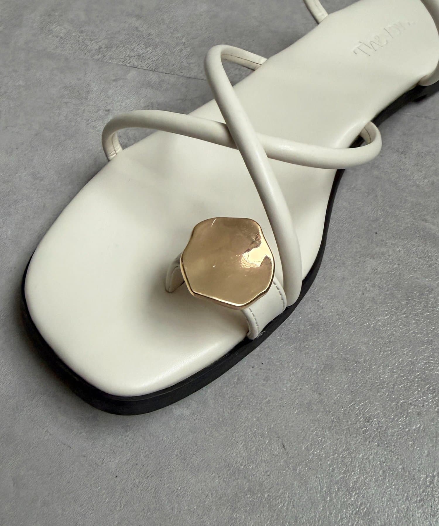 ニュアンスパーツが洗練された足元を演出するトングサンダル