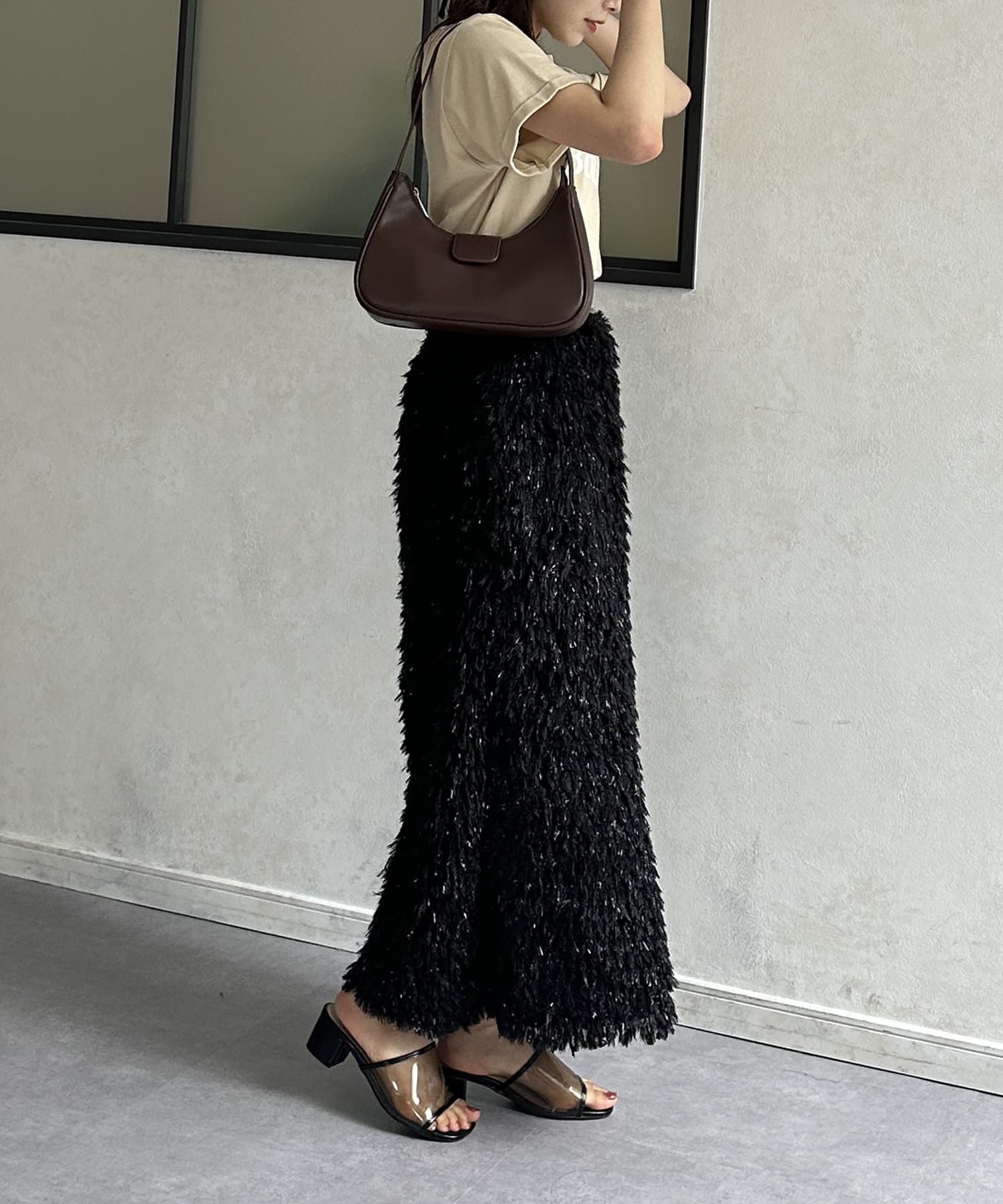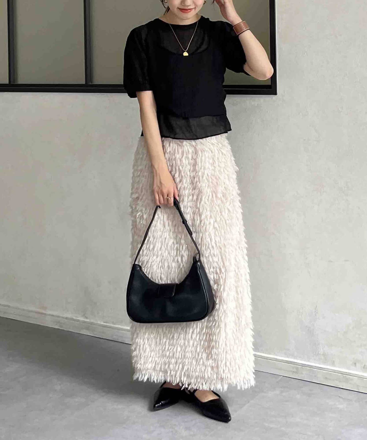 トレンドのハーフムーンがコーデにこなれ感をプラス