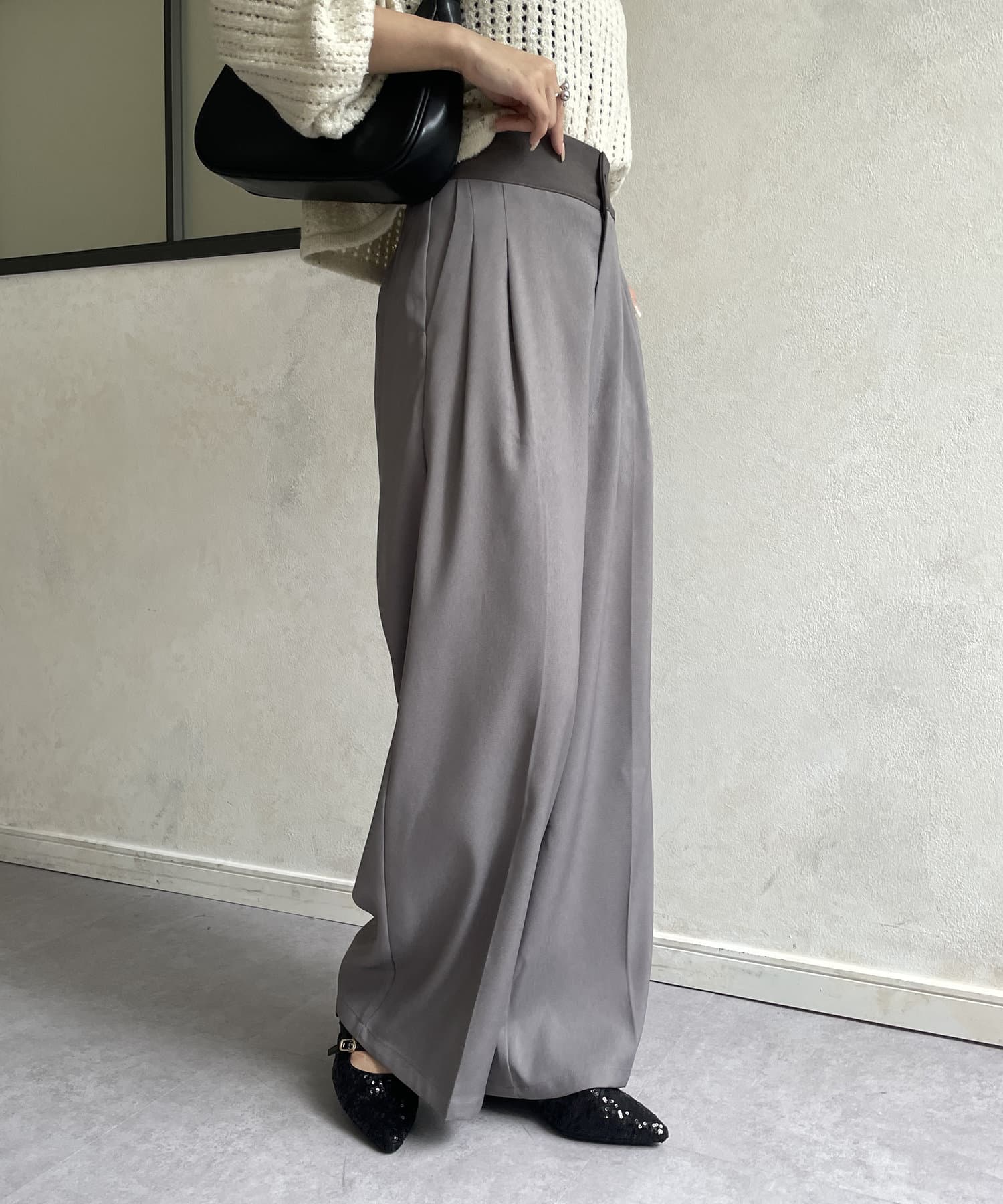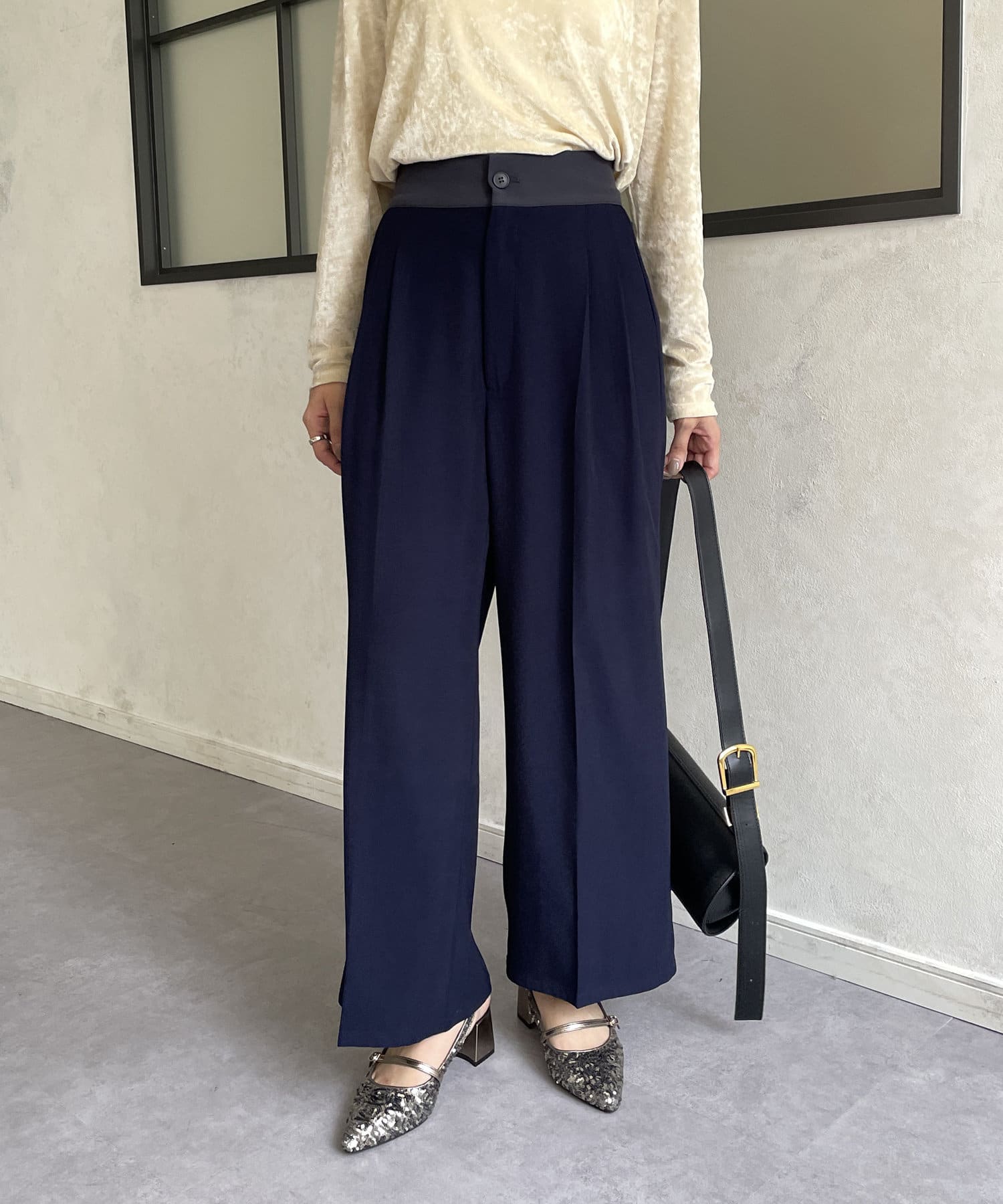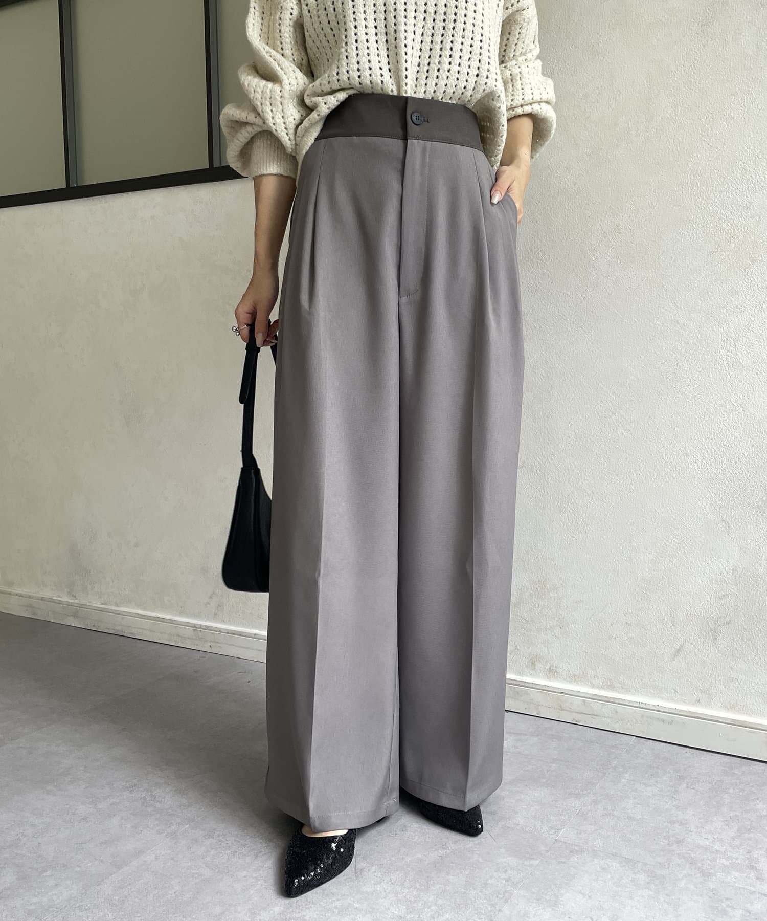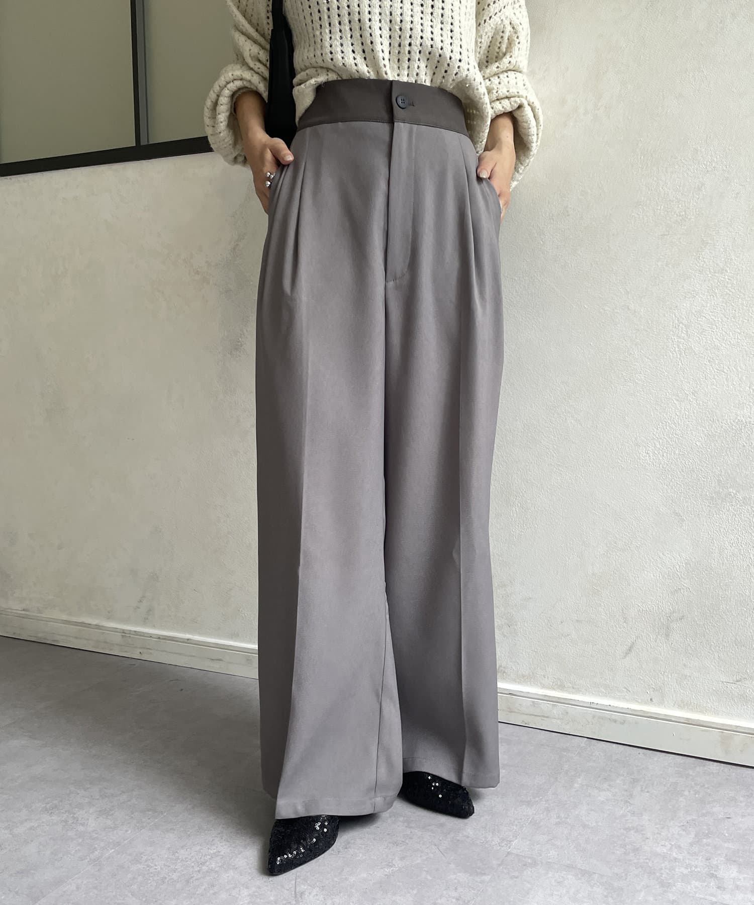 ウエスト配色タックパンツ