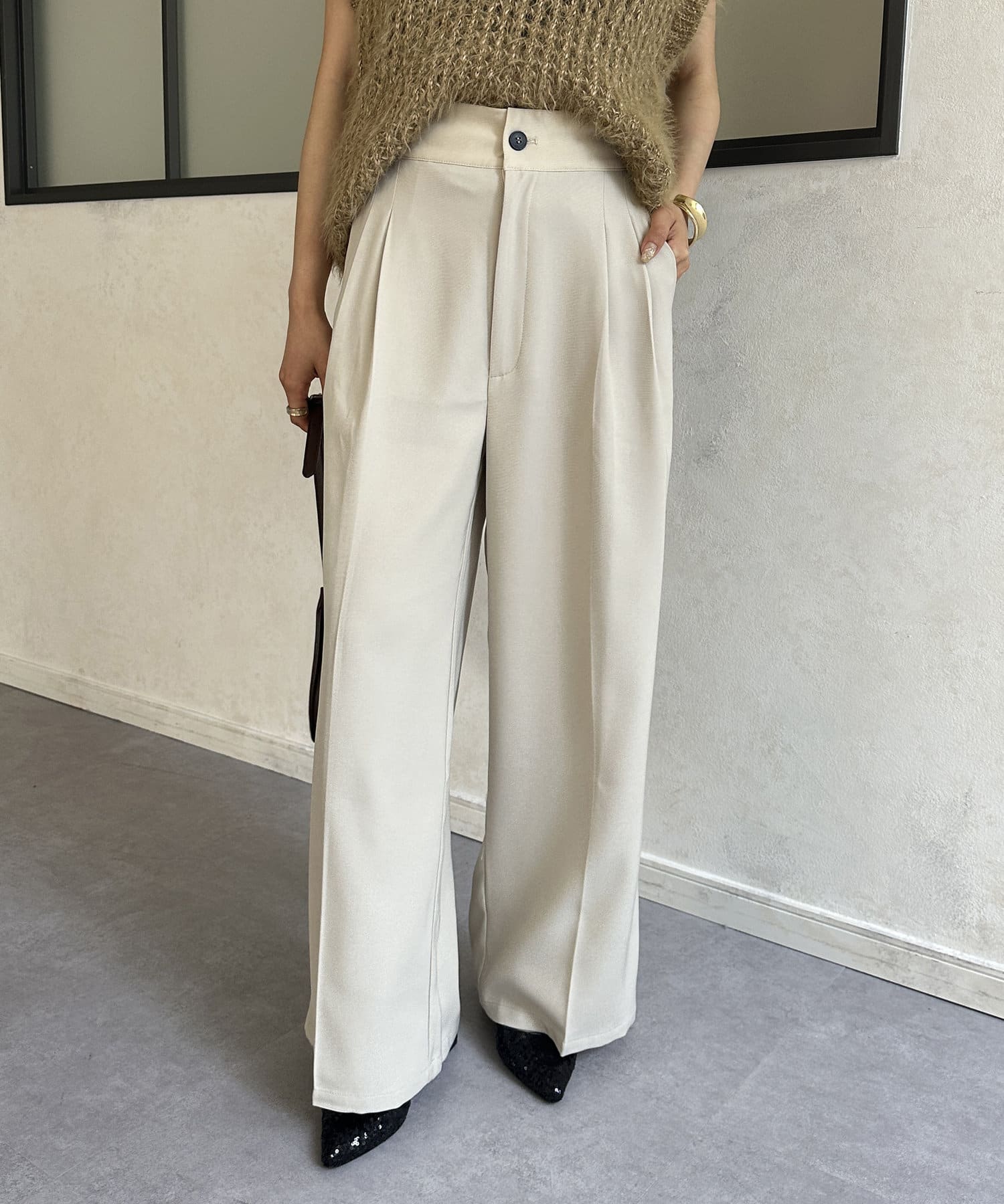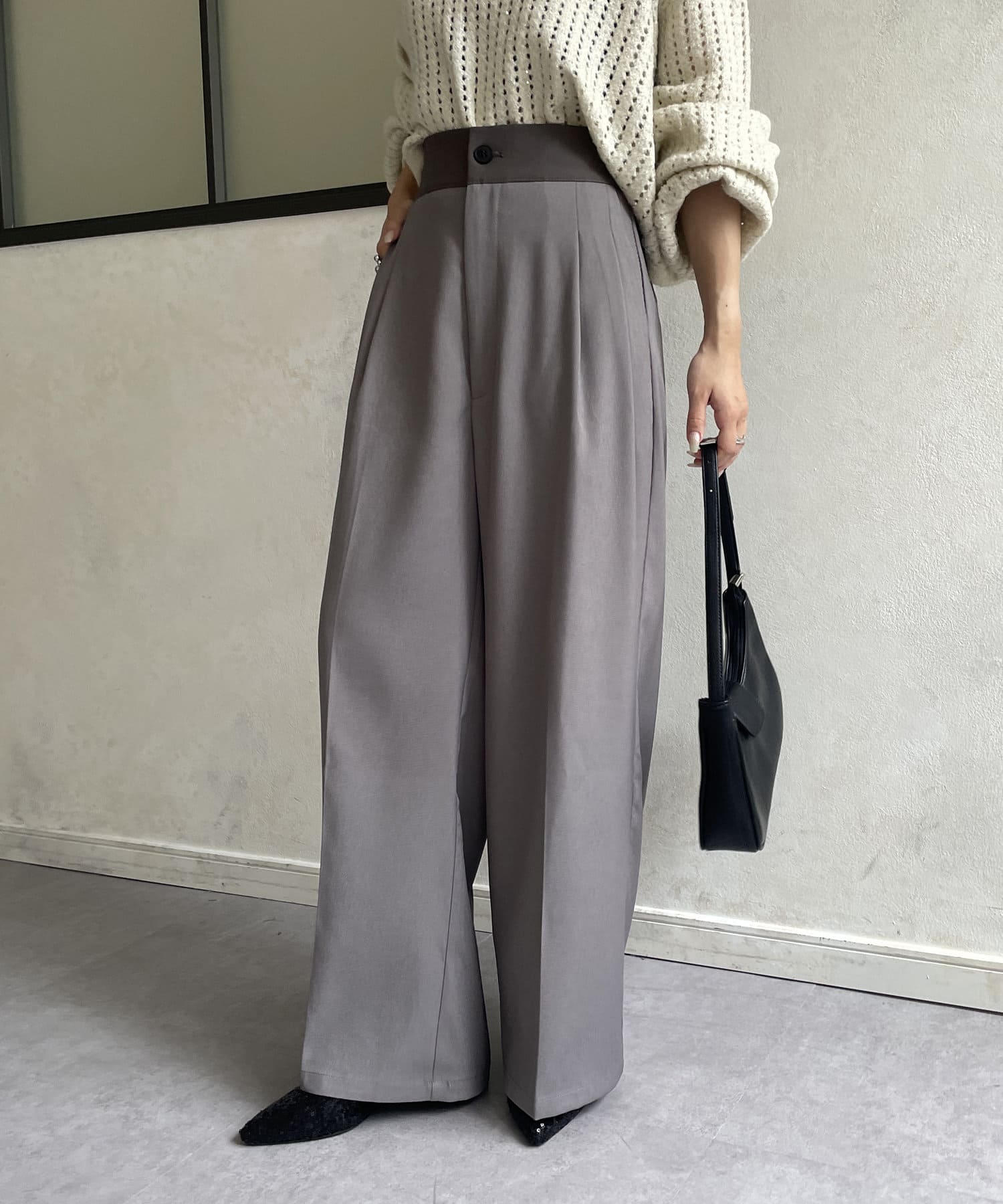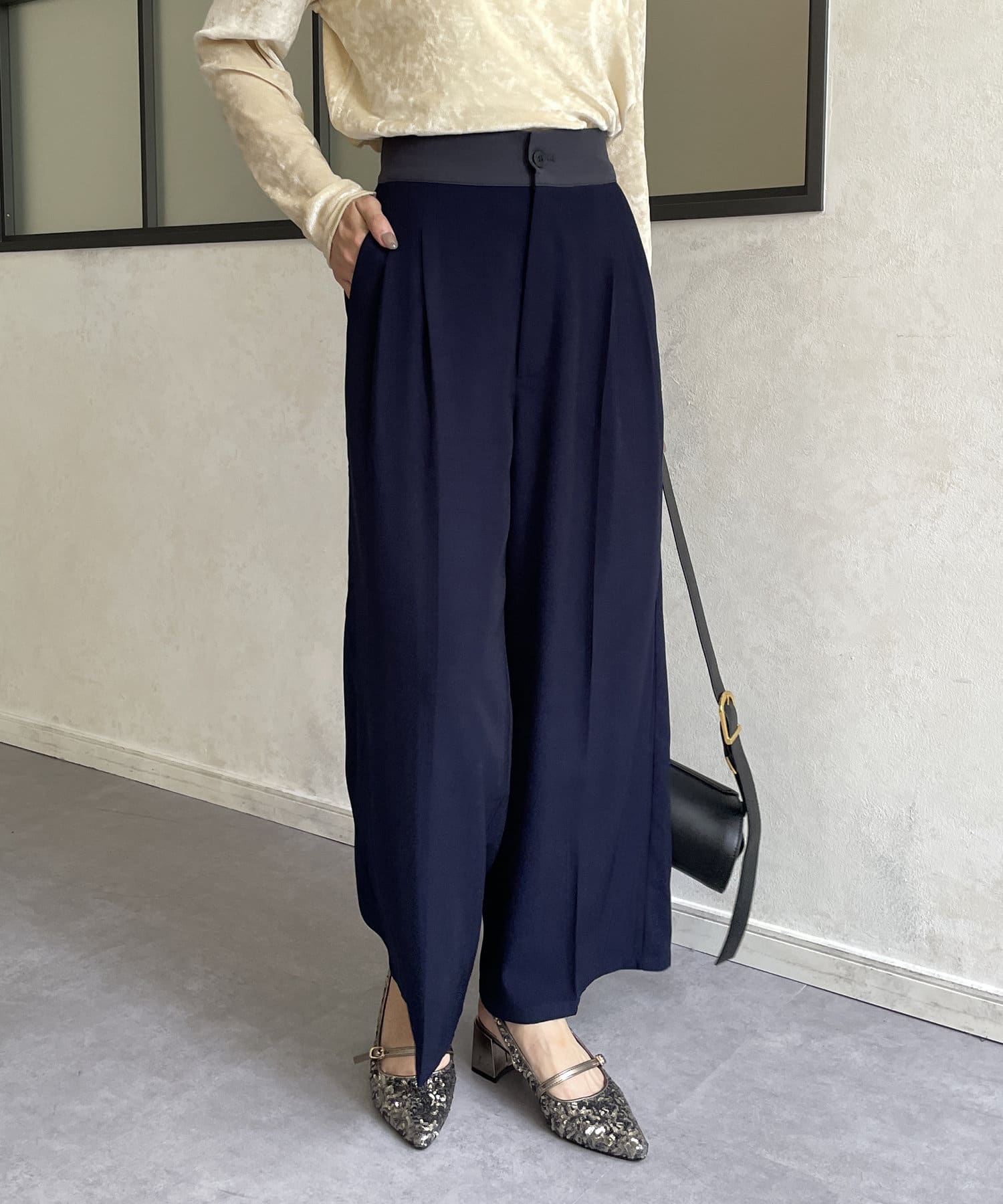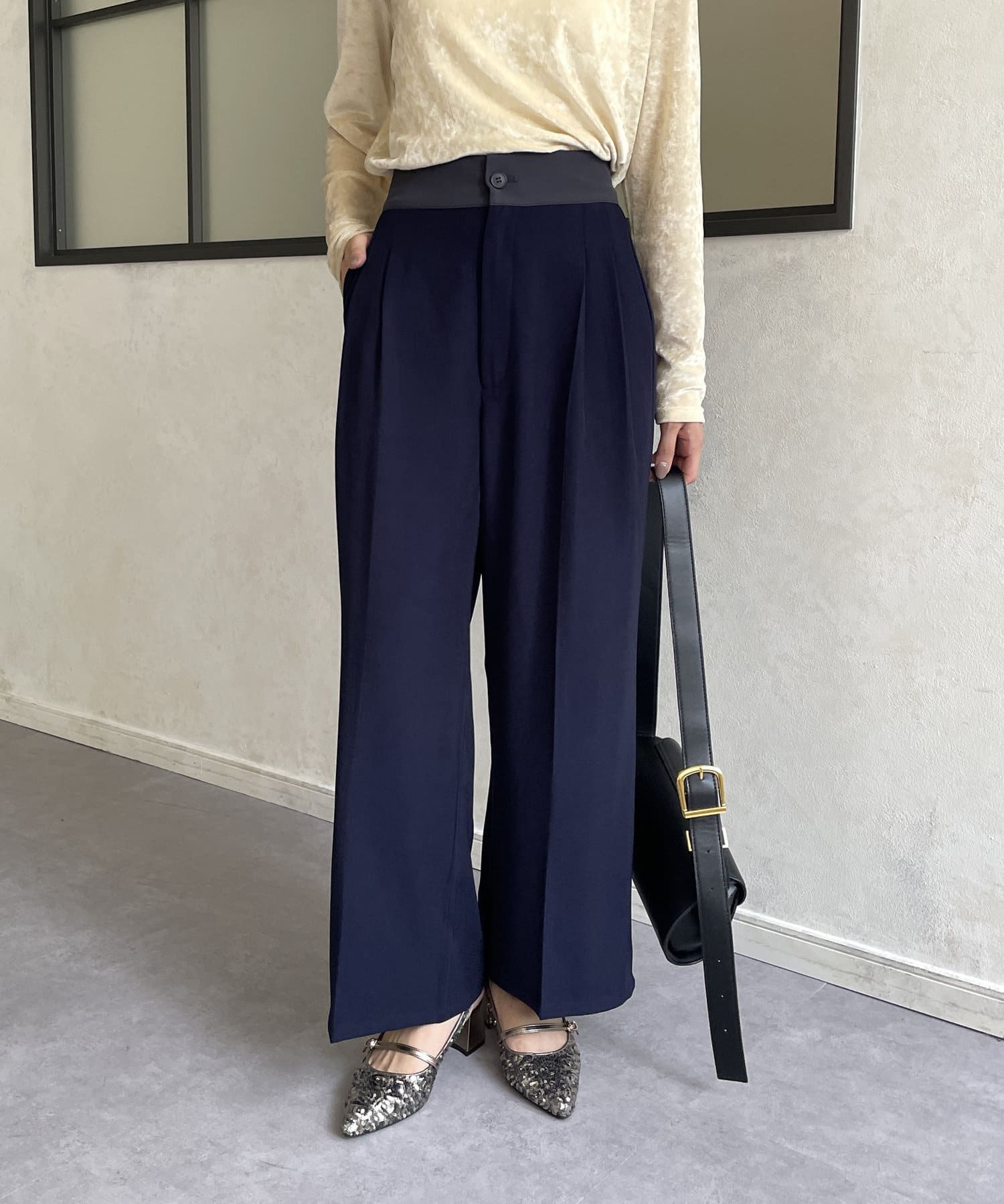 ウエスト配色タックパンツ