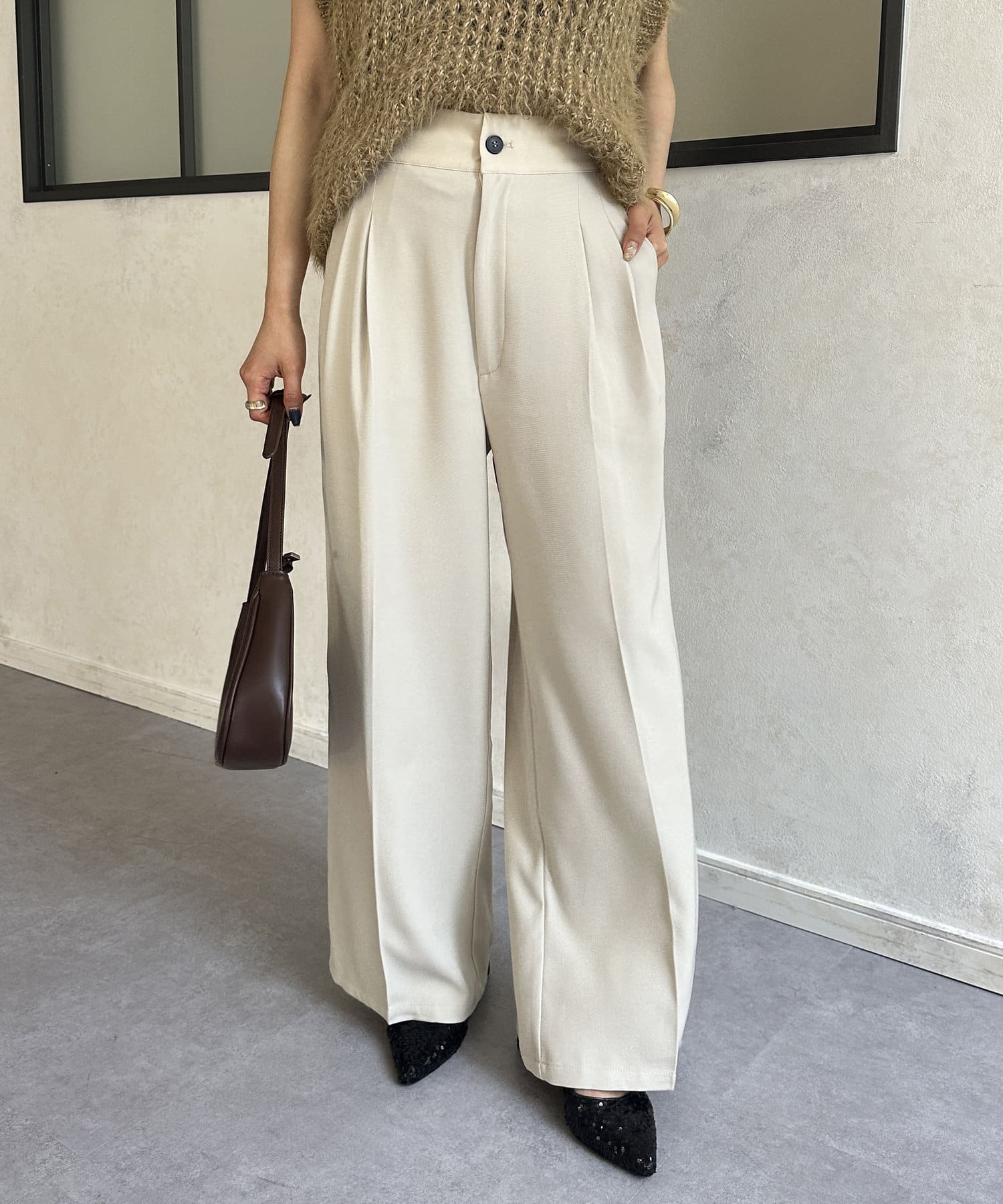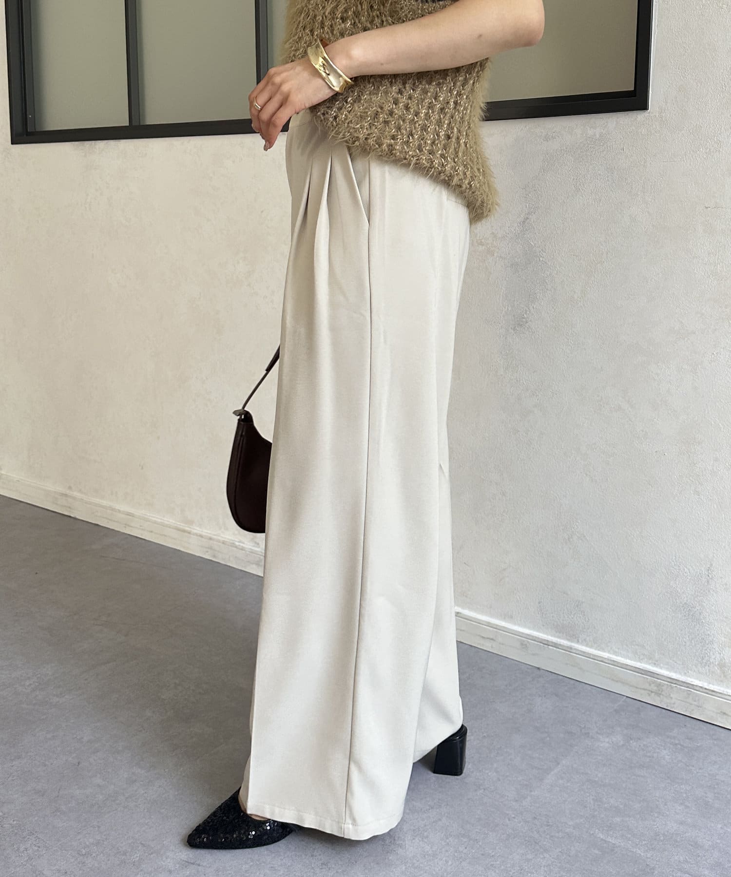 ・脚のラインを拾わない落ち感のあるシルエット