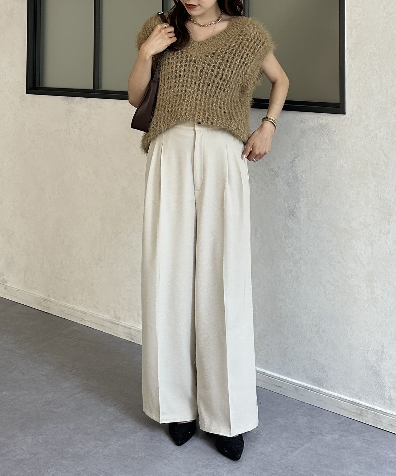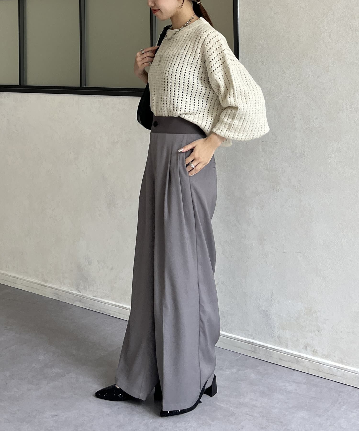 ・ゆるっとしたニットを合わせてラフなスタイルや、