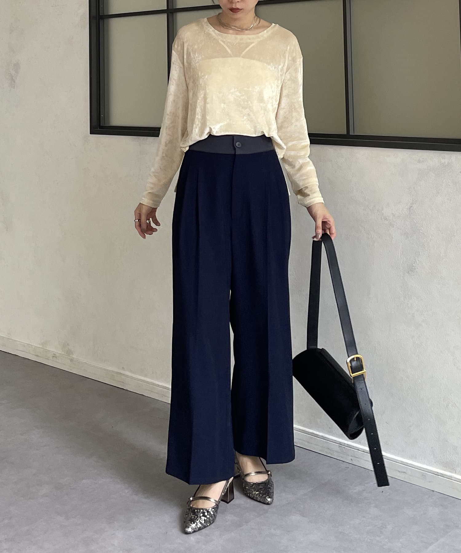 ・ウエストの配色ラインがポイントなので、トップスは