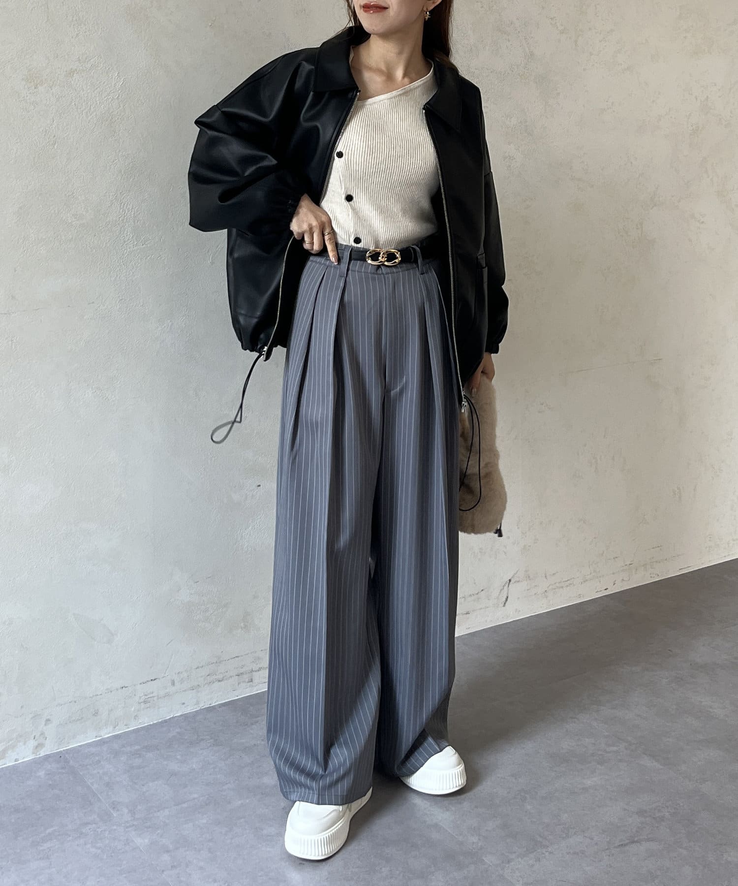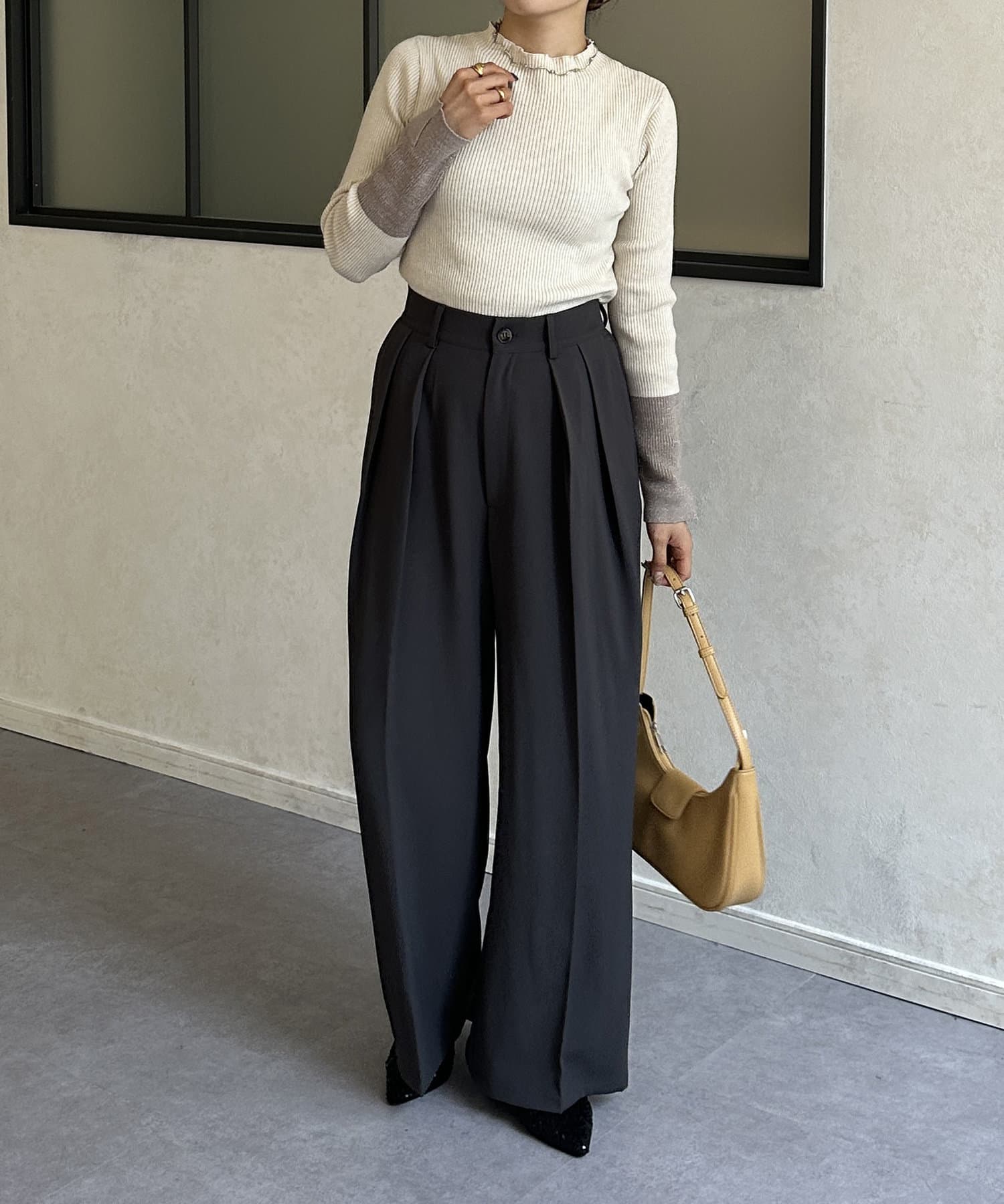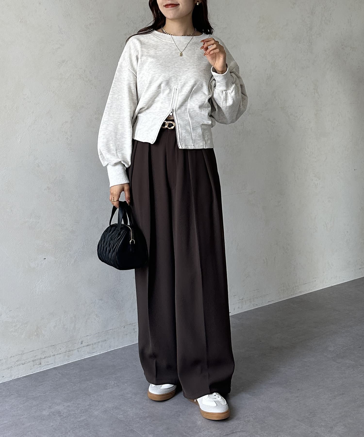 ・ボリューム感のあるパンツなので、トップスはタイトめな