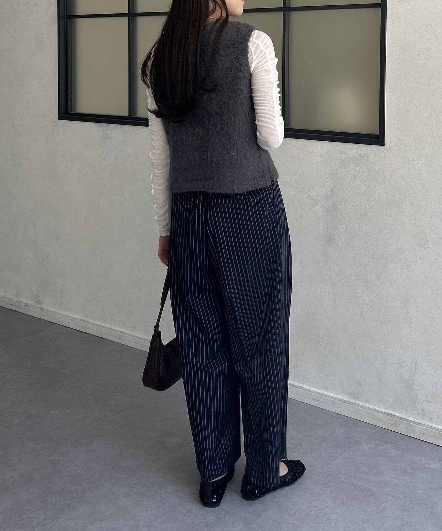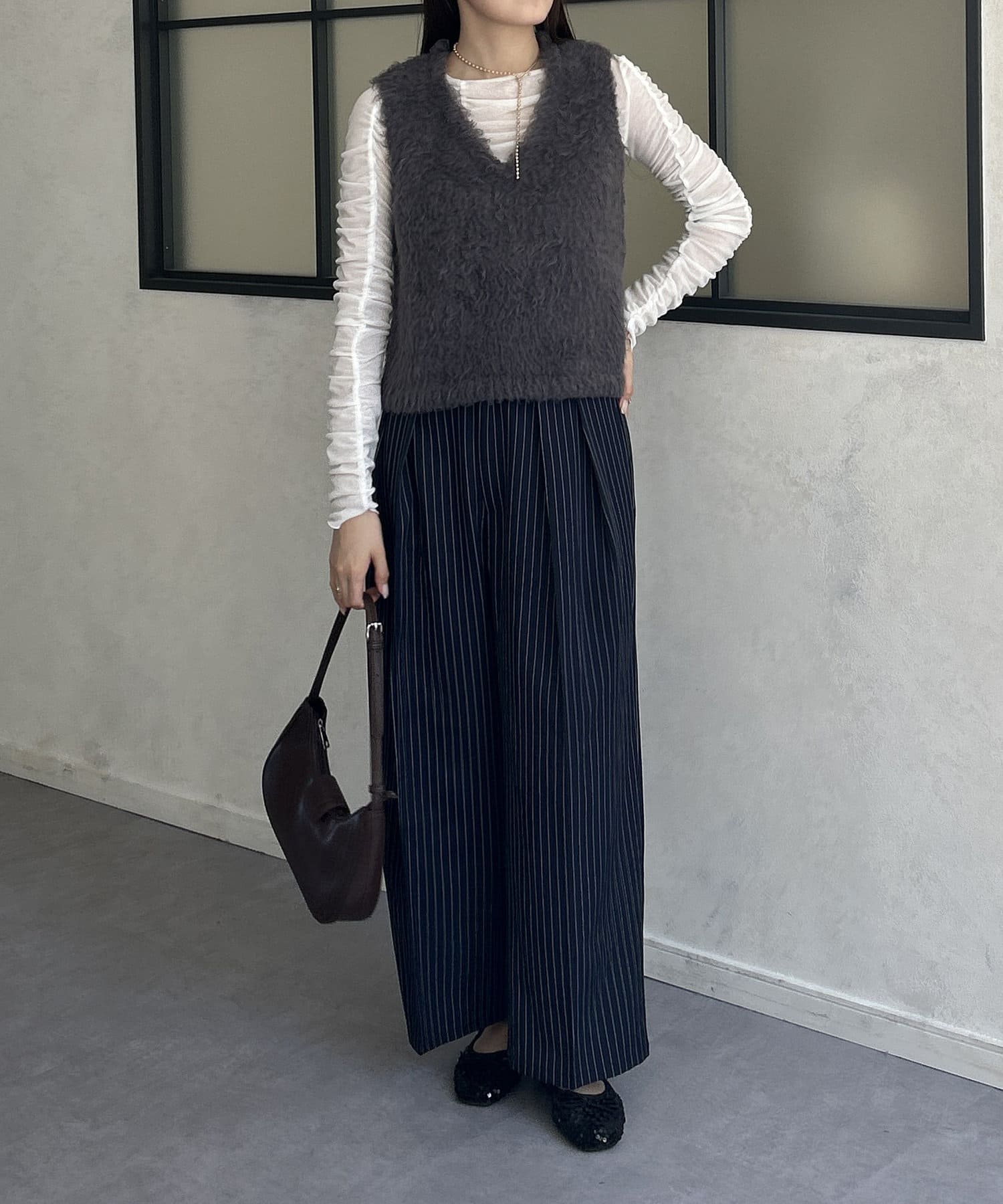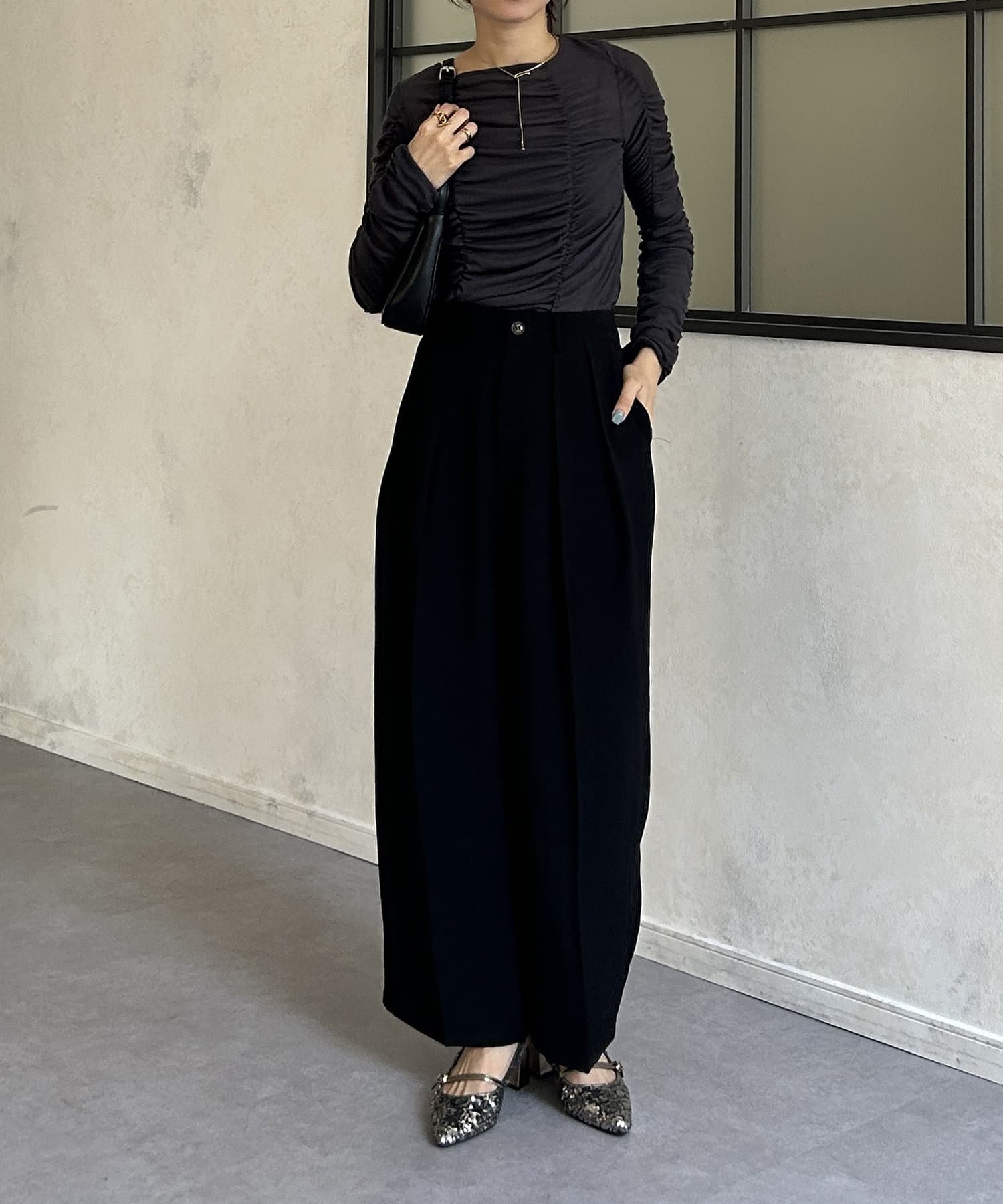 ・ボリューム感のあるパンツなので、トップスはタイトめな
