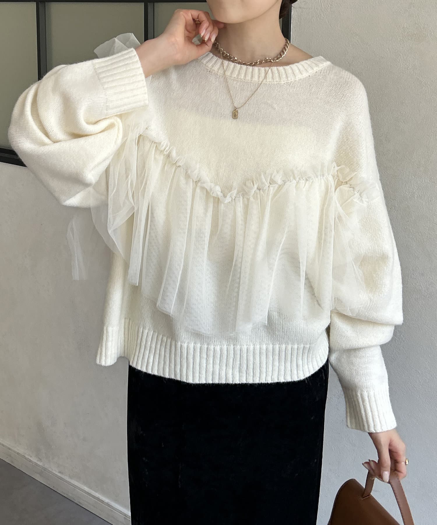 チュール:ポリエステル100%原産国 中国 サイズ F カテゴリ トップス > ニット/セーター タイプ レディース ギフト ラッピング 可 取り扱い 本体:手洗い可能 アイテムサイズ