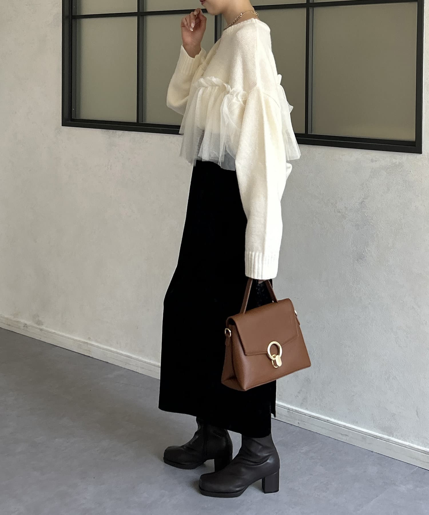購入場所:パルクローゼットニットとチュールビスチェが大人な感じと可愛さをプラスしてくれてとても気に入りました。